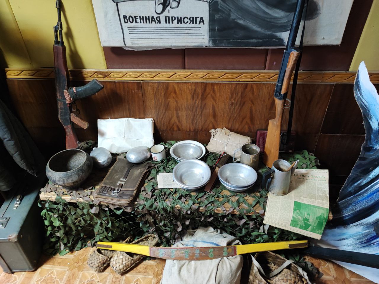 Валерий Федорович познакомил гостя с экспонатами музея, рассказал где и как они были изготовлены и в каких спектаклях использовались.
