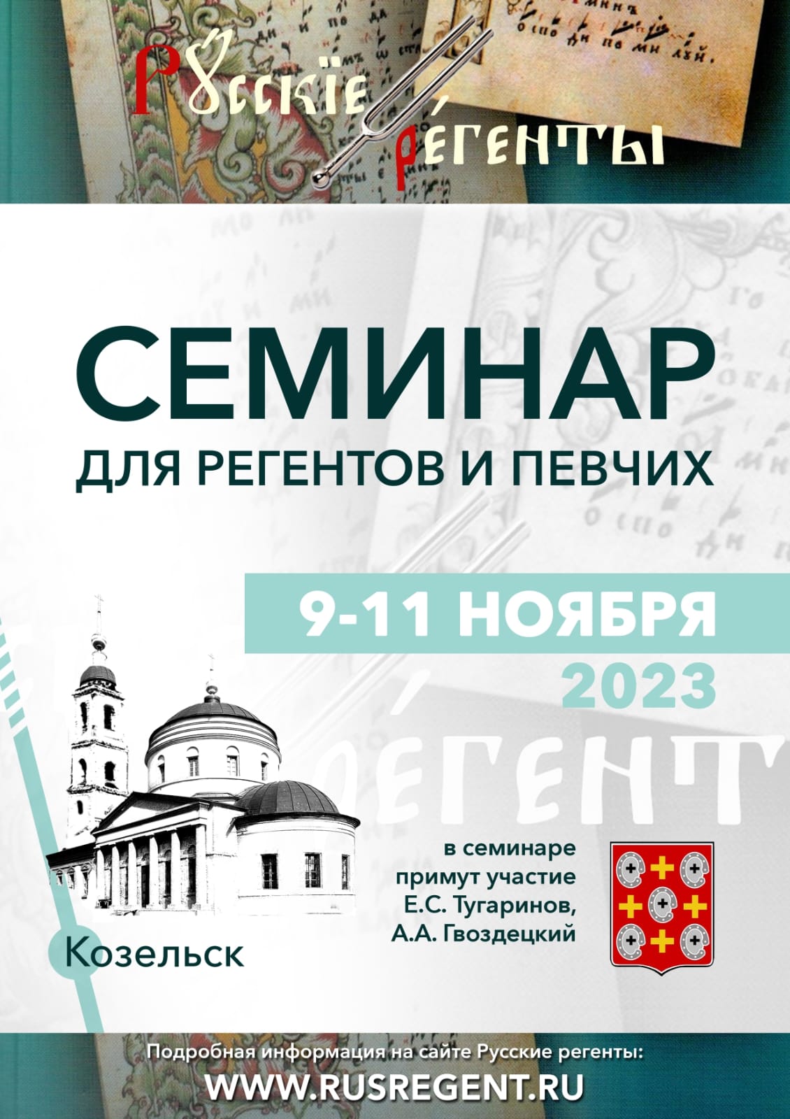 Дорогие братья и сестры, с 9 по 11 ноября, при участии Козельской епархии и администрации Козельского района, пройдет семинар для регентов и певчих церковных хоров Калужской митрополии. Также к участию приглашаются регенты и певчие соседних областей.