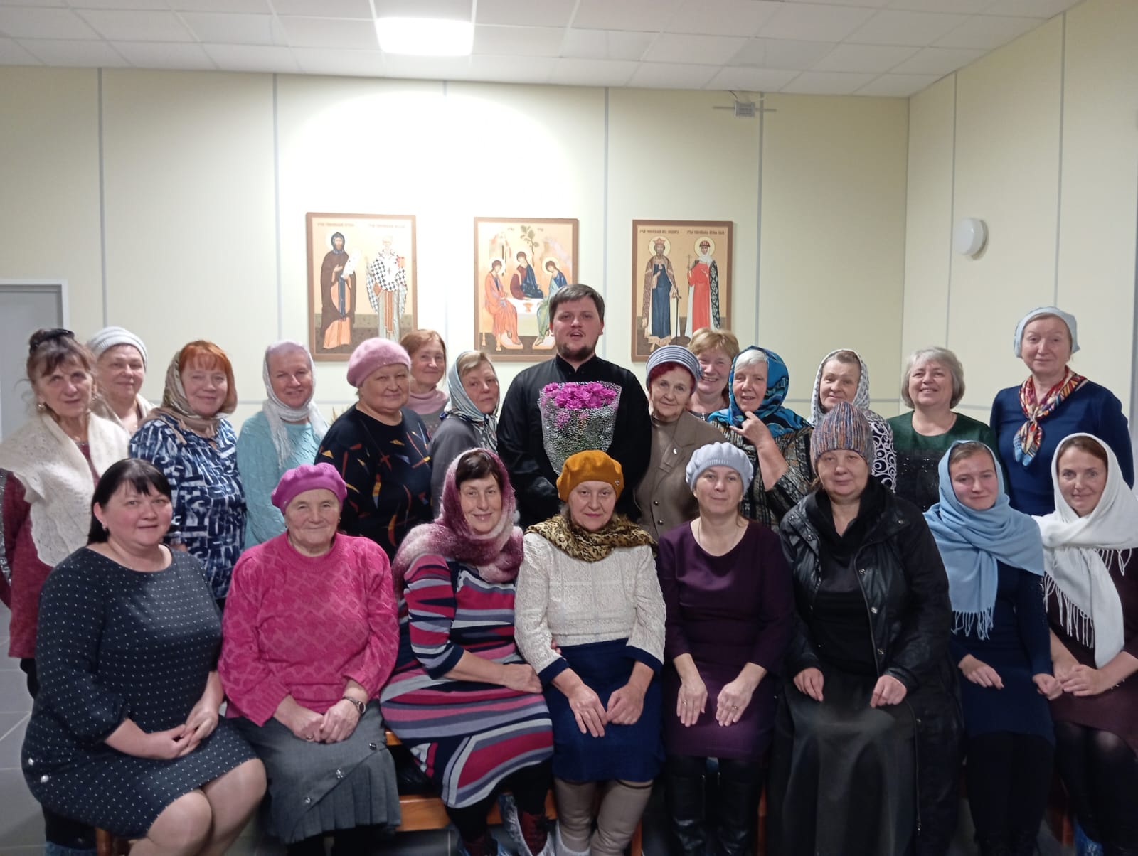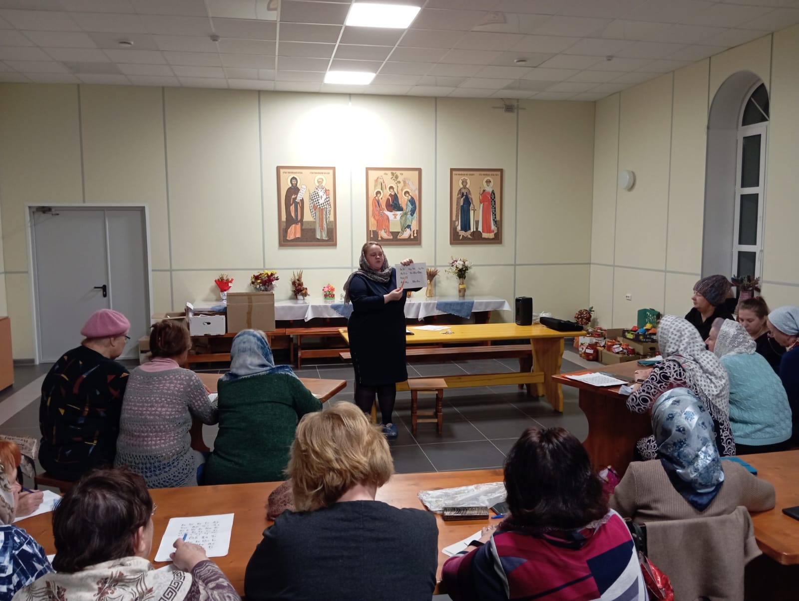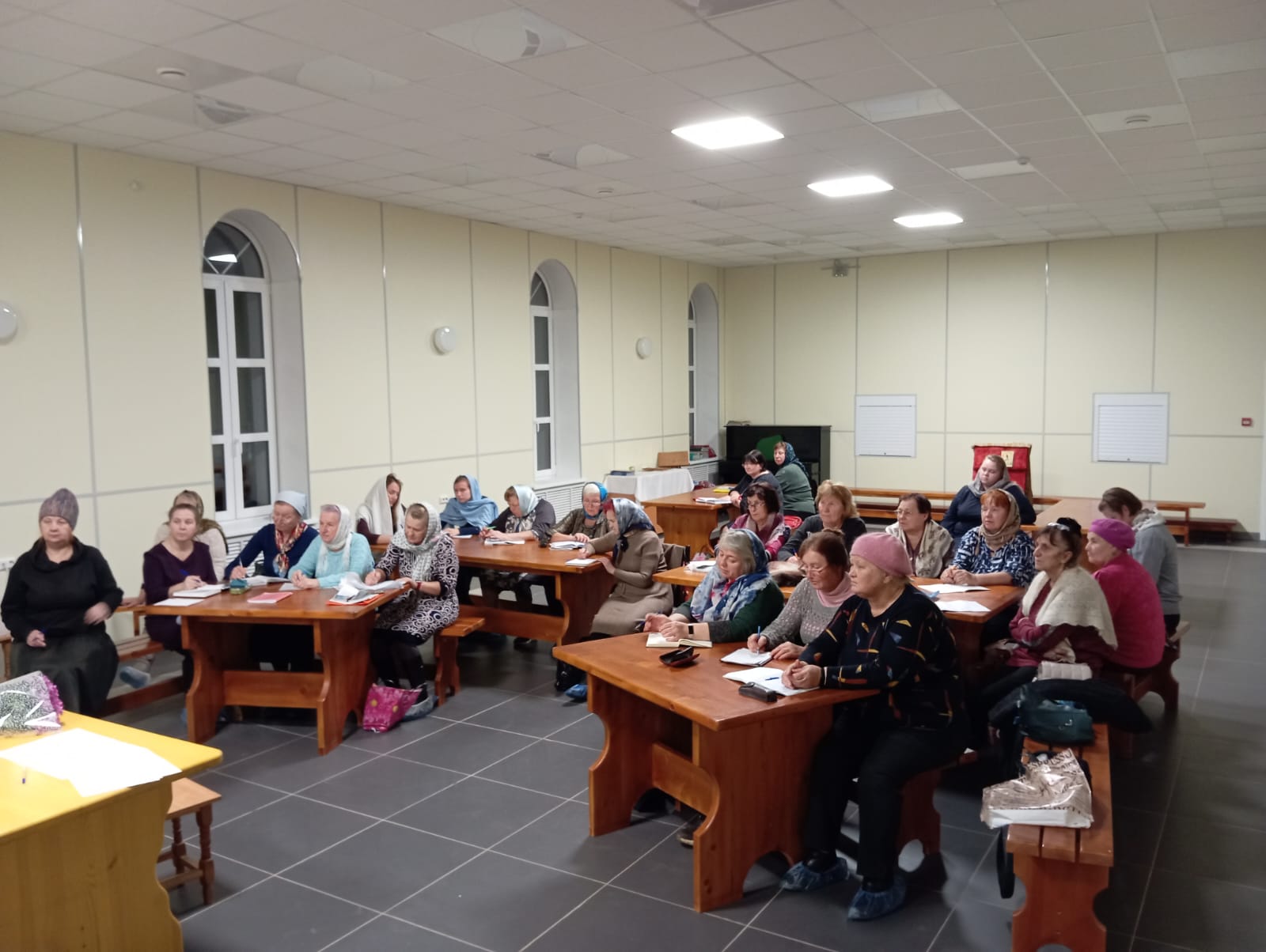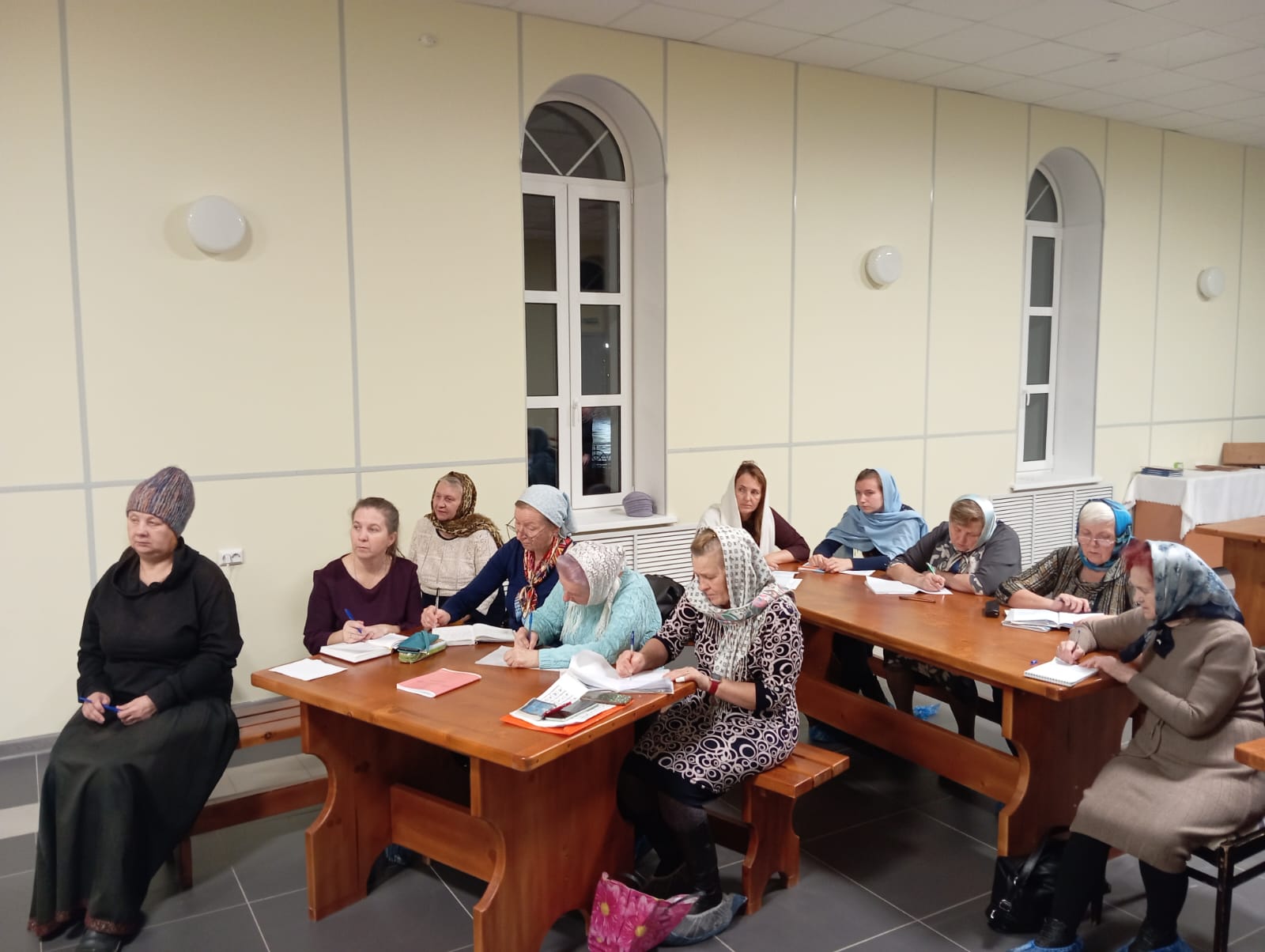 6 ноября 2023 года в Воскресной школе для взрослых при Казанском соборе города Людиново прошло очередное занятие по изучению церковно – славянского языка, которое проводит Светлана Андреевна Майорова (матушка Фотиния). Кроме церковно – славянского языка матушка преподаёт церковное пение. Азы прекрасного языка Церкви слушатели школы с удовольствием постигают, а на занятиях церковному пению изучают и азы нотной грамоты, и песнопения церковных служб. В Воскресной школе для взрослых, кроме руководителя школы иерея Иоанна Майорова, который преподает литургику, трудятся и другие священнослужители Людиновского благочиния: протоиерей Михаил Карпенко – преподает Нравственное Богословие, иерей Алексий Сначёв – Ветхий Завет, диакон Андрей Соколов — Новый Завет.   6 ноября в большом трапезном зале Духовно – просветительского центра «Светоч», где обычно проходят занятия Воскресной школы для взрослых, взрослые ученики поздравили своего руководителя школы иерея Иоанна Майорова с днём рождения, которое он праздновал 4 ноября в престольный праздник в честь Казанской иконы Божией Матери. Батюшке его подопечные пожелали добра и здравия на многая благая лета, поблагодарив за его просветительские труды.