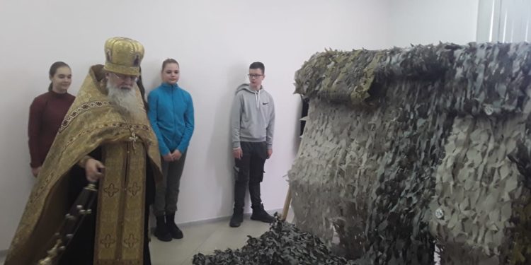 11 ноября 2023 года благочинный Людиновского округа Козельской епархии настоятель Казанского собора города Людиново протоиерей Алексий Жиганов освятил маскировочные сети, изготовленные руками школьников города. Юные труженики состоят в Молодежном волонтёрском центре «СВОи», который расположен на втором этаже Торгового центра «Каскад» в общегородском волонтёрском центре. Плетение масксетей организовано по инициативе местного «Совета отцов» (руководитель Артём Родичкин). Доброе и нужное дело объединяет взрослых и детей. Будем верить, что тепло рук и сердец юных и взрослых мастеров поможет нашим воинам, убережёт их от беды и приблизит нашу победу! Очень значимо, что освящение масксетей было совершено в праздничный день для Калужской области — День Великого стояния на Угре (это событие произошло 11 ноября 1480года). Это день памятной воинской даты, по сути – начало становления фактической независимости и самобытности Российского государства.