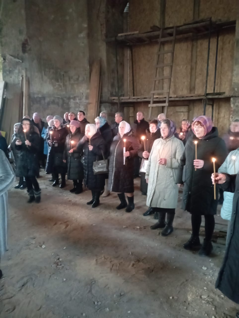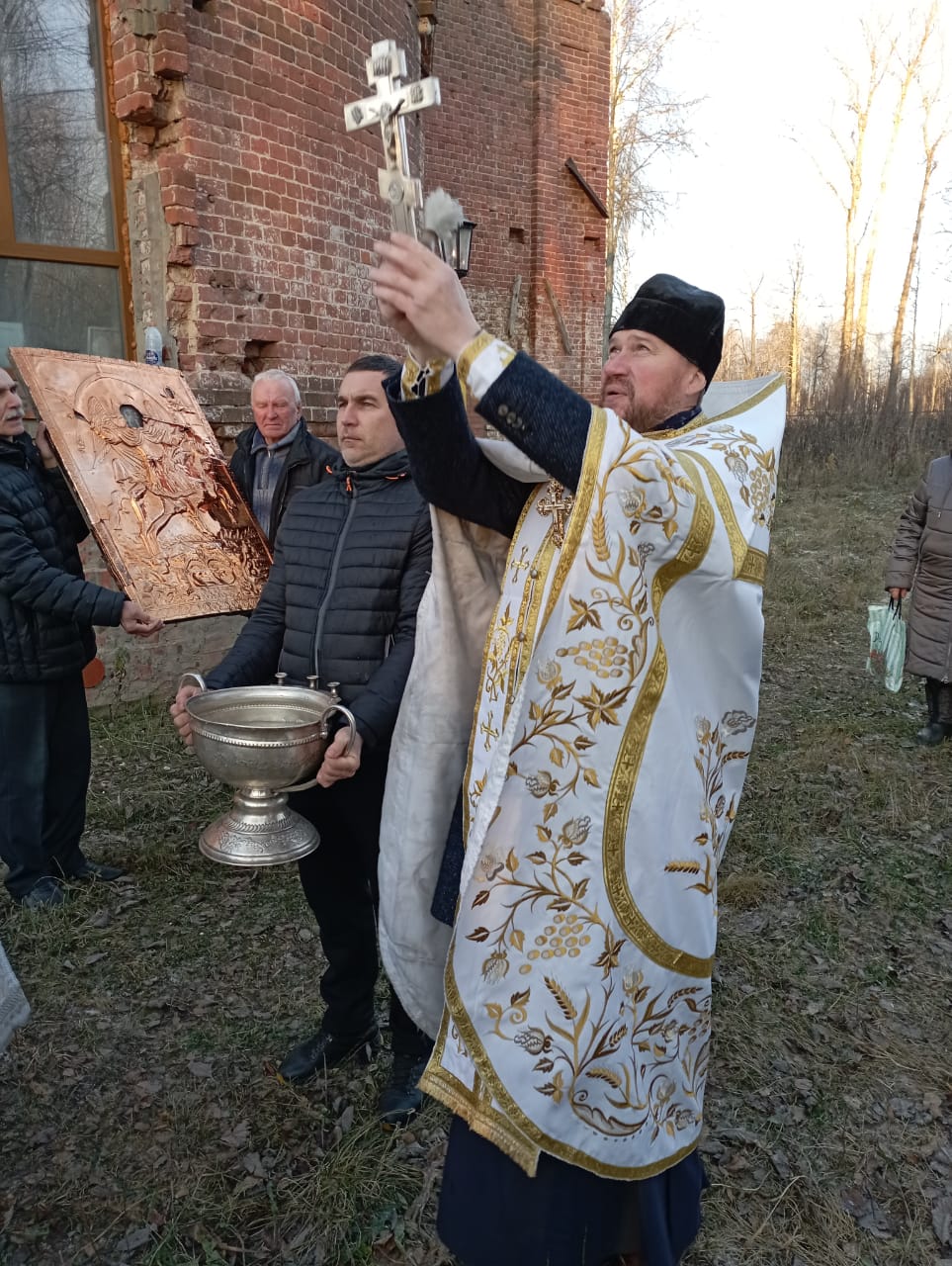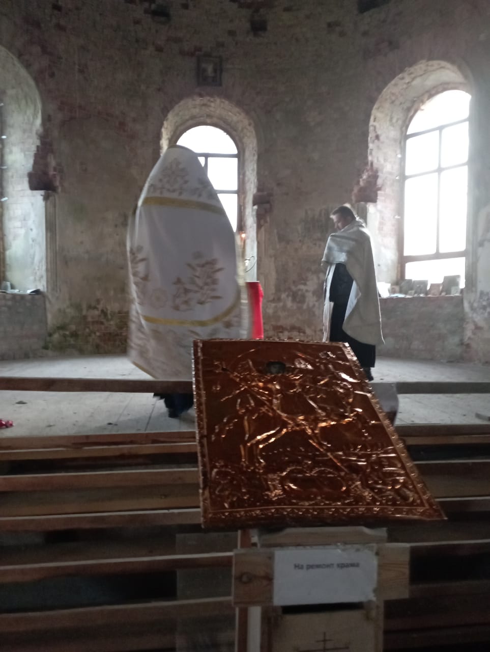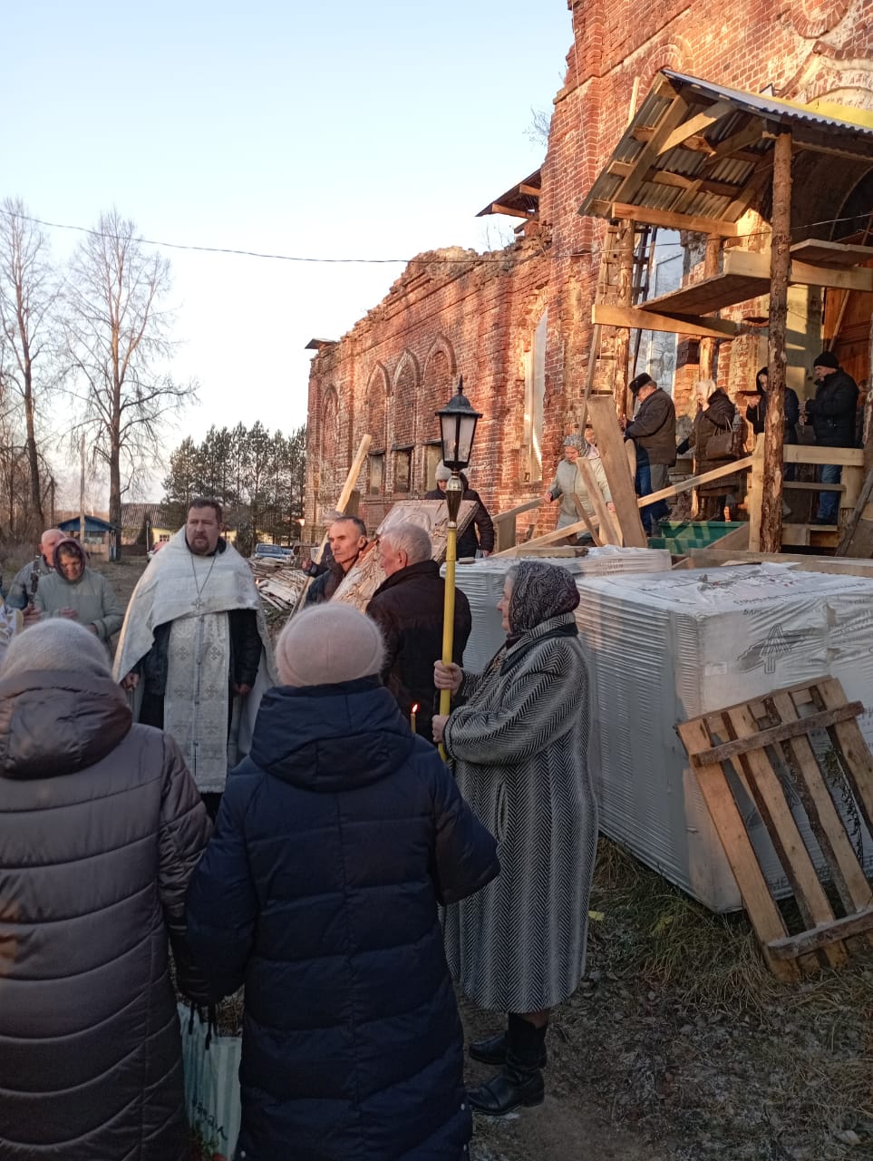 Молебное пение в восстанавливающемся храме Архистратига Божия Михаила