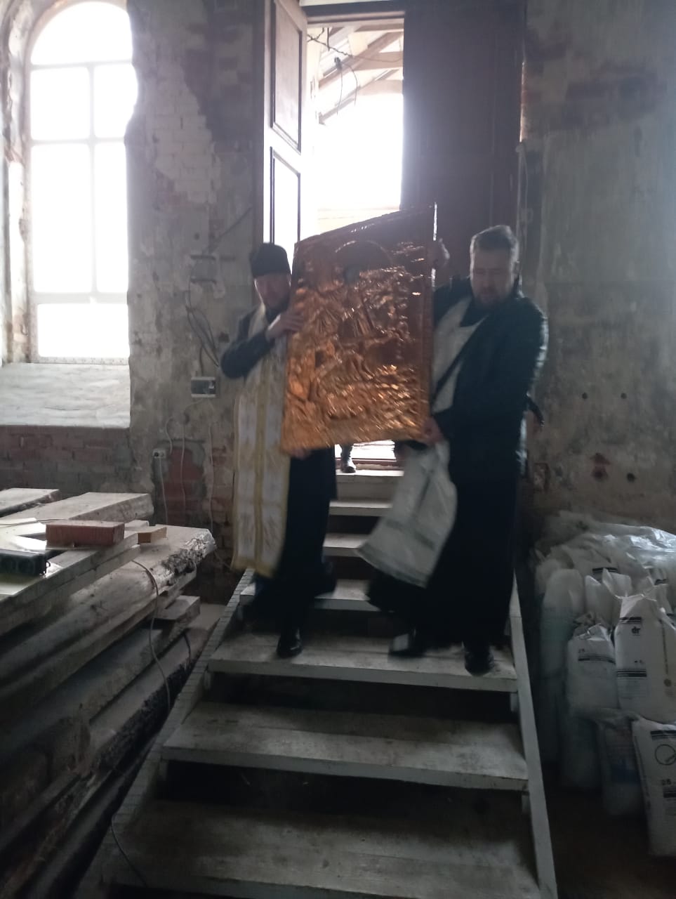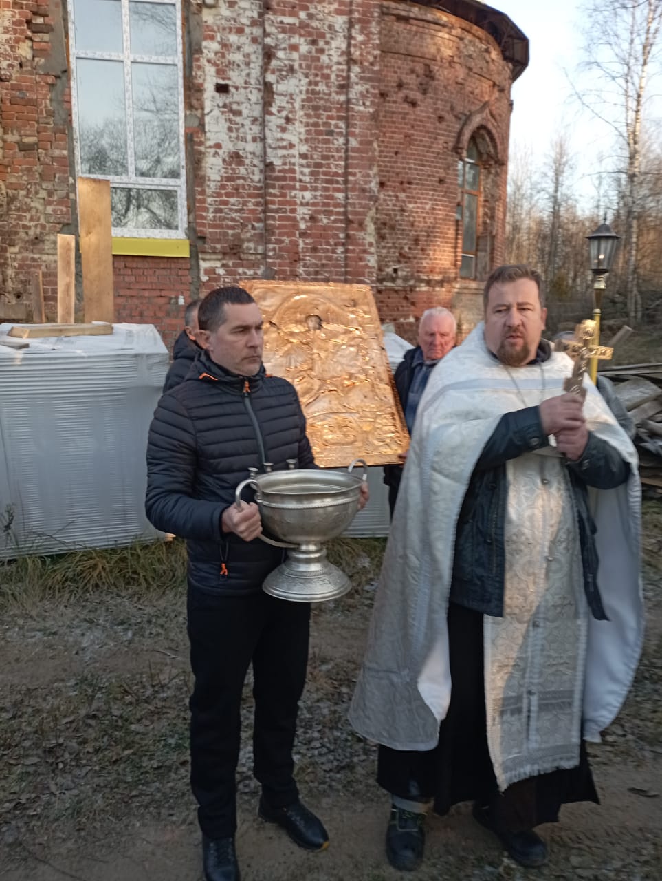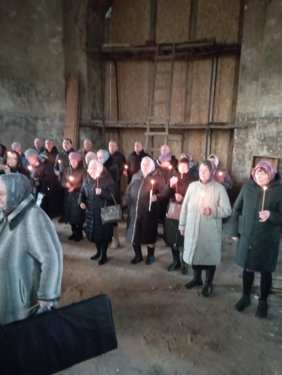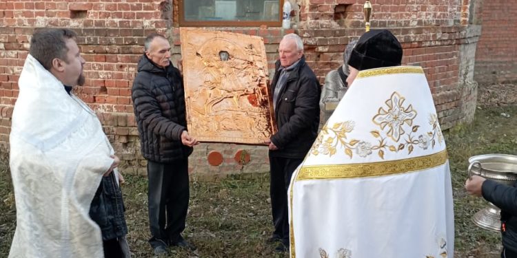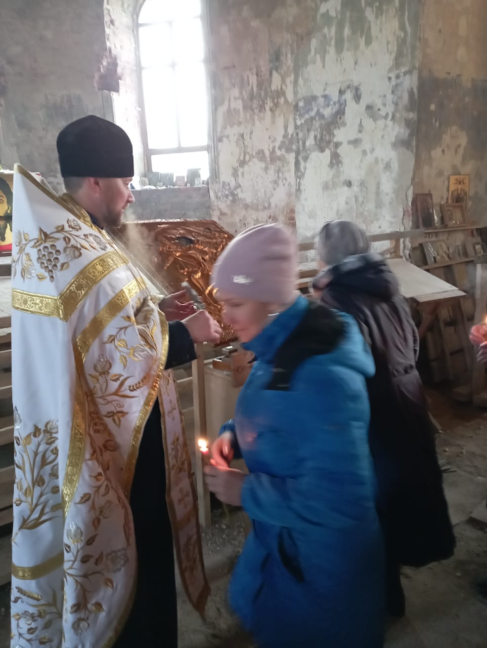 Молебное пение в восстанавливающемся храме Архистратига Божия Михаила