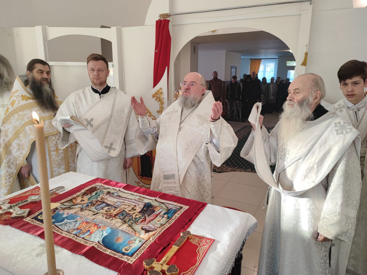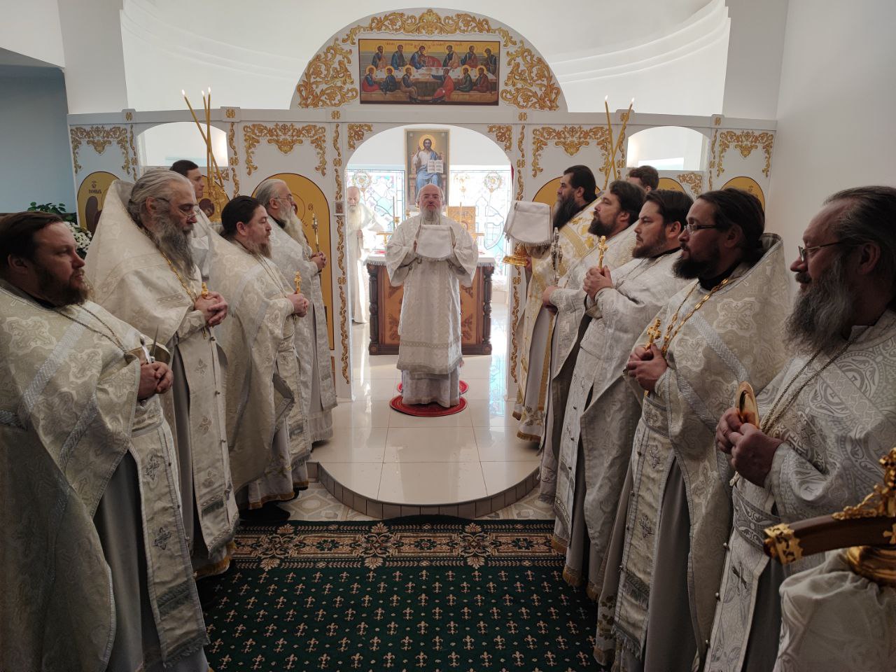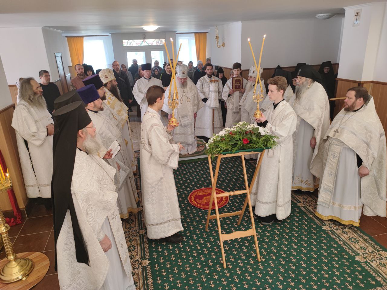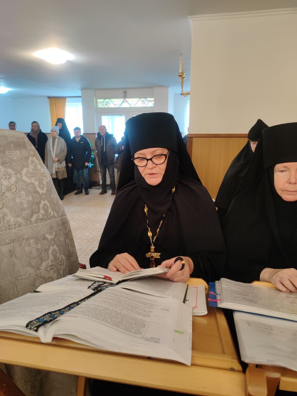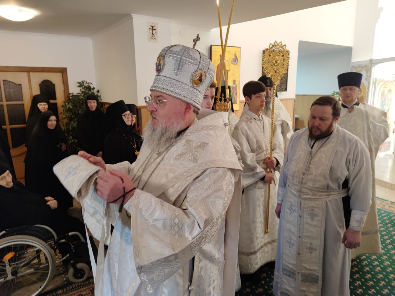 За богослужением молились игумения Иоанна (Павлова) с сестрами женского монастыря в честь Святых Жен Мироносиц.