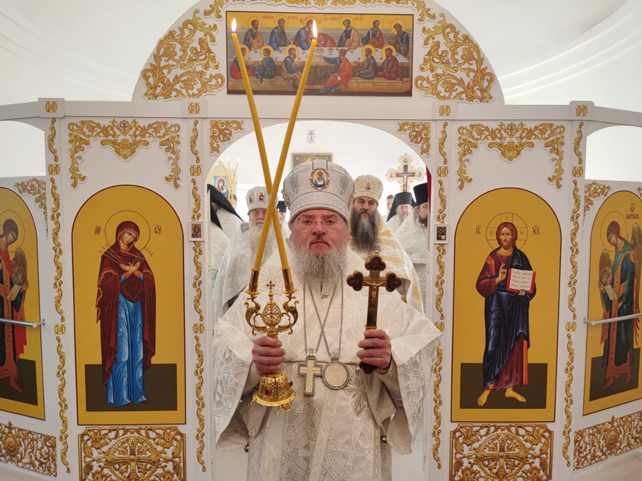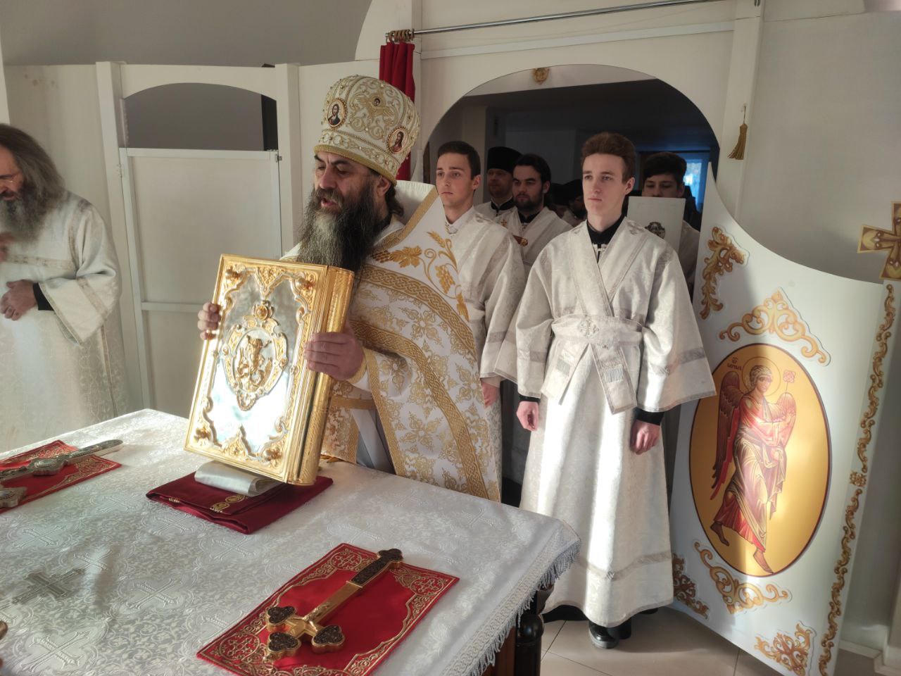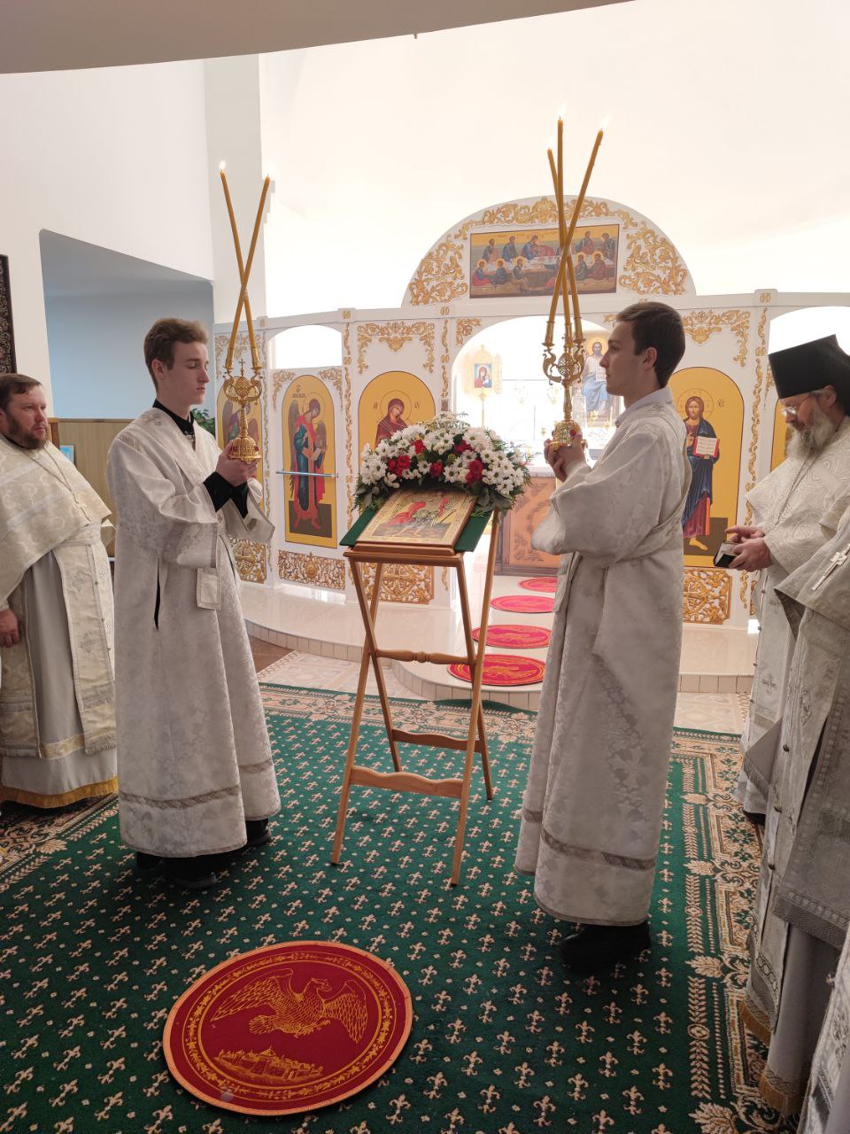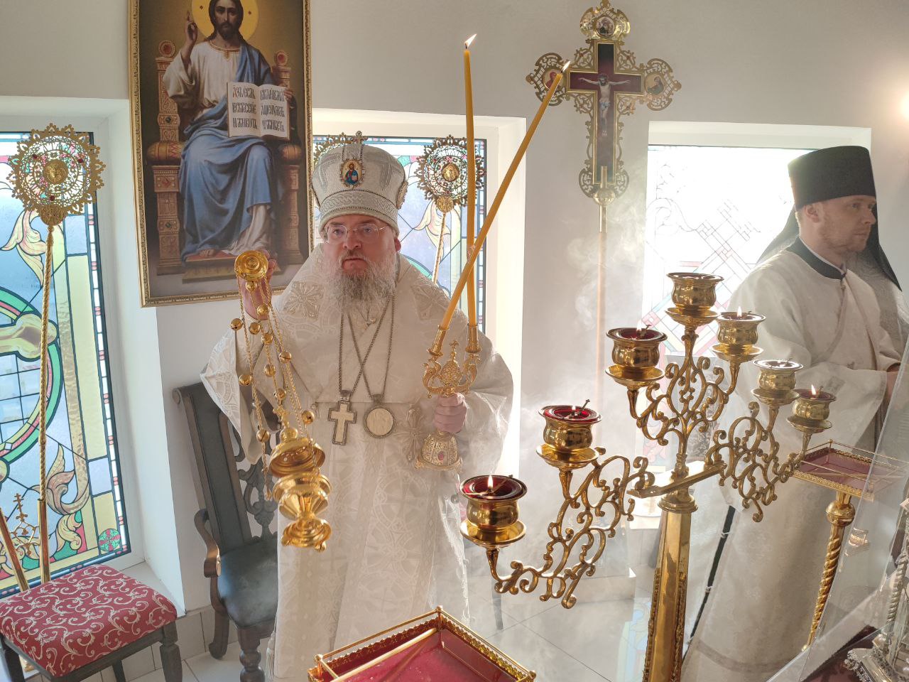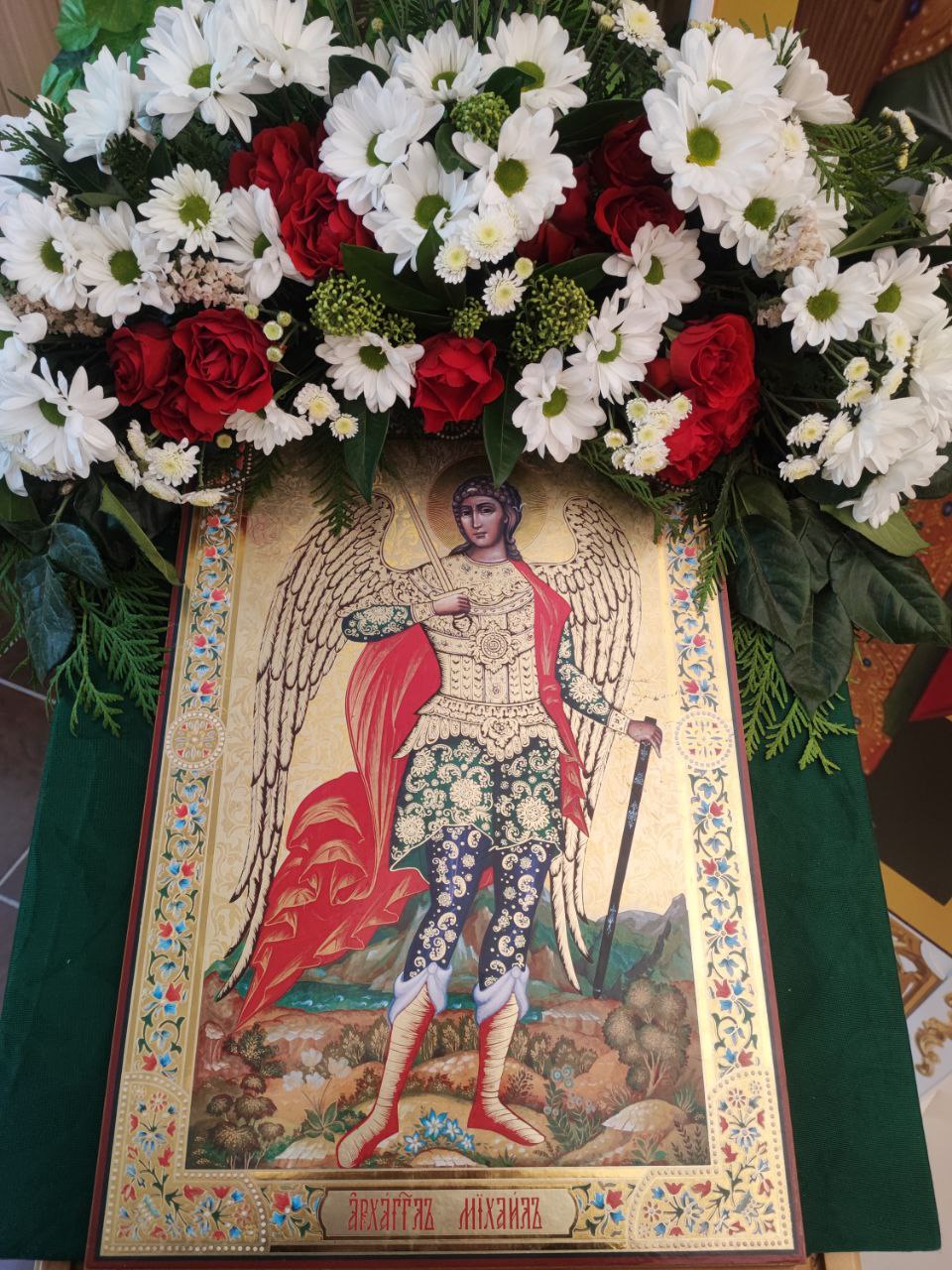 По отпусте литургии священнослужители, в центре храма пред праздничной иконой, совершили славление Бесплотным Небесным силам, а затем, вознеся молитву Архангелу Михаилу архипастырь обратился к богомольцам с проповедью.