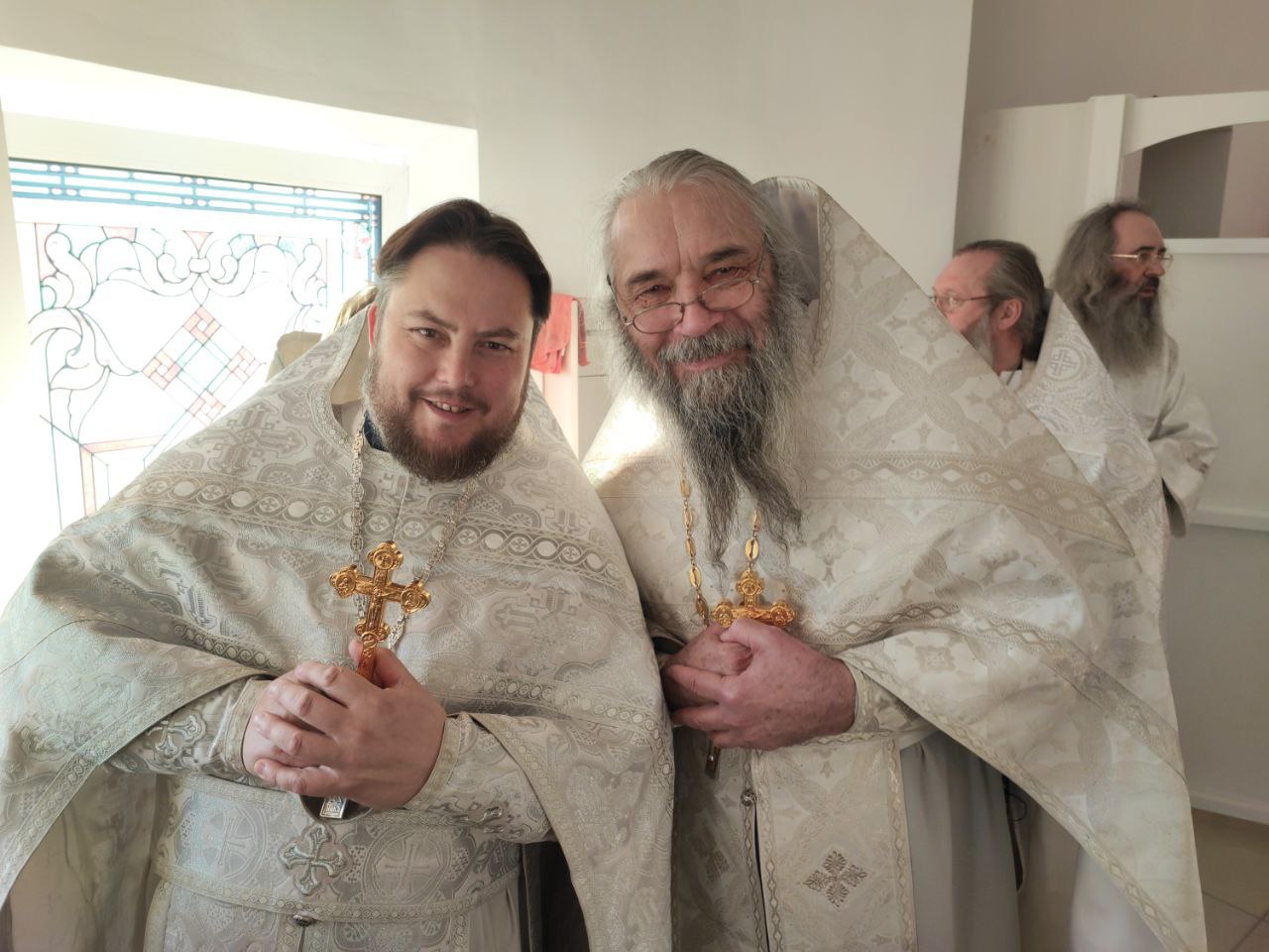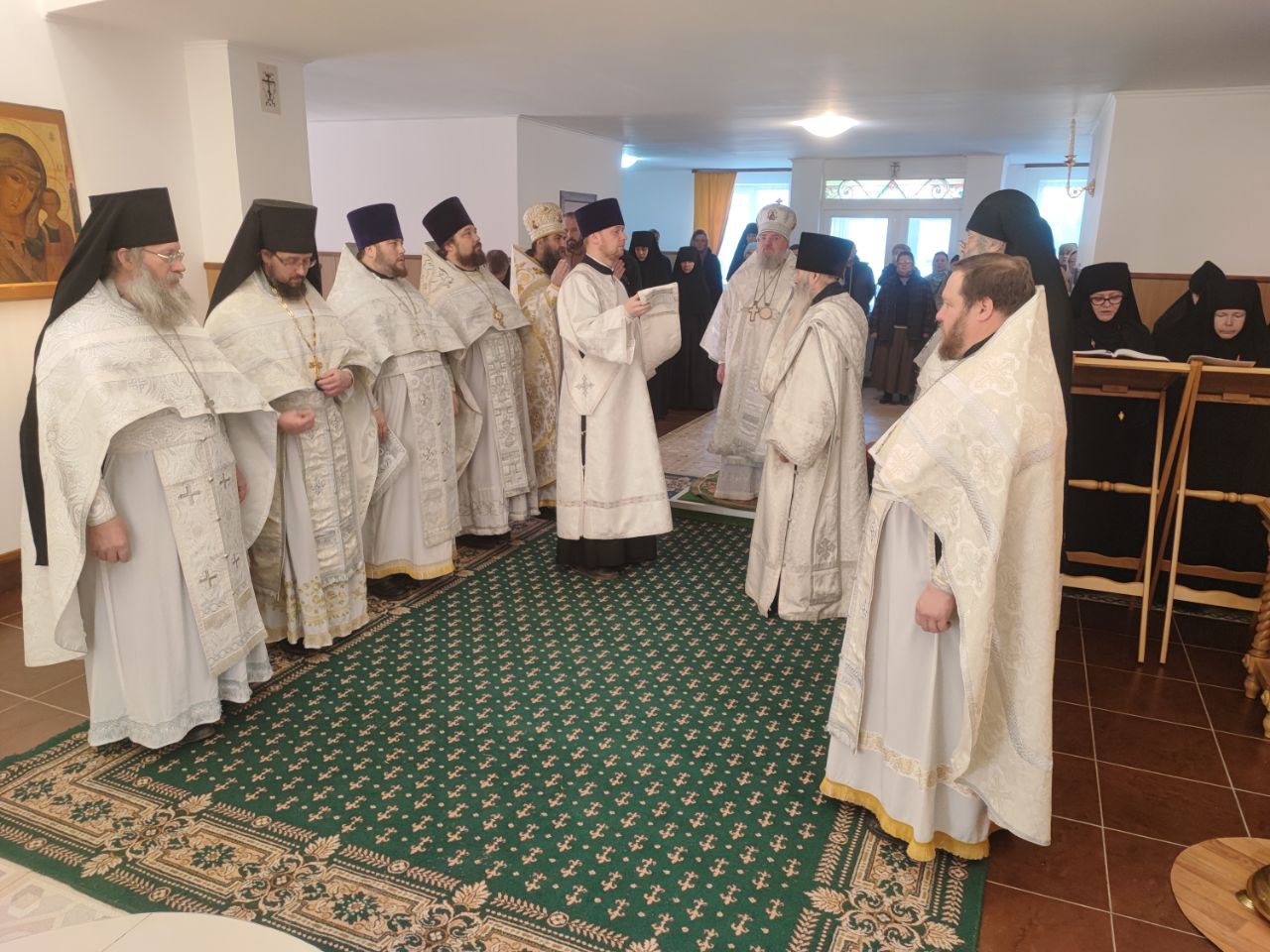 Преосвященному владыке сослужили: наместник монастыря архимандрит Михаил (Семенов), протоиерей Алексий Жиганов, протоиерей Владимир Бахаев, протоиерей Антоний Хатунцев, иеромонах Амвросий (Косоруков), схииеромонах Кукша (Никитин), иерей Олег Леонов, иеромонах Филарет (Пчелов), иеромонах Ефрем (Ястребов), диакон Евгений Ковригин и схииеродиакон Захария (Павленко).