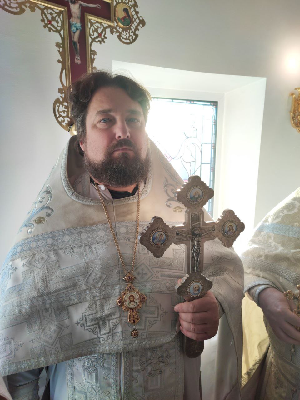 На Малом входе права ношения набедренника был удостоен настоятель храма святого Ильи пророка в селе Ильинское Козельского района иерей Олег Леонов.