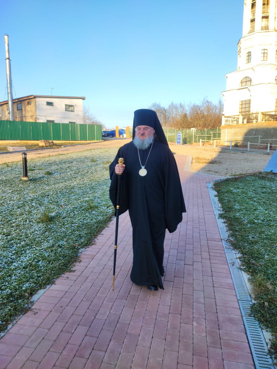 Владыка поздравил наместника монастыря архимандрита Михаила (Семенова) с днем тезоименитства, поблагодарив его за жертвенное служение Святой Матери Церкви и труды по обустройству святой обители, вручил ему памятный знак 10-летия образования Козельской епархии и преподнес ему икону святых Царственных Страстотерпцев и святую просфору.