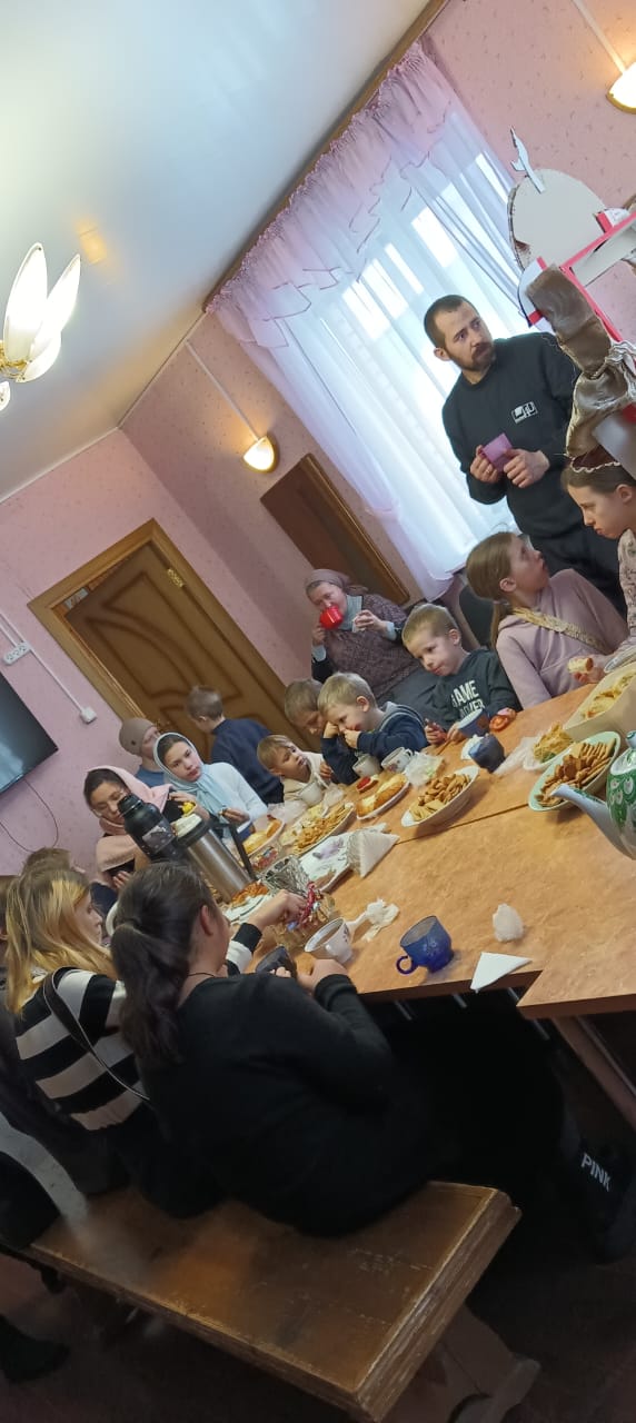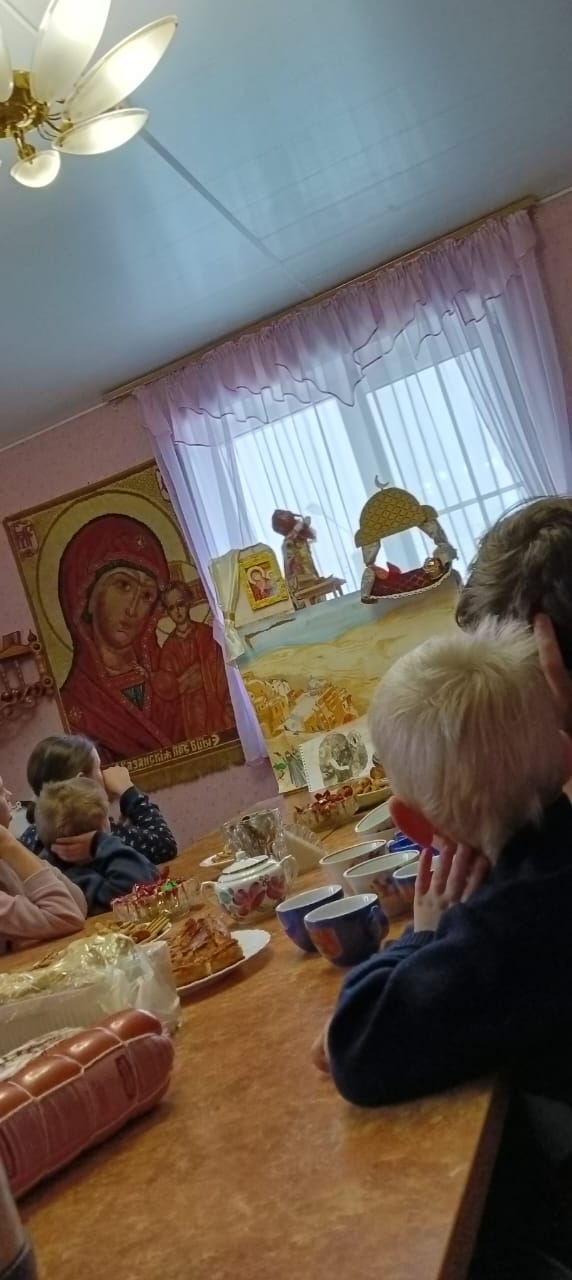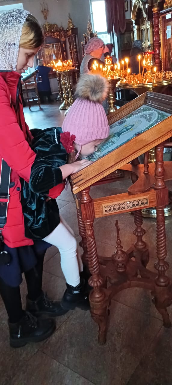 На городской площади возвышается храм XVIII века в честь Смоленской иконы Божией Матери. Дети помолились на богослужении, исповедовались и причастились Святых Христовых Тайн. По окончании службы Светлана Олейник рассказала детям об иконах храма-Смоленской иконе Божьей Матери, об иконе Спаса Нерукотворного и других. В воскресной школе детей напоили чаем и семья Михаила и Светланы Олейник со своими детьми показали кукольный спектакль о святом Иоанне Дамаскине. Куклы, декорации и сценарий созданы супругами Олейник. Настоятель храма протоиерей Алексей Казаков побеседовал с детьми. Надеемся, что подобные встречи будут у детей в разных храмах нашей епархии.