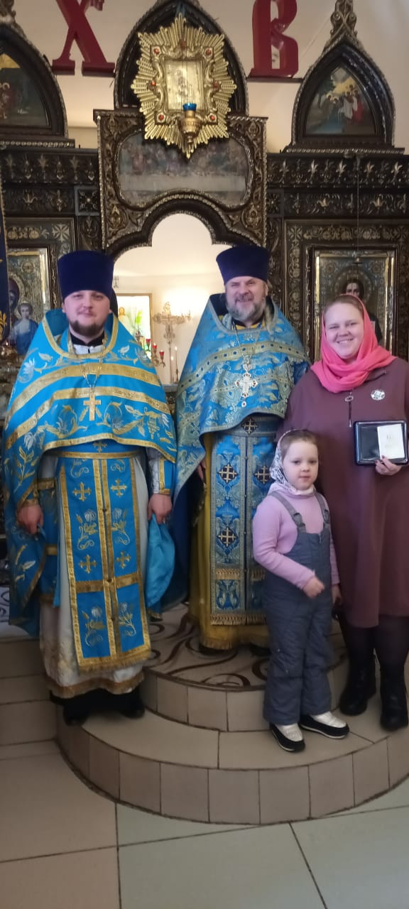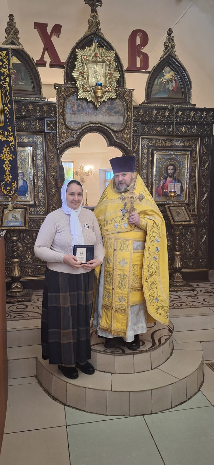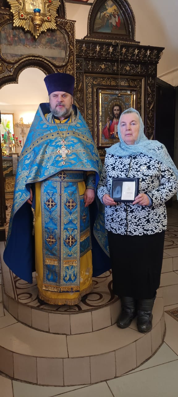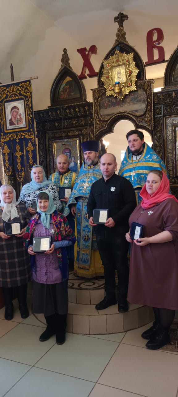 Такие, заслуживающие особой благодарности за понесенные посильные труды и участие в жизни прихода, прихожане 4 декабря, в день двунадесятого праздника Введения во храм Пресвятой Владычицы нашей Богородицы и Приснодевы Марии, по благословению Управляющего епархией юбилейным знаком были награждены: