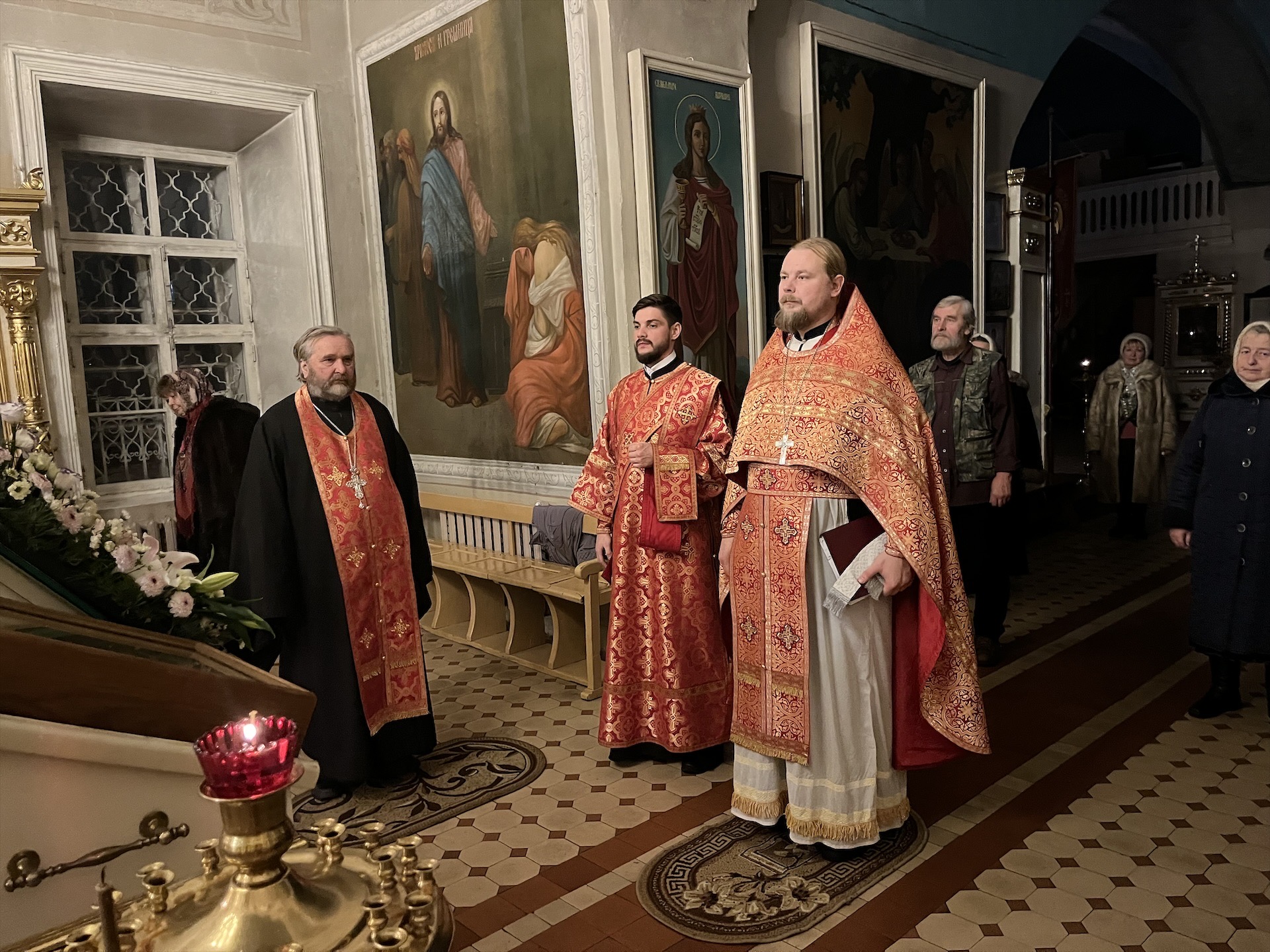 В ночь с 4 на 5 декабря в храме в честь Благовещения Пресвятой Богородицы города Козельска была совершенна Божественная литургия, которую возглавил настоятель храма иерей Сергий Барыкин в сослужении протоиерея Павла Морозова и диакона Евгения Васильева. За богослужением пел мужской хор студентов Сретенской духовной академии. В этот день Церковь вспоминает память святого мученика Бориса (Козлова). В годы гонений святой мученик Борис жил в Козельске и пел на клиросе в Благовещенском храме.