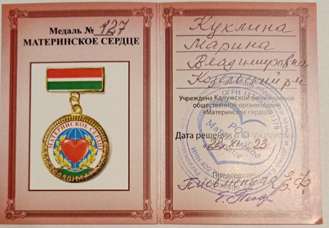 Директор Епархиального социального центра «Рождественский» Куклина Марина Владимировна награждена медалью «Материнское сердце»