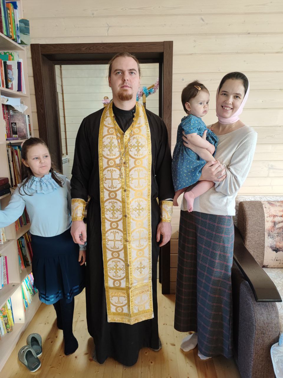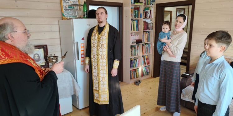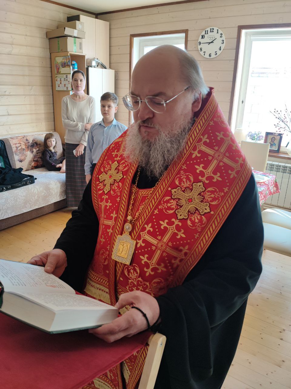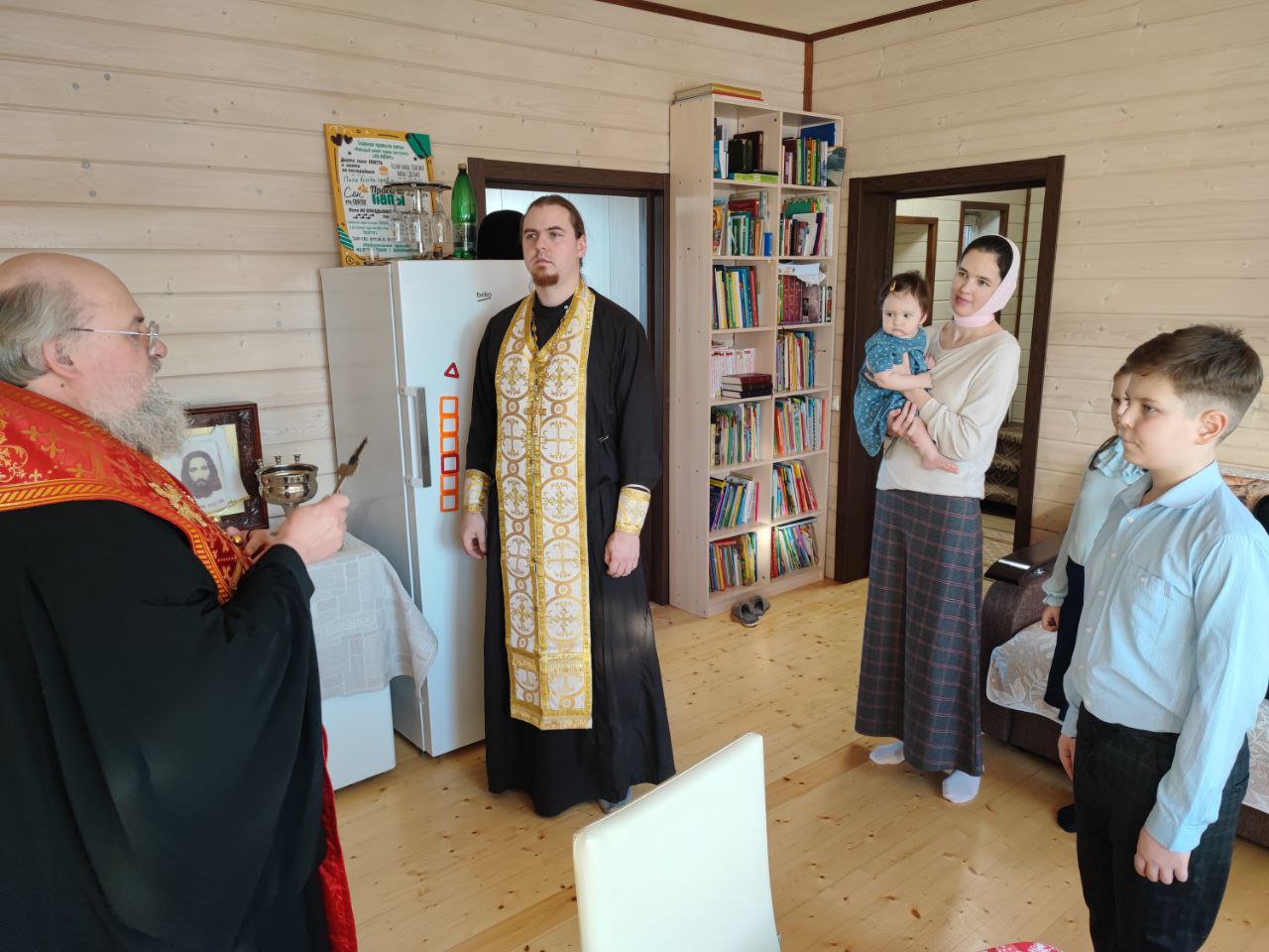 7 декабря епископ Никита совершил освящение дома клирика храма Святого Духа города Козельска иерея Виктора Носова. Отец Виктор и матушка Наталия многодетные они растят четверых детей – Всеволода, Марию, Варвару и маленькую Лию. Свой дом отец Виктор строит своими руками с помощью отца уже на протяжении нескольких лет. Еще многое предстоит сделать, но уже сегодня счастливая семья проживает в своем, очень уютном, жилище. После освящения владыка поздравил отца Виктора и матушку Наталью с новосельем и преподнес им образ Спаса Нерукотворного.