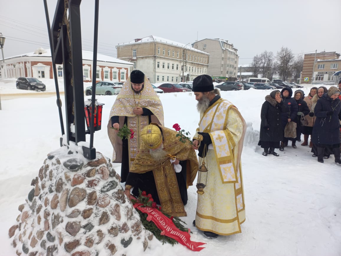 В этот день 9 декабря 2023 года, после Божественной литургии, от Казанского кафедрального собора города Людиново состоялся крестный ход к Поклонному Кресту, установленному на Площади Победы. Духовенством храма и прихожанами была совершена лития обо всех почивших Героях Отечества, совершивших боевые и трудовые подвиги для нашего Отечества. По окончании заупокойной молитвы, настоятель Казанского собора протоиерей Алексий Жиганов, клирики храма иерей Алексий Сначёв и диакон Андрей Соколов, а также прихожане возложили гирлянду и цветы к Поклонному Кресту. Вечная память всем почившим Героям Отечества нашего! Затем, уже в соборе, настоятель протоиерей Алексией Жиганов в сослужении клириков храма молебен. После молебна все молящиеся пропели многолетие Святейшему Патриарху Московскому и Всея Руси Кириллу, Президенту Российской Федерации Владимиру Владимировичу Путину и всем православным христианам. Здесь же была провозглашена здравица всем ныне здравствующим героям Отечества нашего, а также присутствующим в храме почетному гражданину города Людиново Карпову Тимофею Тарасовичу – полному кавалеру орденов Трудовой славы трёх степеней (эти награды приравниваются к званию Героя России) и его супруге Тамаре Егоровне, поздравив ее с недавней годовщиной со дня рождения. Настоятель храма отец Алексий от всех людиновцев выразил слова благодарности Тимофею Тарасовичу за его трудовой подвиг и его нынешнюю активную гражданскую позицию и вручил чете Карповых цветы и подарки. Многая и благая лета всем ныне здравствующим Героям России!