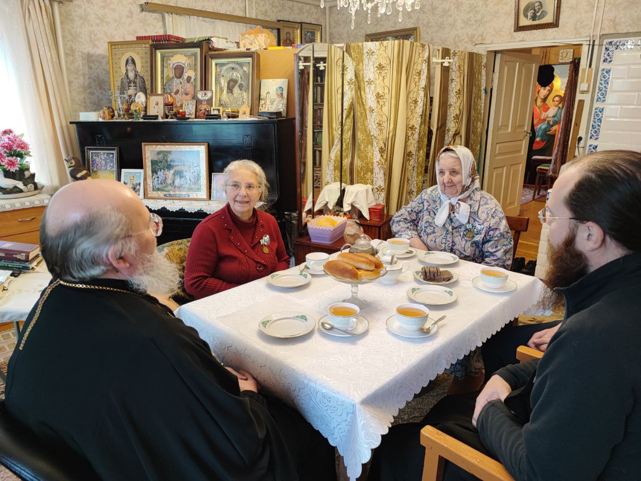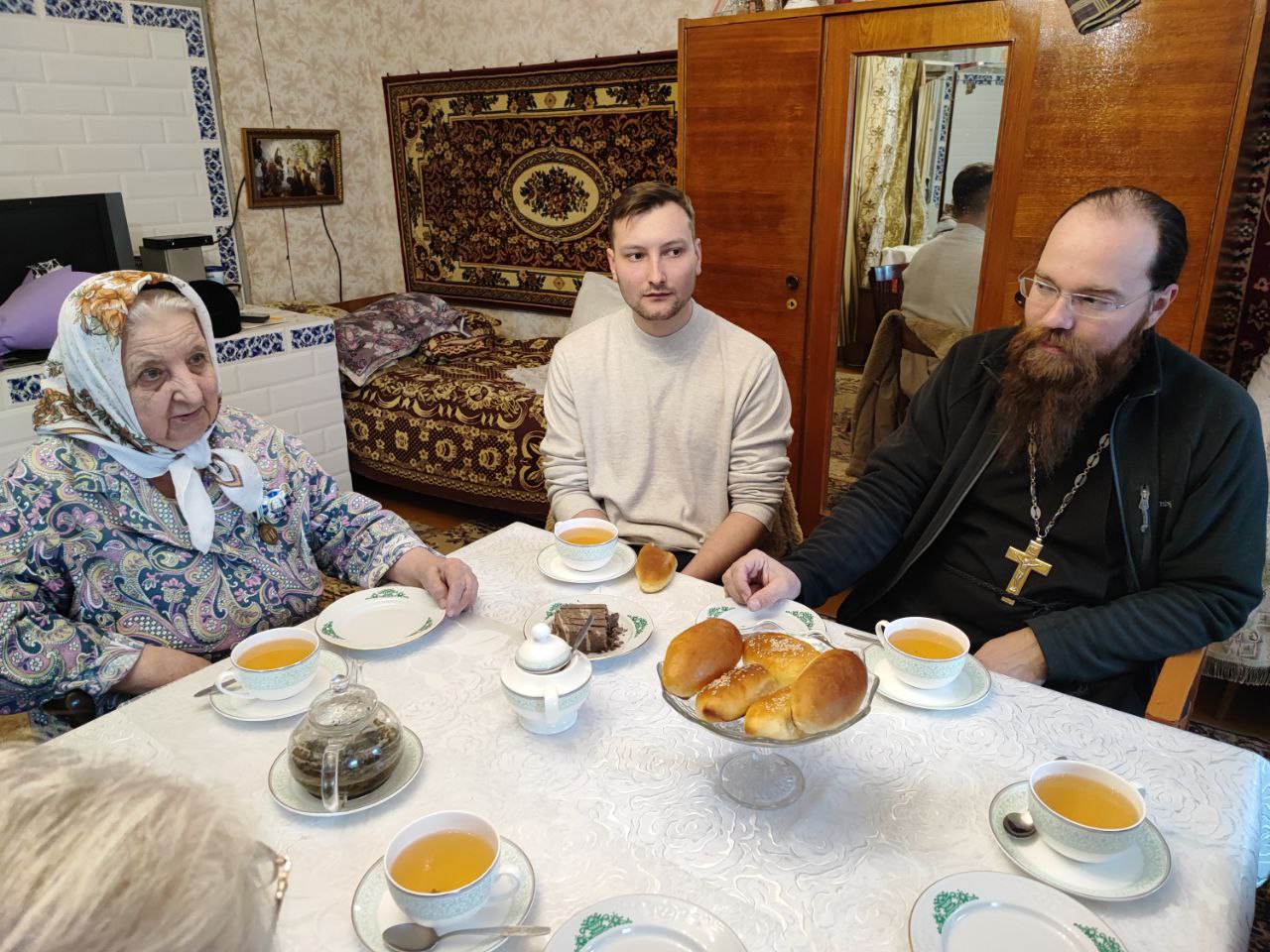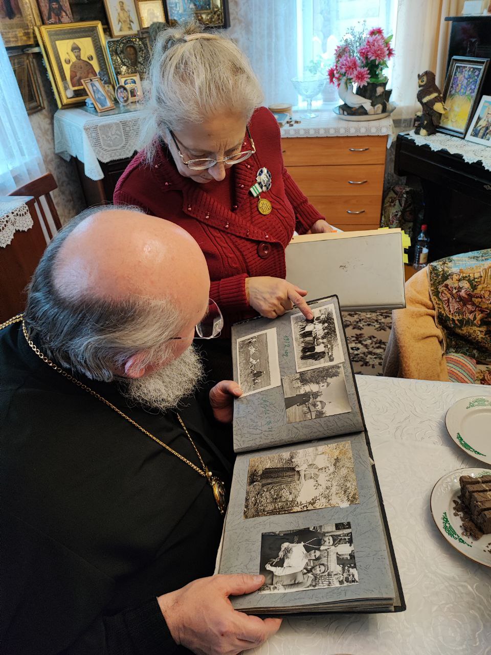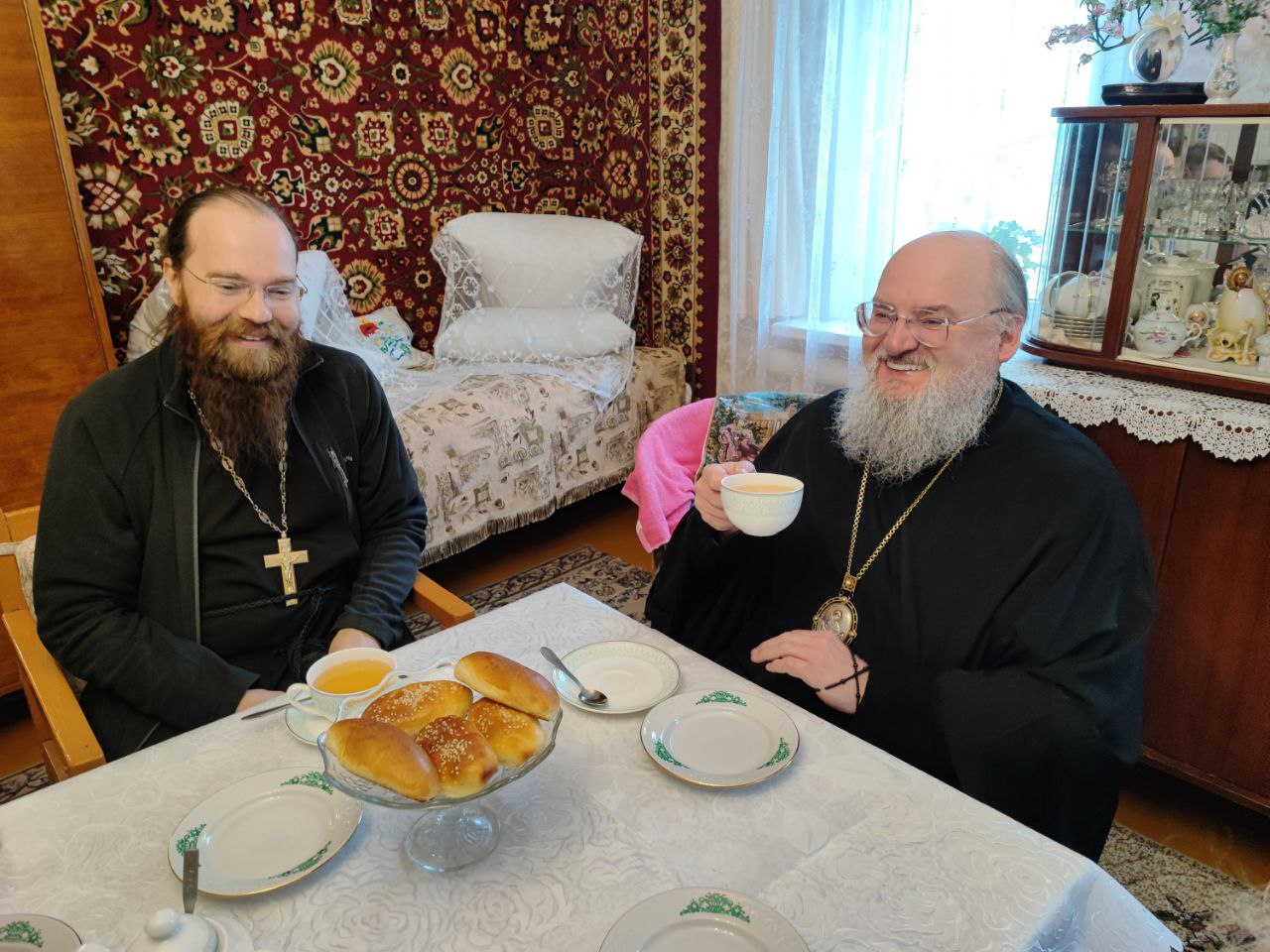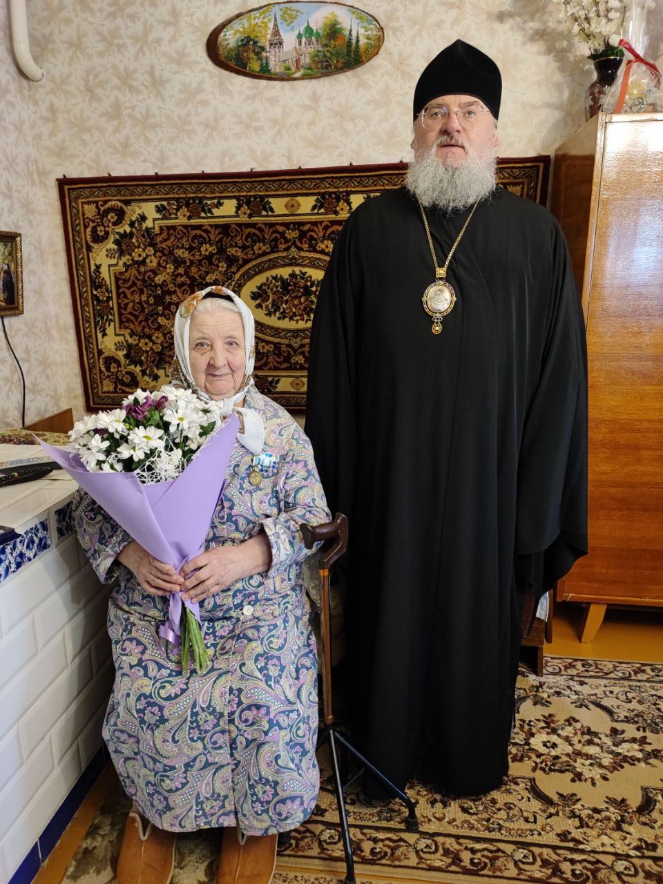 10 декабря епископ Козельский и Людиновский Никита посетил в селе Нижние Прыски вдову настоятеля храма Преображения Господня протоиерея Леонтия Никифорова – Тамару Ивановну, которая вместе с супругом более пятидесяти лет трудилась на приходе, помогая во всем своему батюшке. Отец Леонтий принял приход в один из самых тяжелых периодов гонений на Церковь в советском государстве, однако сумел не только уберечь его от ликвидации, но и укрепить, постоянно благоукрашая и производя различные ремонтные и строительные работы, что на тот момент было практически не реально. И всегда рядом с ним была его супруга – помощница и сомолитвенница. Его поддержка и опора. Вместе с батюшкой они вырасти дочь — Ольгу Леонтьевну и пятерых внуков, двое из которых Симеон и Тихон священники, продолжая дело дедушки, служат сегодня  в Преображенском храме. У матушки десять правнуков.