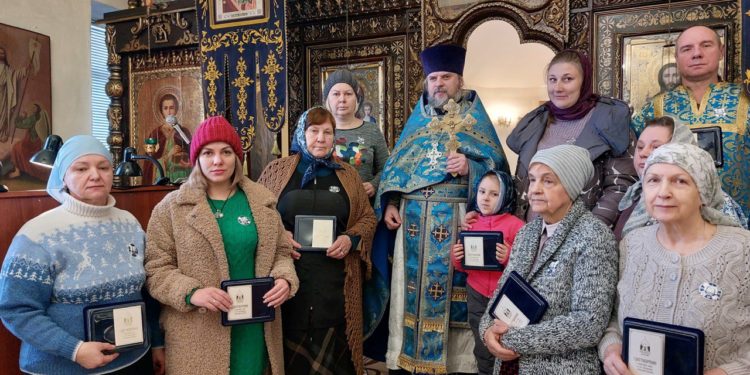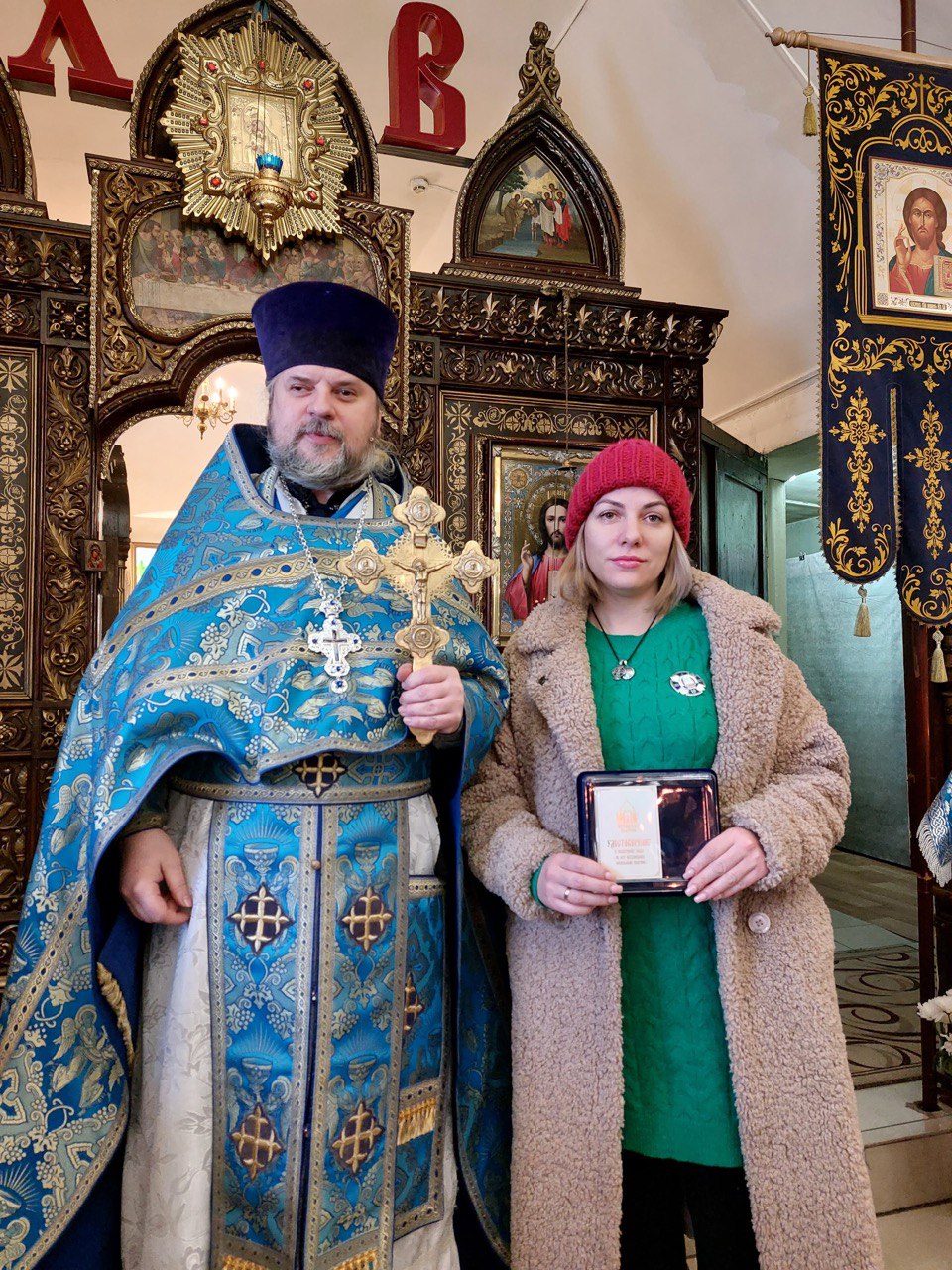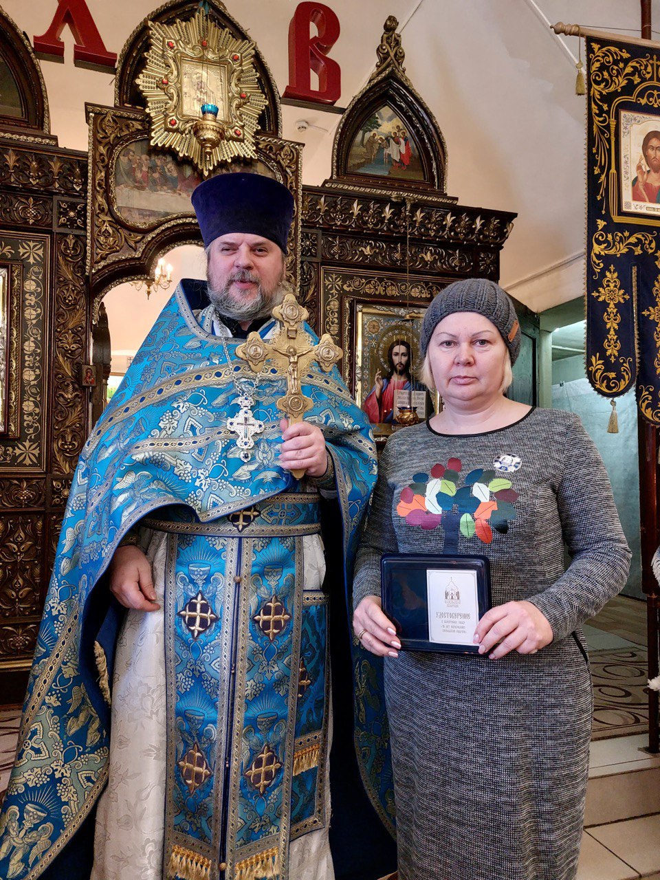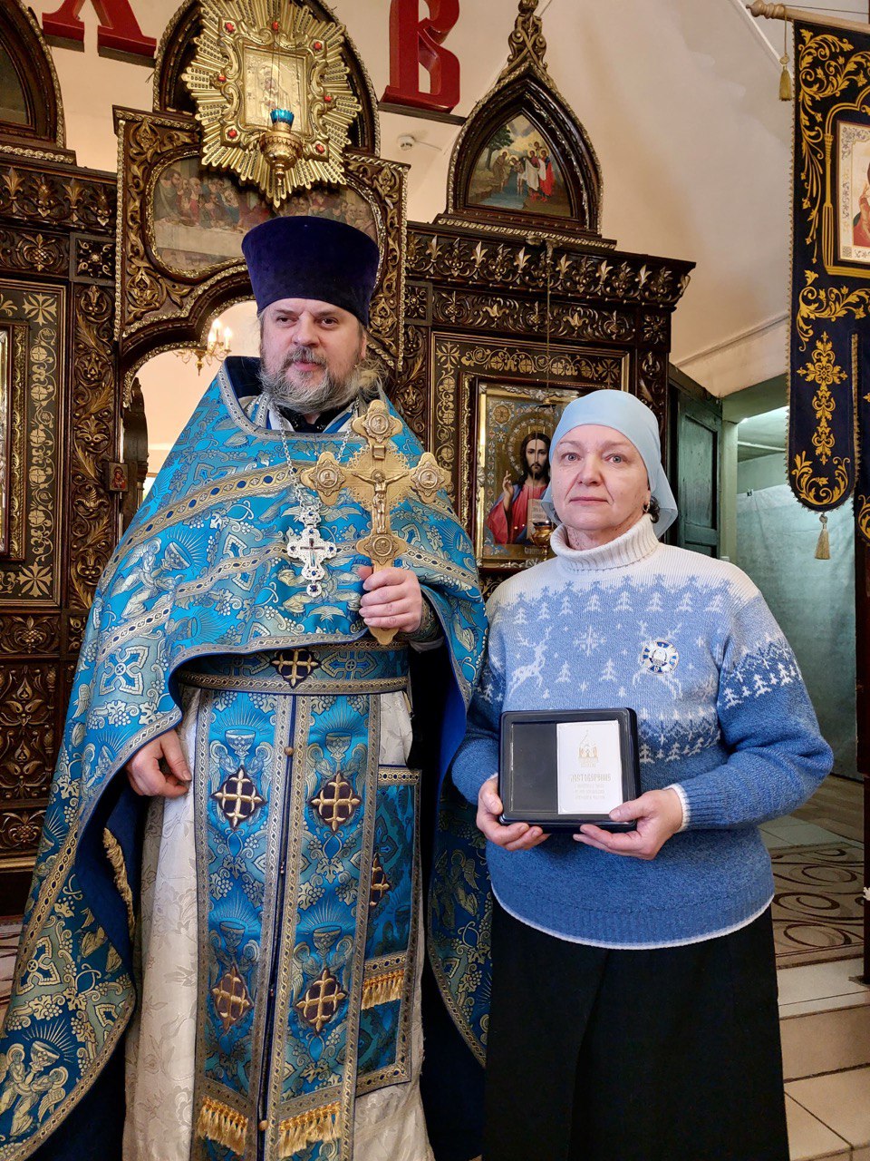 Награждение юбилейным знаком Козельской епархии прихожан Лазаревского храма города Людиново