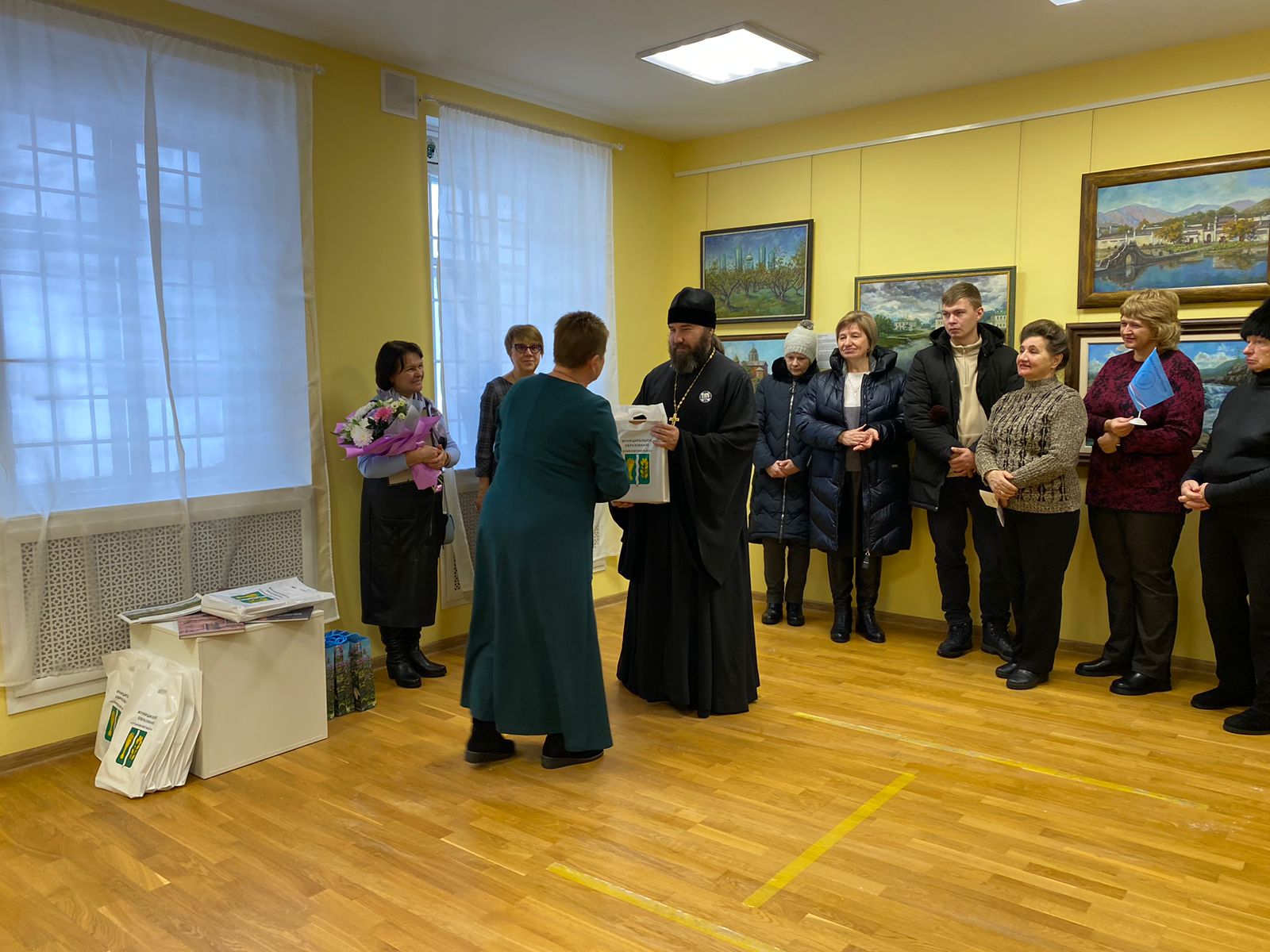 Выставка «Россия — Китай. Без перевода» — это живописный рассказ о двух великих странах, их самобытных культурах, красоте и особенностях природных ландшафтов. Полотна китайского цикла носят этнографический характер, знакомя зрителя с особым миром восточного соседа. Красочные путевые заметки о жизни и быте Поднебесной, колоритные изысканные натюрморты и пейзажи, в которых чувствуется знакомство автора с изобразительной культурой Востока, перерастают под кистью художника в живописно-философские повествования об этой могучей древней цивилизации. В Ульяновском районе, на открытии выставки присутствовала заместитель главы администрации Курбакова Тамара Васильевна, а также директор организации государственное бюджетное учреждение культуры Калужской области «Калужский музей изобразительных искусств» Марченко Наталья Владимировна. По благословению правящего архиерея, епископа Козельского и Людиновского Никиты молитву на начало доброго дела совершил протоиерей Максим Садовников и преподнес Наталье Дмитриевне букет цветов . На открытии присутствовали жители района, все были довольны выставкой. Много разных чувств навеяли образы Китая, не меньше порадовала красота русских просторов и храмов, изображенных на картинах Натальи Дмитриевны Овсиенко.
