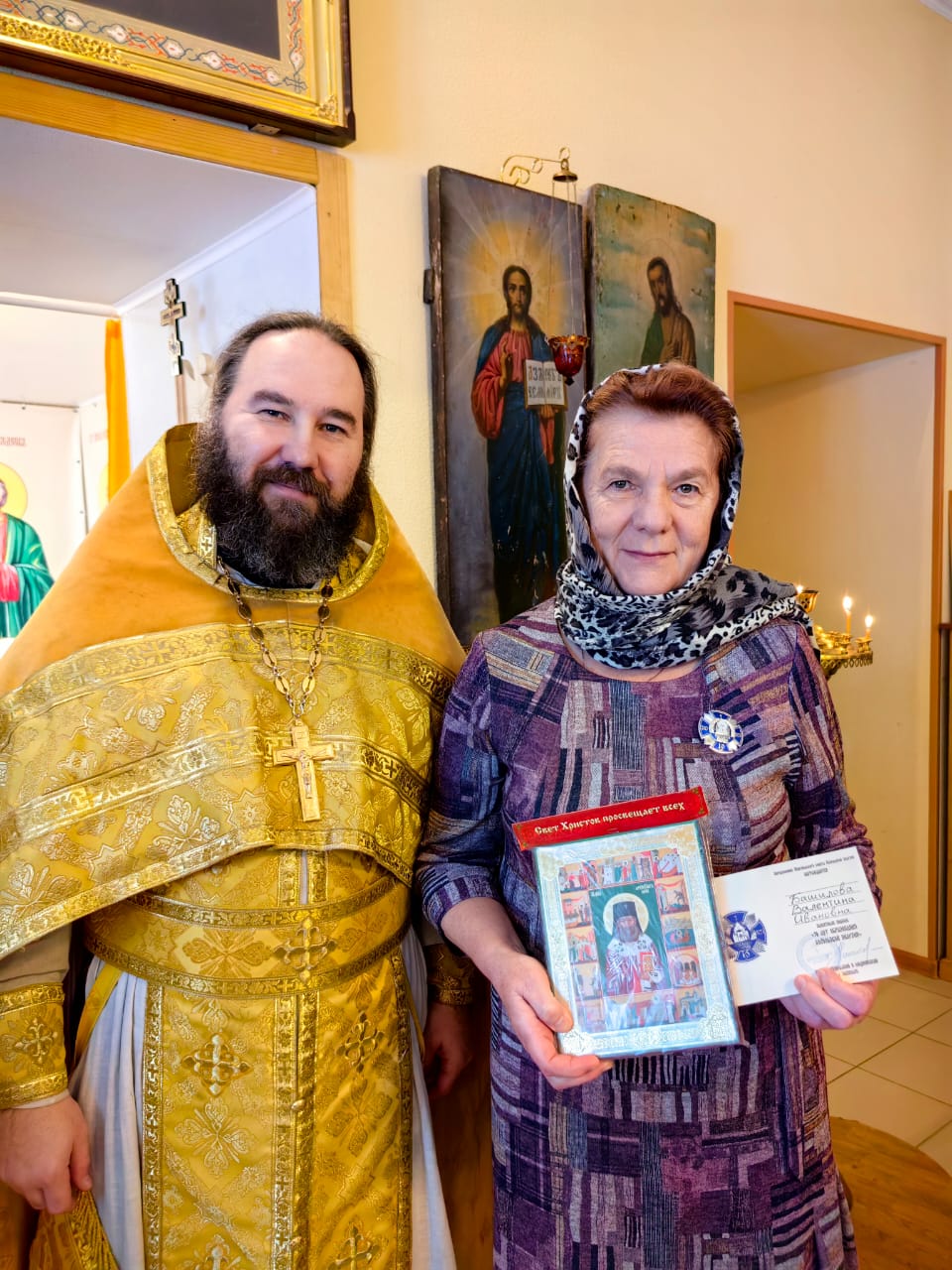 В воскресный день 17 декабря, после Божественной литургии настоятель храма Воскресения Христова протоиерей Максим Садовников вручил юбилейные Памятные знаки «10 лет образования Козельской епархии» двум прихожанкам. За активную помощь храму и детям из Воскресной школы Памятный Знак вручили Афониной Валентине Алексеевне, предпринимателю и депутату районного собрания. Также Памятным Знаком отметили педагога Ульяновской средней школы, преподавателя ОПК Башилову Валентину Ивановну. Обе Валентины являются постоянными прихожанками храма. После награждения все молились на еженедельном молебне за воинов, находящихся в СВО.