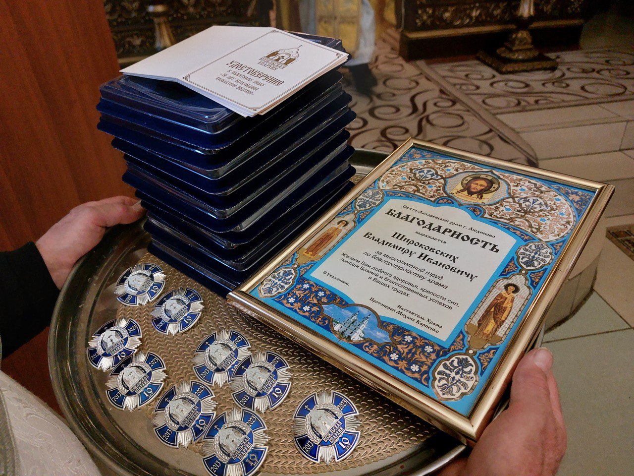 19 декабря, после Божественной литургии, в праздник Святителя Николая, архиепископа Мир Ликийских чудотворца, настоятелем Лазаревского храма города Людиново протоиереем Михаилом Карпенко по благословению епископа Козельского и Людиновского Никиты прихожанам храма был вручен памятный знак “10 лет образования Козельской Епархии”. Этот нагрудный знак вручается особо потрудившимся прихожанам, благотворителям — тем, которые на протяжении многих лет трудятся на благо Святой Церкви. Юбилейным знаком были награждены: