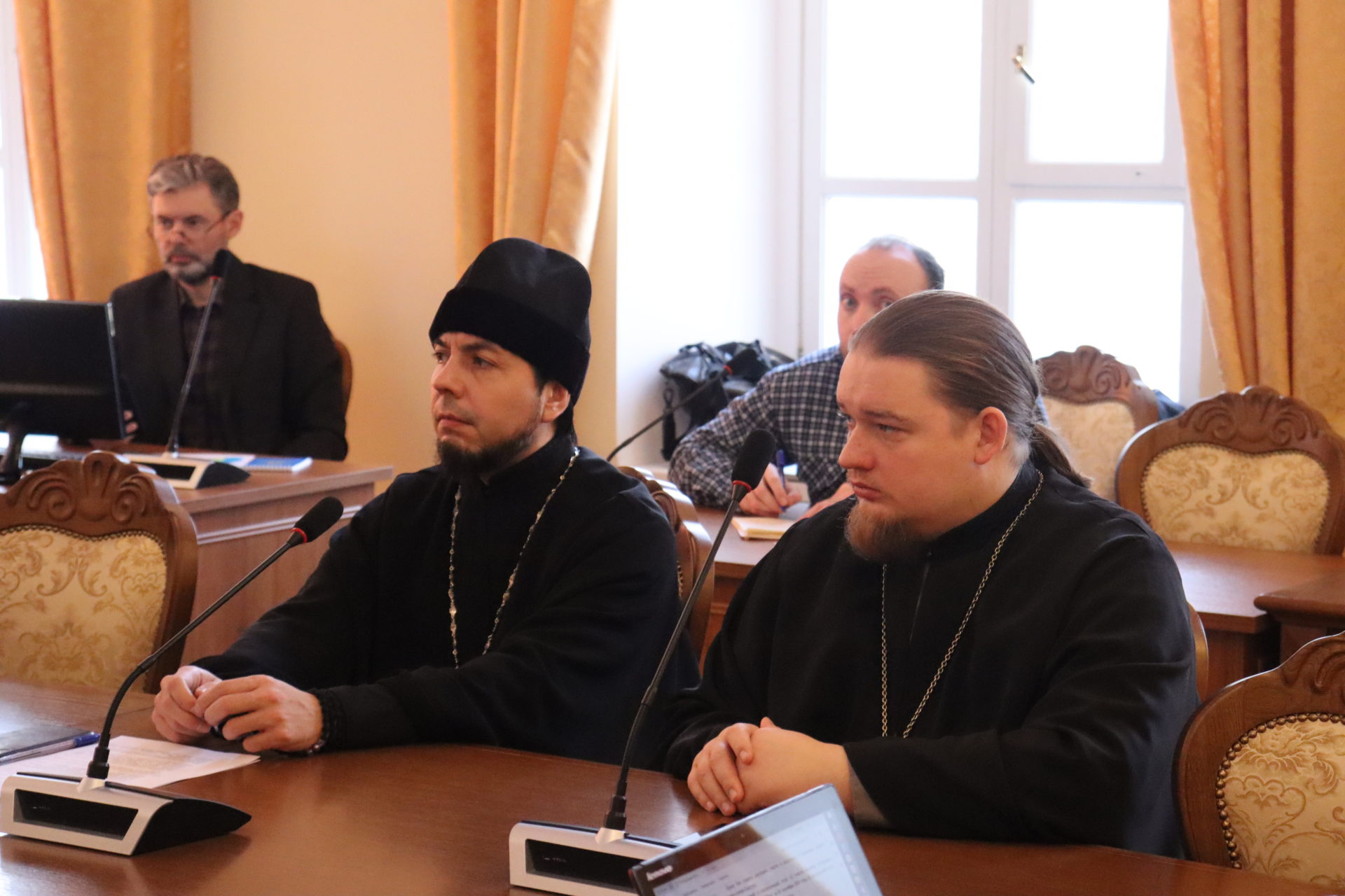 Об опыте взаимодействия священников с педагогами общеобразовательных учреждений и дошкольных образовательных учреждений по вопросам духовно – нравственного воспитания детей и молодёжи с сообщениями перед присутствующими выступили протоиерей Николай Андриянов, руководитель ОРОиКа Песоченской епархии, иерей Димитрий Торшин, руководитель ОРОиК Козельской епархии.
