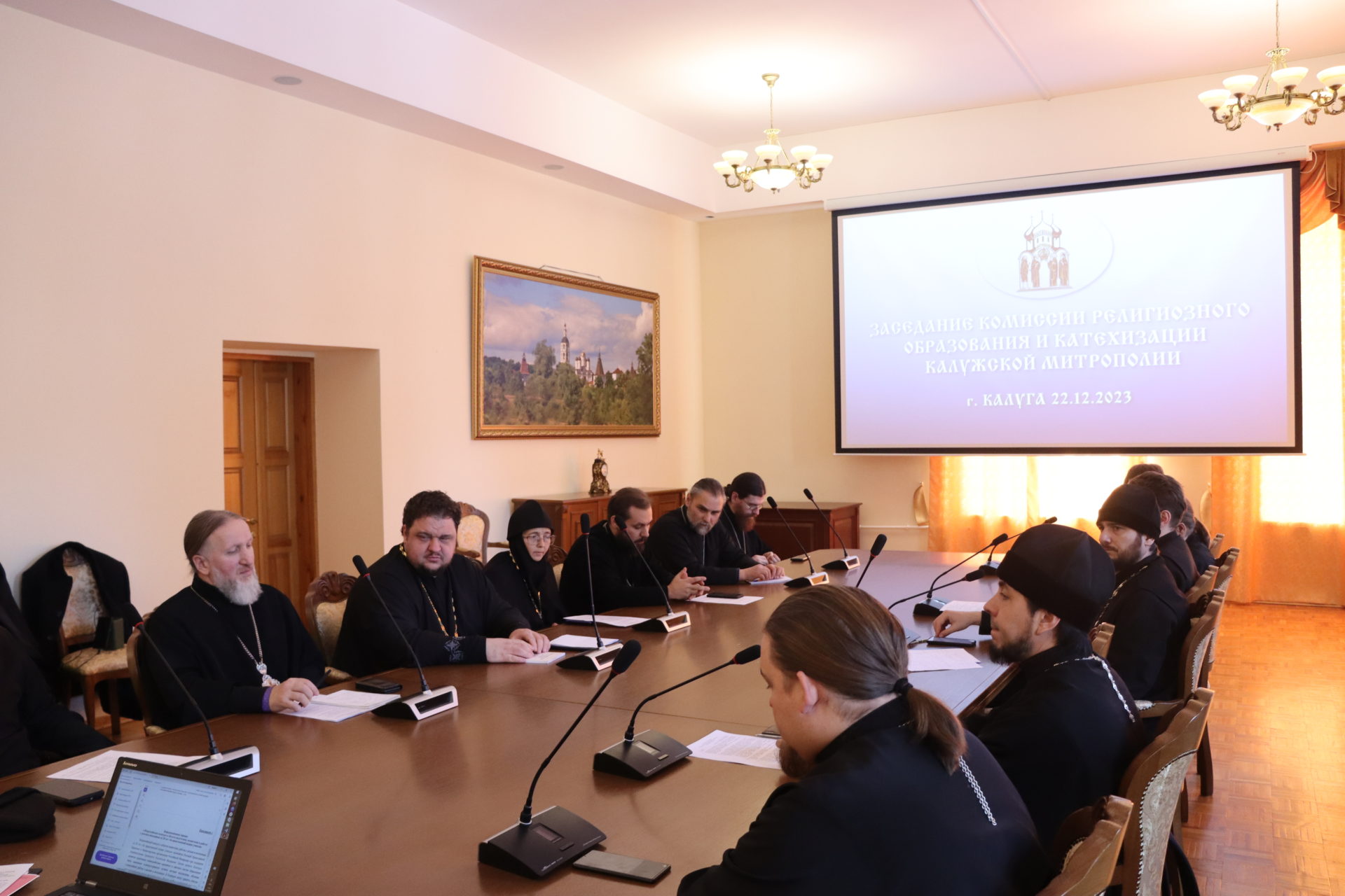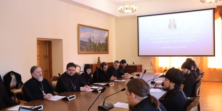 22 декабря 2023 года в Калужской митрополии прошло расширенное заседание Комиссии религиозного образования и катехизации Калужской митрополии, в котором, по благословлению правящего архиерея епископа Козельского и Людиновского Никиты, приняли участие благочинный Людиновского округа Козельской епархии настоятель Казанского собора города Людиново протоиерей Алексий Жиганов и иерей Димитрий Торшин, руководитель ОРОиК Козельской епархии.