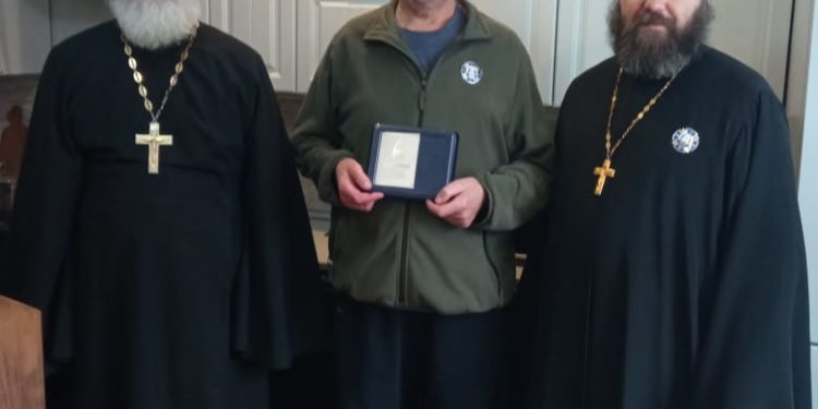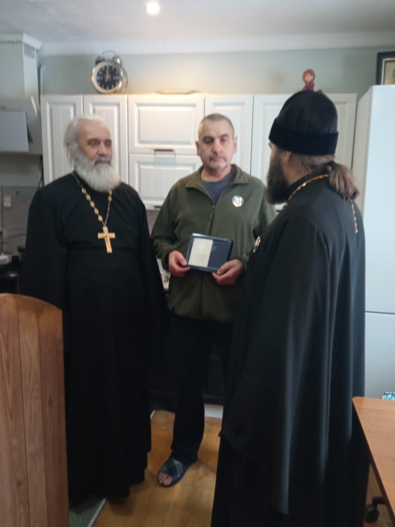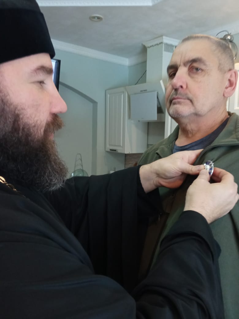 Награждение памятным юбилейным знаком «10 лет Козельской епархии» активного прихожанина в селе Дудоровский Ульяновского района