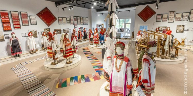 С 12 по 26 декабря на стенде Калужской области на международной выставке — форуме «Россия» на ВДНХ была представлена экспозиция «На стыке веков. Мода по — калужски. От понëвы до сарафана». Посетители смогли не просто полюбоваться традиционными нарядами и предметами быта, но и примерить аутентичные костюмы на себя с помощью технологий дополненной реальности. Этнографический музей Юхновграда представил повседневные и праздничные крестьянские костюмы, бережно собранные из разных уголков Калужского края. В коллекции представлены аутентичные наряды: от сарафанов и рушников до причесок и обуви с характерными локальными особенностями. Большинство предметов широкой публике были продемонстрированы впервые. Этнографический музей Юхновграда и 3D-музей национальных костюмов Российской империи представили первый голографический музей национальных костюмов, благодаря которому посетители смогли примерить национальные костюмы и «окунуться» в эпоху 19 века. Для этого нужно было лишь отсканировать специальный qr-код, размещенный рядом с манекеном. Далее технология компании «3Д Платформа» «надевала» самобытный наряд на человека.