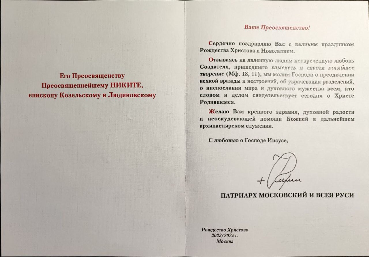 Поздравление с Рождеством Христовым и Новолетием от Святейшего Патриарха КИРИЛЛА