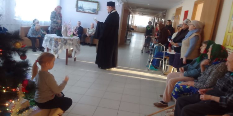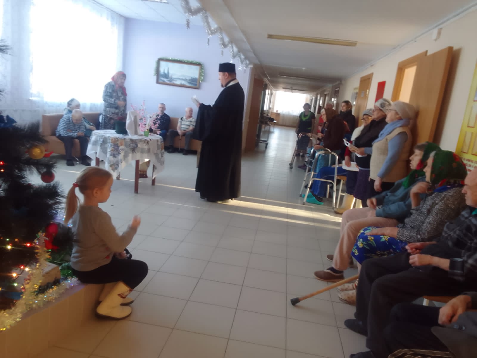 В Рождественский сочельник 6 января  настоятель храма в честь «Калужской» иконы Божией Матери в поселке Еленский Хвастовичского района Козельской епархии иерей Павел Мещеряков совершил молебен в доме ветеранов и инвалидов «Милосердие». По окончании богослужения отец Павел поздравил всех присутствовавших с наступающим праздником Рождества Христова, а затем пообщался с насельниками социального учереждения.