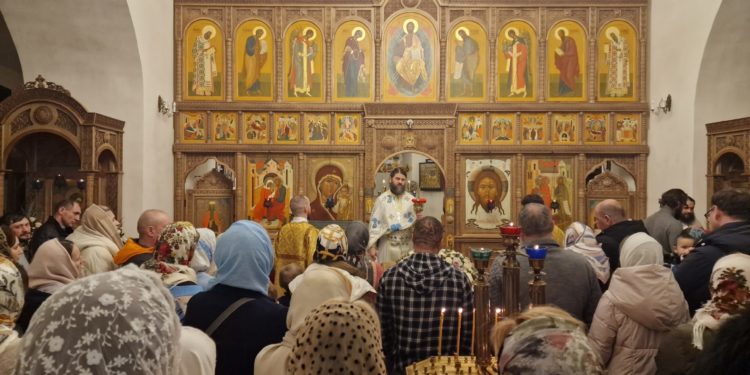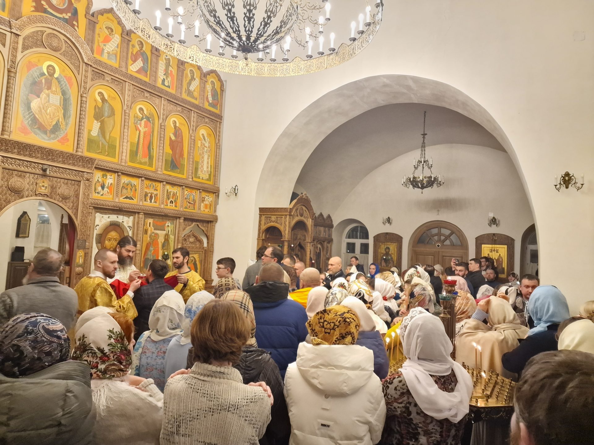 7 января. Рождество Христово. Село Губино Козельской епархии. В ночь с 6 на 7 января 2024 года, в великий двунадесятый праздник Рождества Христова, настоятель Архиерейского подворья — храма Зачатия Иоанна Предтечи в селе Губино иерей Максим Изопов и иеромонах Вадим (Басов) совершили ночную рождественскую Литургию, на которой причастились Святых Христовых Тайн около 170 человек. Во время богослужения было зачитано Рождественское послание Святейшего Патриарха Московского и всея Руси Кирилла.