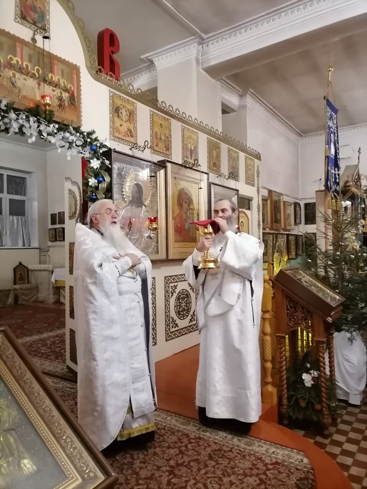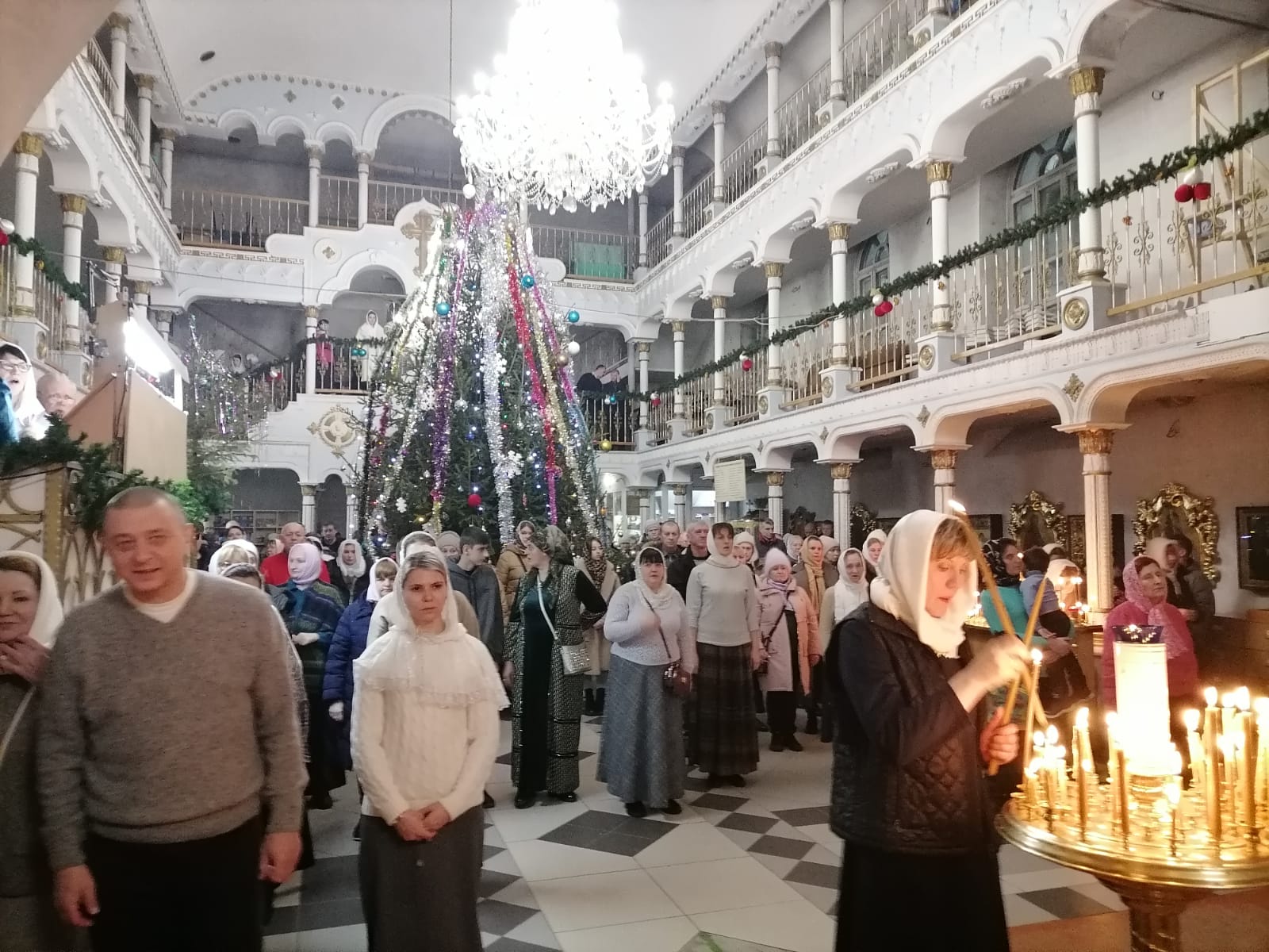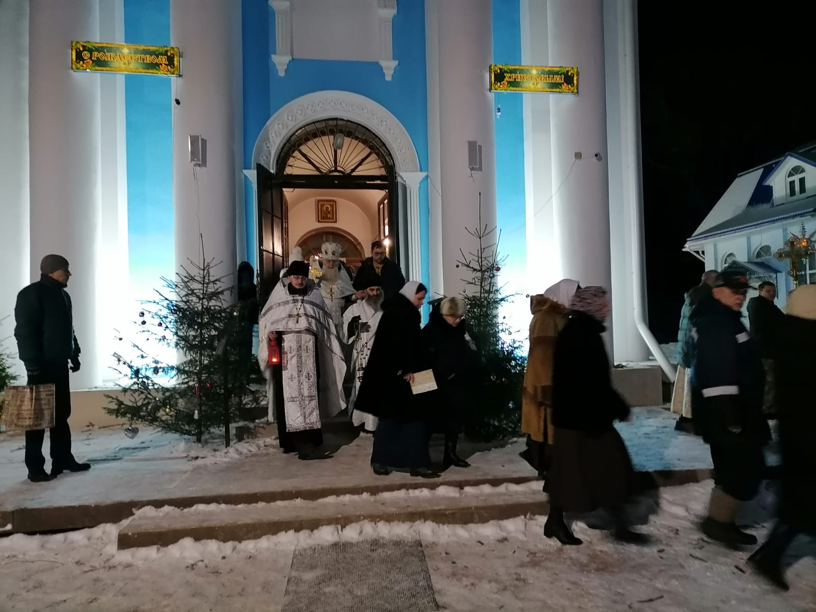 Рождественские торжества в Казанском соборе города Людиново начались праздничным всенощным бдением, которое вечером 6 января 2024 года возглавил настоятель собора протоиерей Алексий Жиганов в сослужении клириков храма иерея Алексия Сначева и диакона Андрея Соколова. Во время полиелея на утрене духовенство в центре храма пред иконой Рождества пропело величание праздника, после чего было прочитано Евангельское зачало от Матфея, повествующее о рождении в мир Спаса Христа. Затем прихожане храма приложились к праздничному образу и помазались освященным елеем. После вечернего богослужения, по доброй местной традиции Казанского собора, был совершен Крестный ход вокруг храма с пением тропаря праздника. 7 января 2024 года, в полночь, в Казанском соборе совершилась праздничная Божественная литургия. В храме к этому часу было особенно торжественно. Радость переполняла сердца людей, пришедших  в эту светозарную ночь прославить родившегося Младенца Христа в главный храм города Людиново. После литургии протоиерей Алексий Жиганов огласил Рождественское послание Святейшего Патриарха Московского и всея Руси Кирилла архипастырям, пастырям и всем верным чадам Русской Православной Церкви, и Рождественское послание Преосвященнейшего Никиты, епископа Козельского и Людиновского. Затем, по доброй традиции, отец Алексий пригласил прихожан прославить Богомладенца пением колядок и Рождественских стихов. Самые смелые и подготовленные получили от настоятеля сладкие подарки.