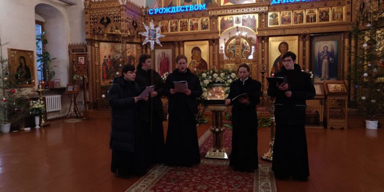 Колядовщики из Калуги посетили Успенский кафедральный собор города Козельска