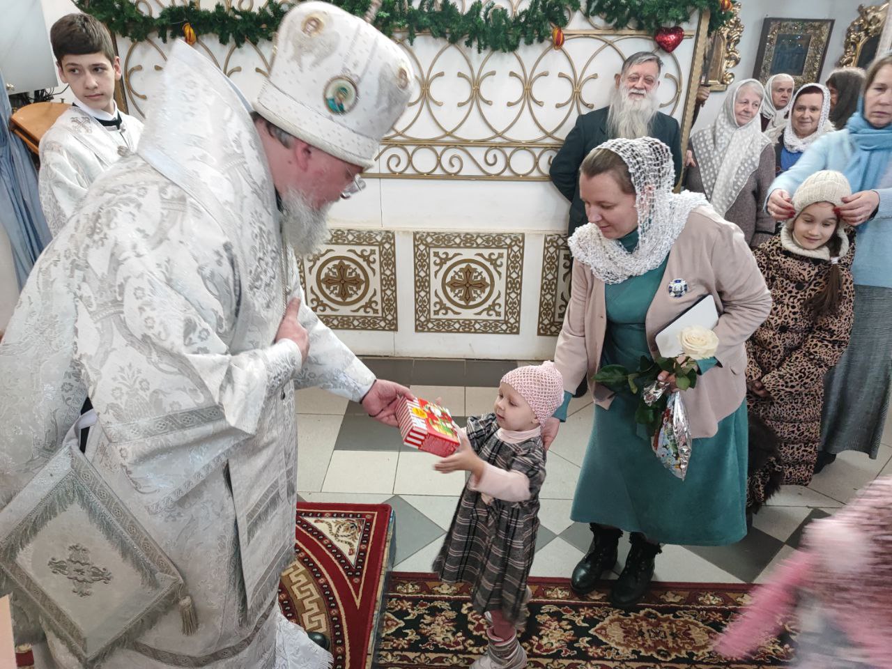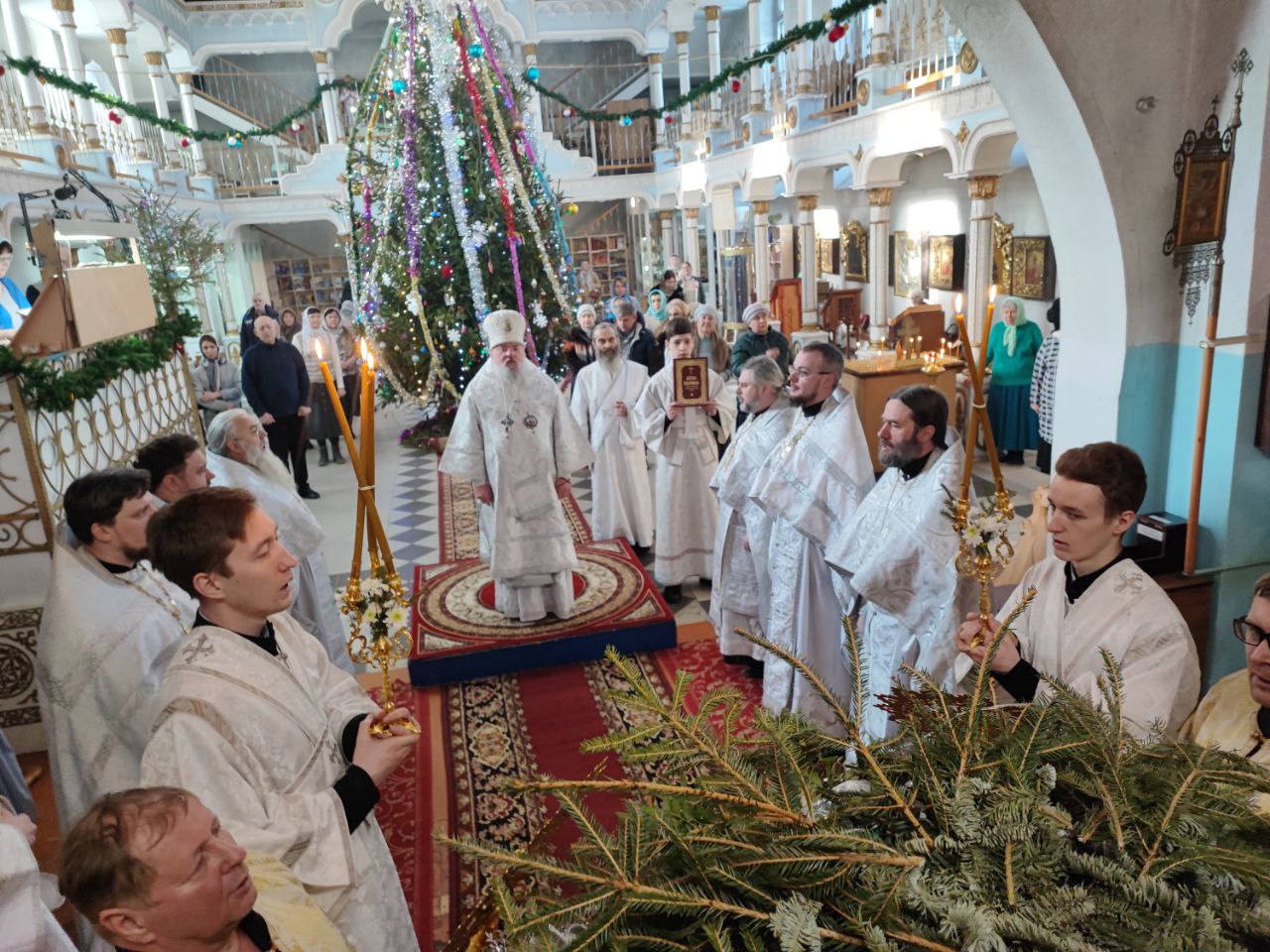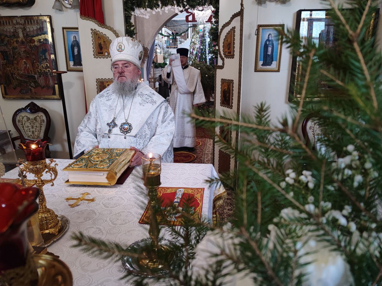 В завершении богослужения священнослужители совершили славление праздника Рождества Христова, а затем, вознеся молитву первомученику Стефану, владыка обратился к богомольцам с архипастырским словом.