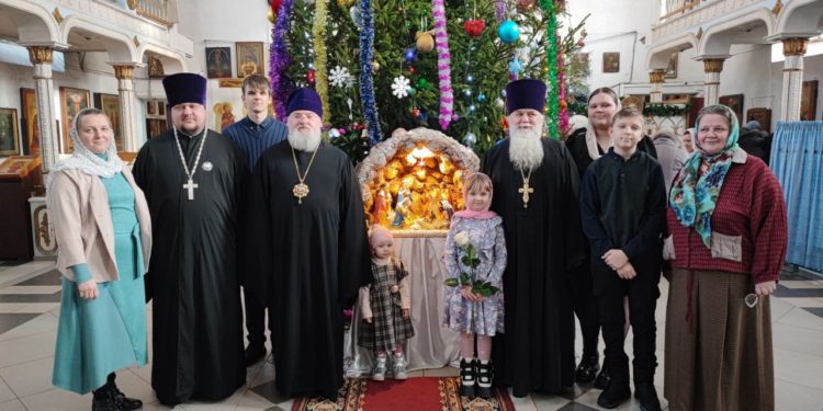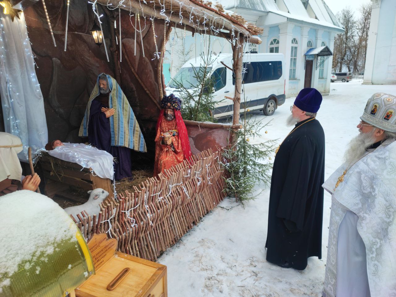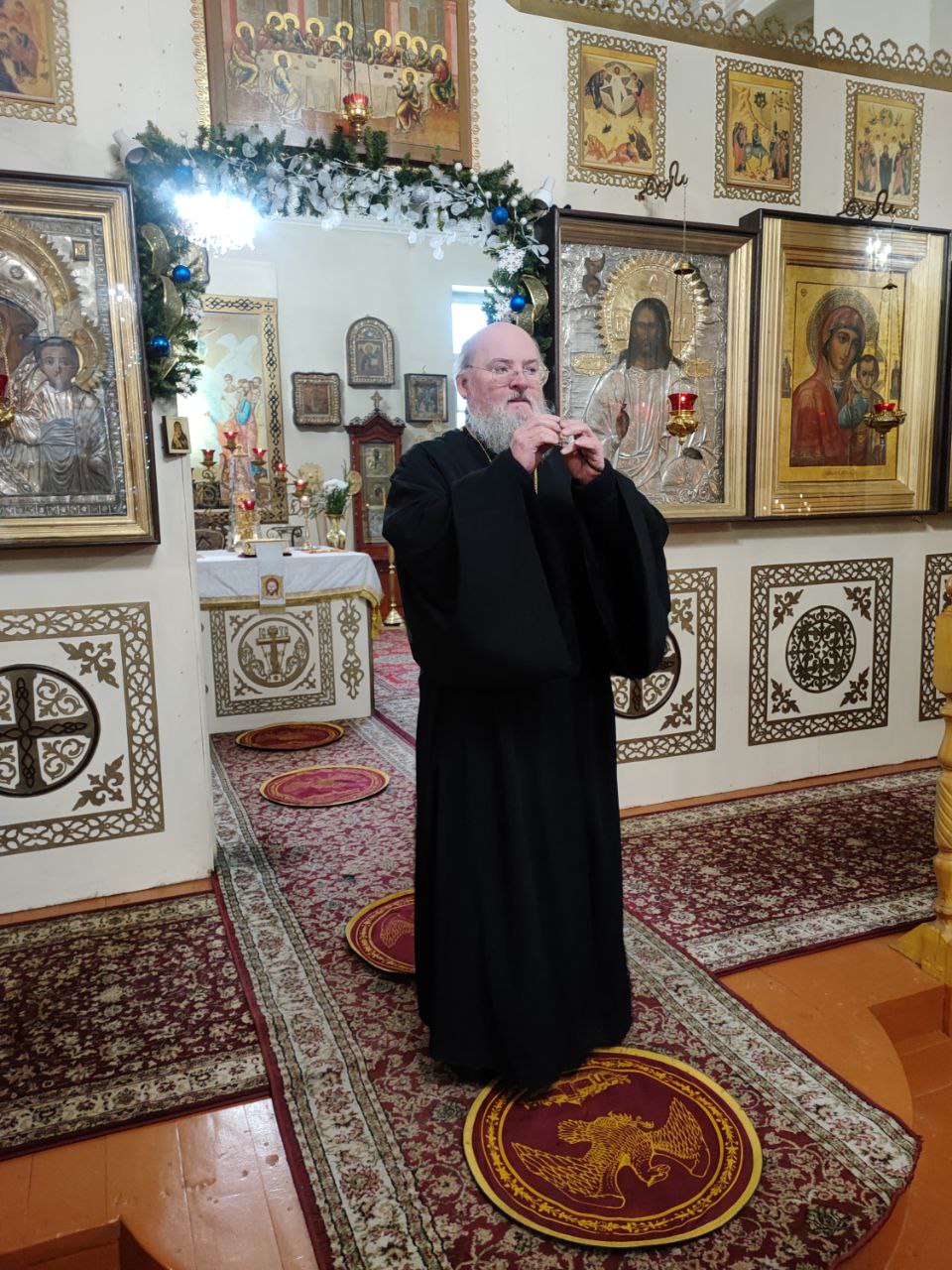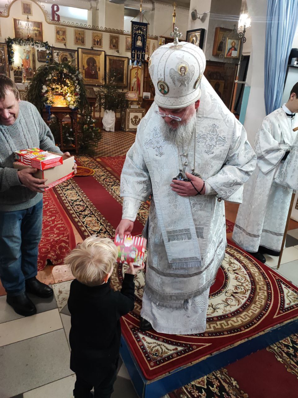 В завершении богослужения священнослужители совершили славление праздника Рождества Христова, а затем, вознеся молитву первомученику Стефану, владыка обратился к богомольцам с архипастырским словом.
