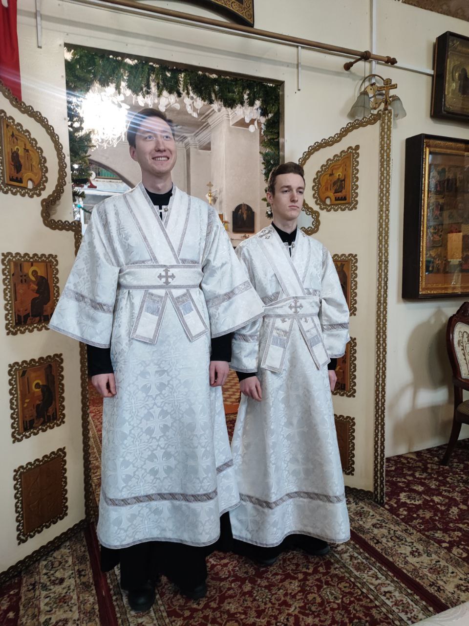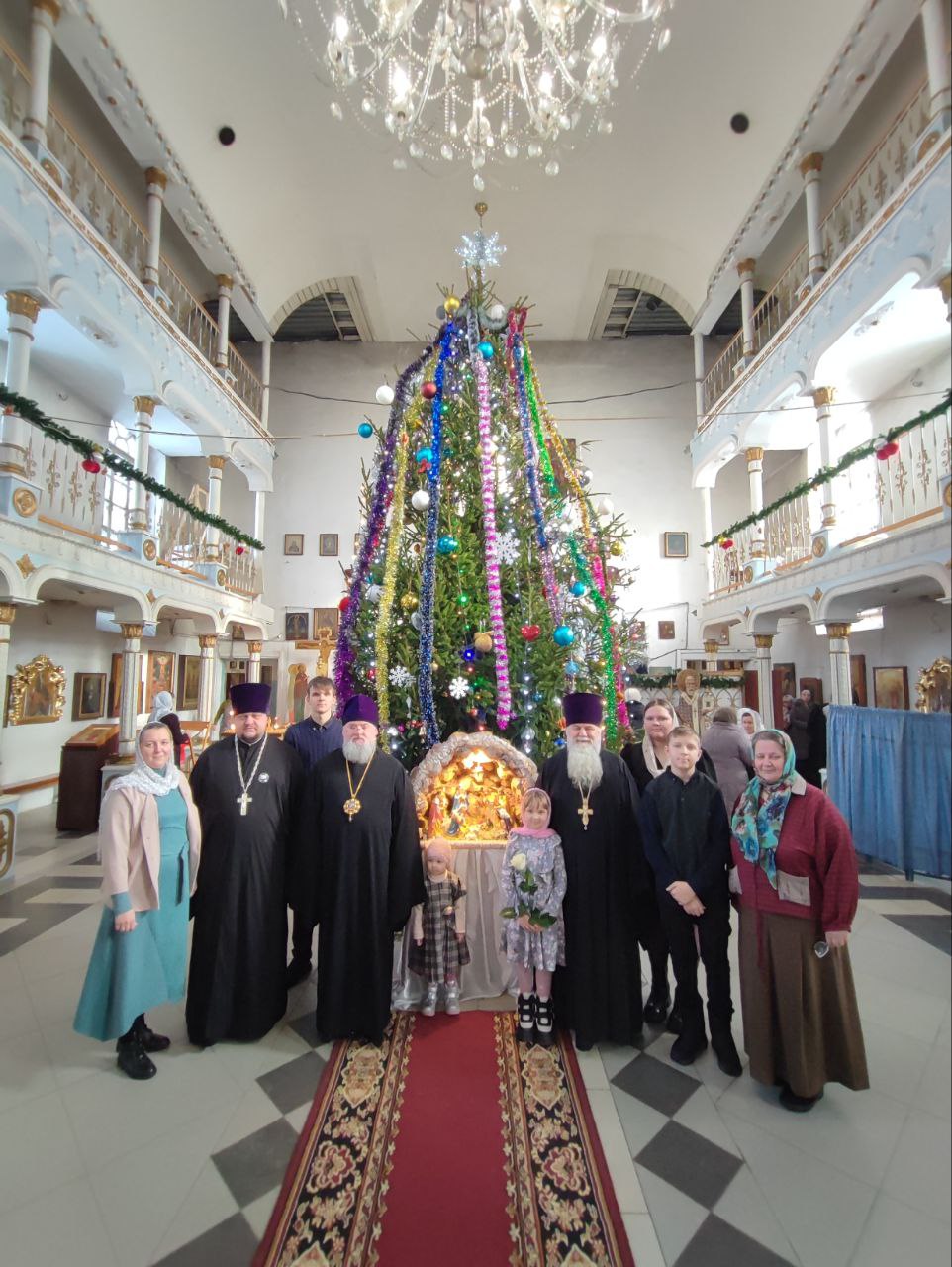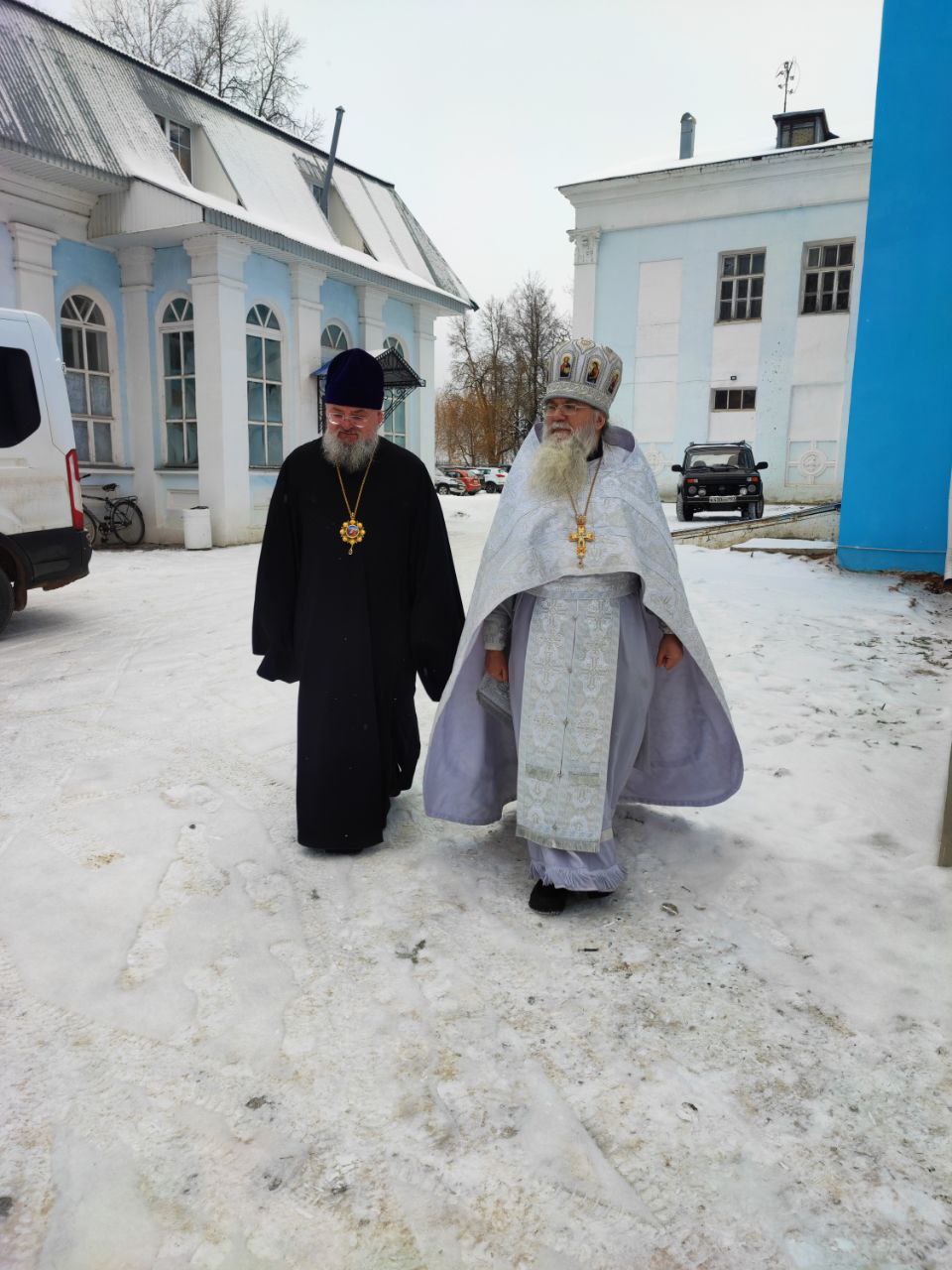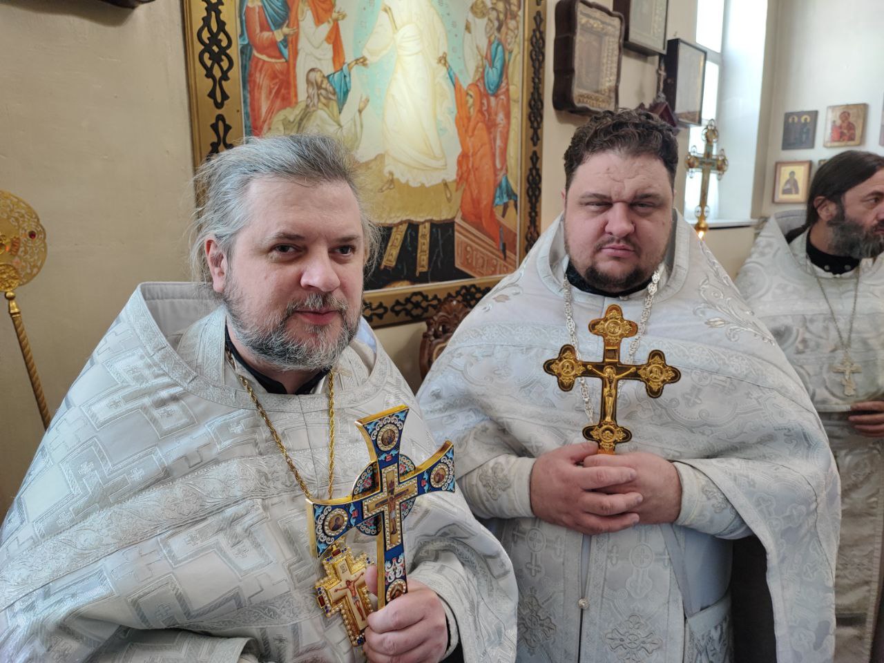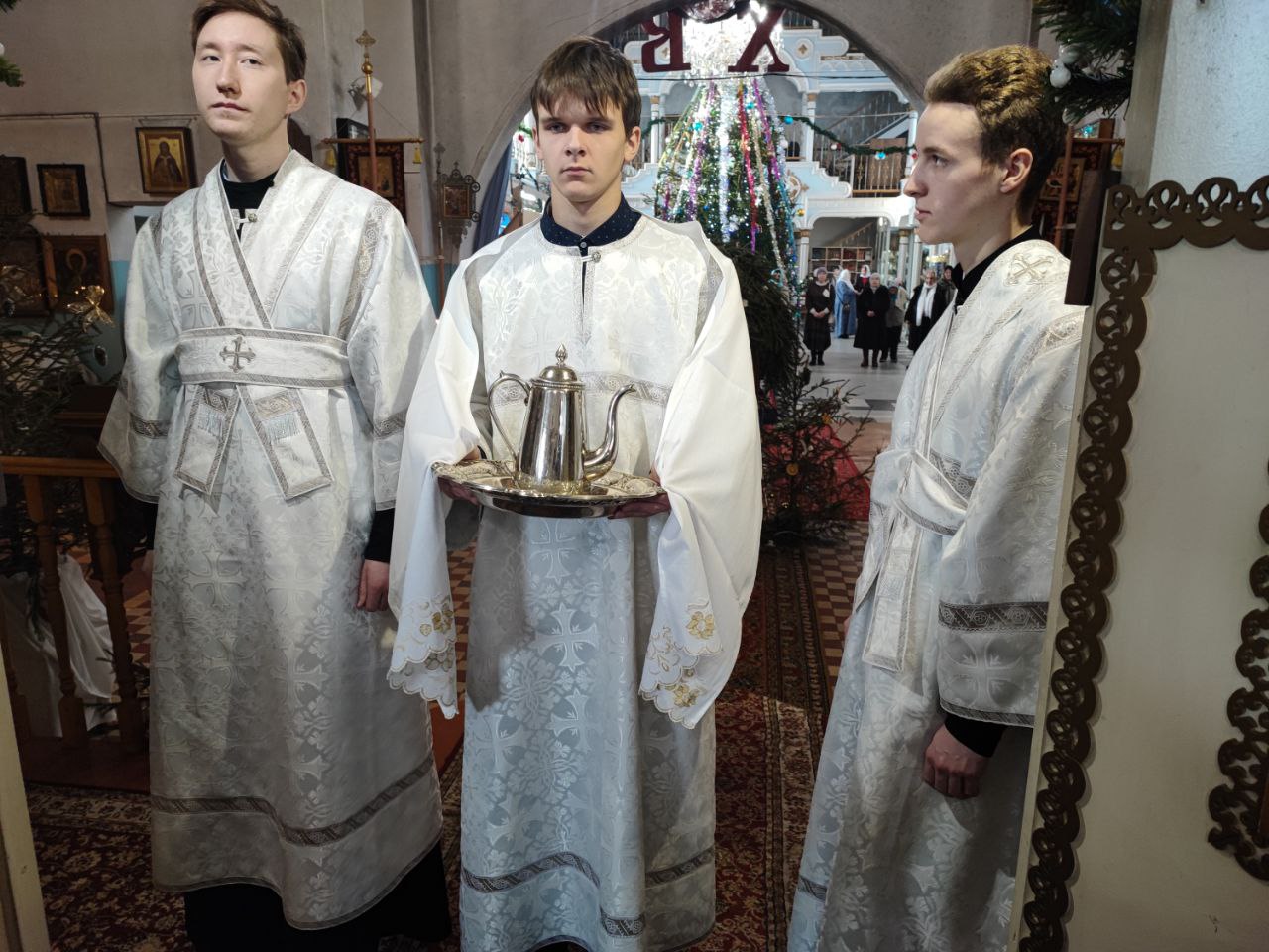 Его Преосвященству сослужили: настоятель собора, благочинный округа митрофорный протоиерей Алексий Жиганов, протоиерей Михаил Карпенко, протоиерей Александр Рябов, иерей Алексий Сначев, иерей Иоанн Майоров, иерей Георгий Краснов, диакон Евгений Ковригин и диакон Андрей Соколов.