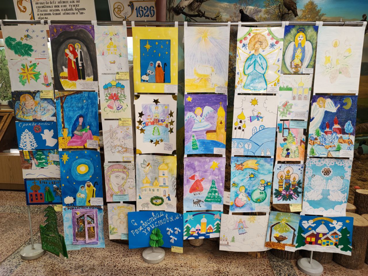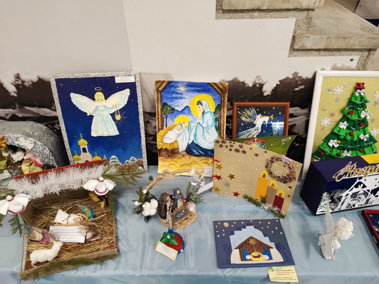 На рождественской выставке было представлено более 200 работ в номинациях «Декоративная работа» и «Рисунок» от двадцати трёх образовательных учреждений города Людиново, Людиновского, Хвастовичского и Жиздринского районов. Здесь красовались рождественские композиции, карусели, ёлочки, ангелочки, рисунки и панно с библейскими сюжетами и зимними пейзажами, и множество других поделок, которые радовали глаз своим мастерством и фантазией.
