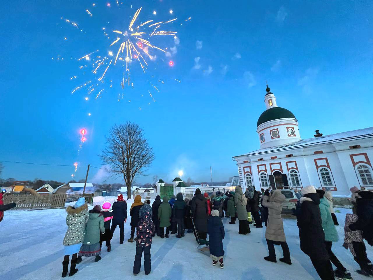 В ночь на 7 января в селе Нижние Прыски Козельского района торжественно встретили праздник Рождества Христова. Всенощное бдение и Божественную Литургию совершил настоятель прихода иерей Тихон Худяков в сослужении с духовенством храма. Днем в приходском доме состоялся детский праздник для воспитанников Воскресной школы и гостей храма. Выступали дети прихожан, воспитанники Русской Классической школы из города Козельска, многодетные семьи села и воспитанники  детского хора при храме. Всем присутствующим были подарены сладкие подарки, а затем празднование переместилось на улицу. Здесь детей встречали с  чаепитием сестры Милосердия из епархиального сестричества имени святой царицы Александры Федоровны, всем деткам были предложены пирожки и чай. Проходили многочисленные активные игры и конкурсы. По окончании праздника был устроен праздничный салют. Вечером, в дополнение ко всем мероприятиям, сестричество провело мастер-класс по вышиванию бисером.
