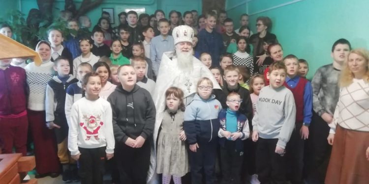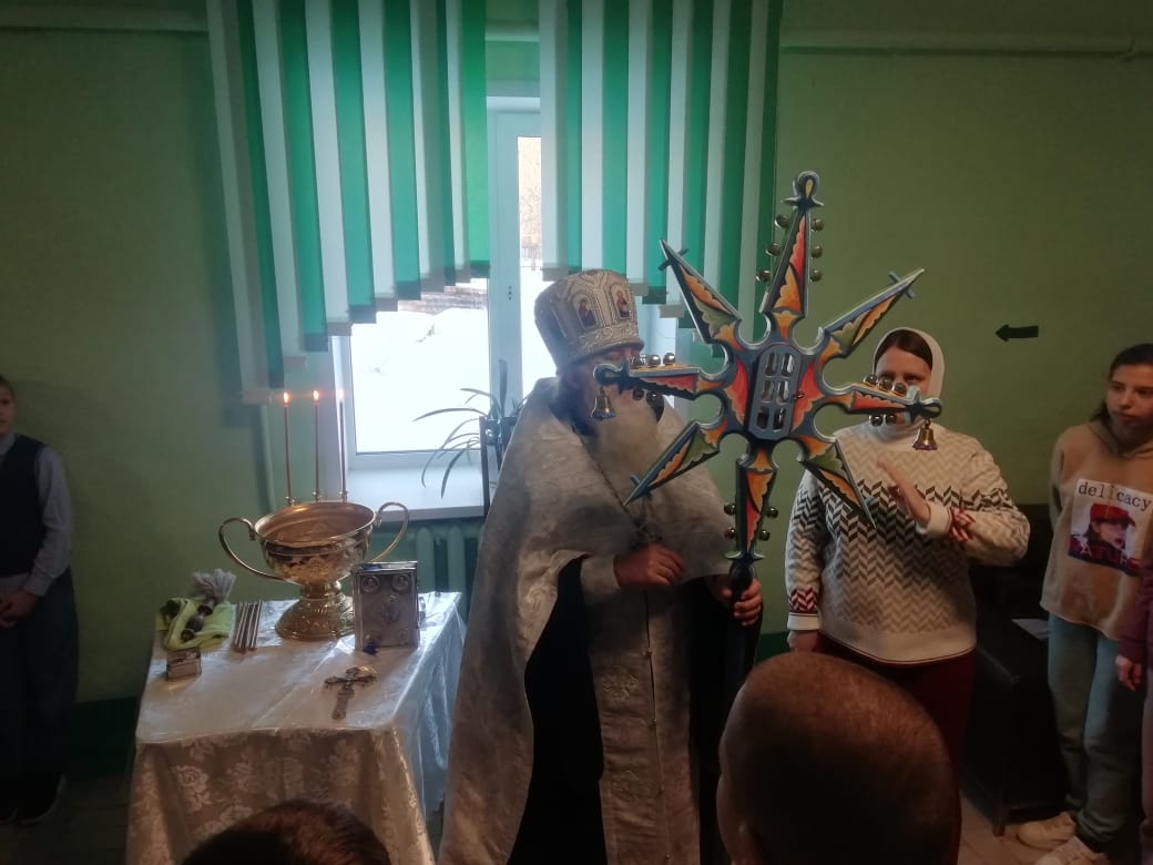 12 января 2024 года, в продолжение святочных дней, благочинный Людиновского округа Козельской епархии настоятель Казанского собора города Людиново протоиерей Алексий Жиганов с прихожанами храма посетили Государственное казённое общеобразовательное учреждение Калужской области «Людиновская школа-интернат для обучающихся с ограниченными возможностями здоровья». Отец Алексий по традиции совершил праздничный молебен для воспитанников и сотрудников школы – интерната, окропил всех молящихся святой водой и обратился к присутствующим со словами поздравления с продолжающимися торжествами по случаю празднования Рождества Христова.