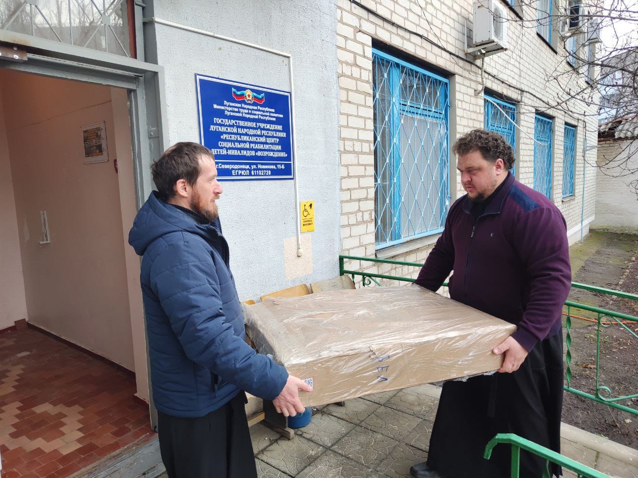 Накануне праздника Рождества состоялось сразу две поездки. В одной из них приняли участие наместник мужского монастыря Спаса Нерукотворного пустынь села Клыково Козельского района архимандрит Михаил (Семенов), а также клирик Козельской епархии иерей Георгий Махаринец,  совместно с клириком Песоченской епархии протоиереем Александром Рябовым посетили города Северодонецк и Лисичанск. Отправной точкой в Лисичанске и Северодонецке стали пункты обогрева благотворительного фонда «Ридовка помогает», которые теперь, благодаря благотворительной миссии, оснащены всем необходимым.