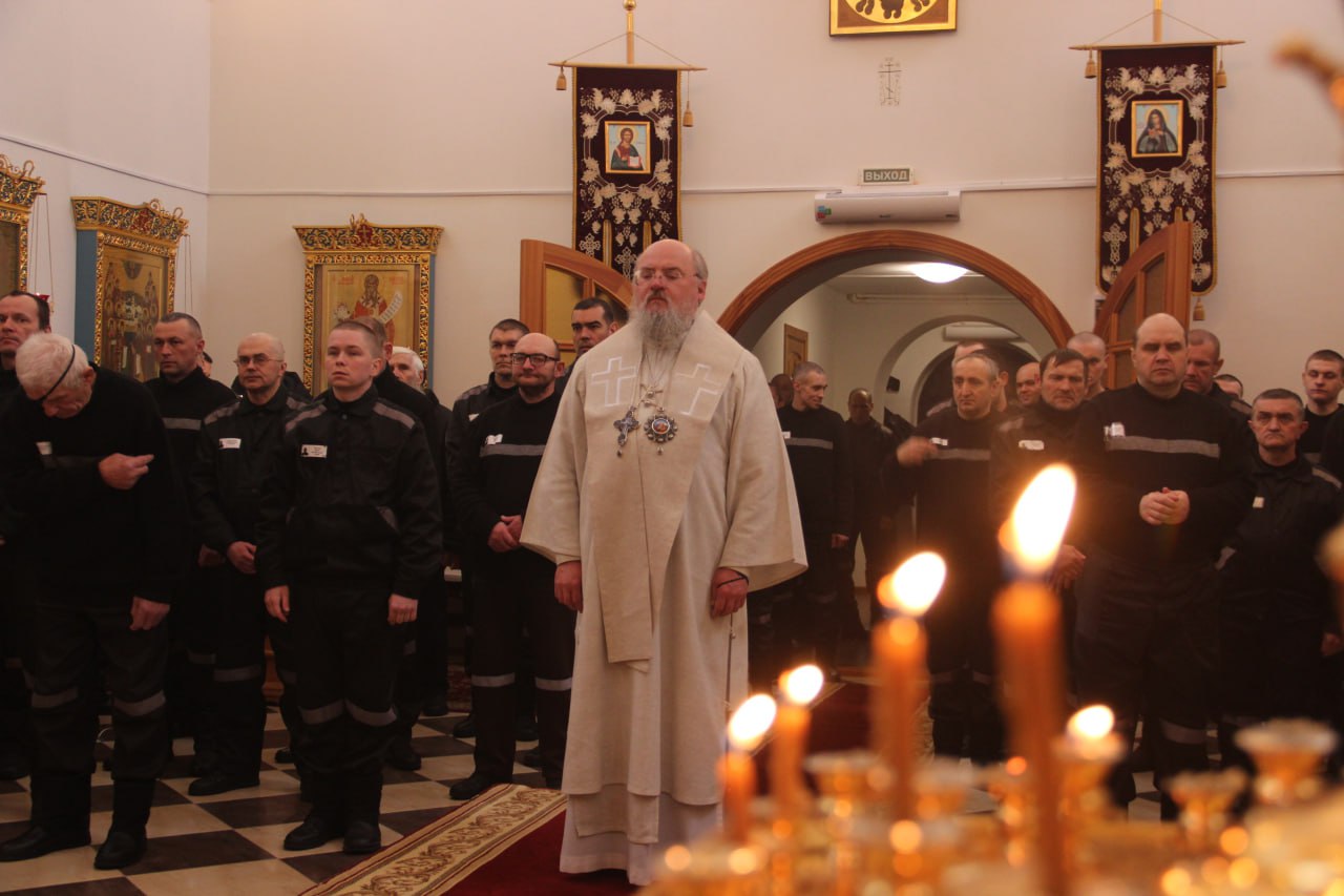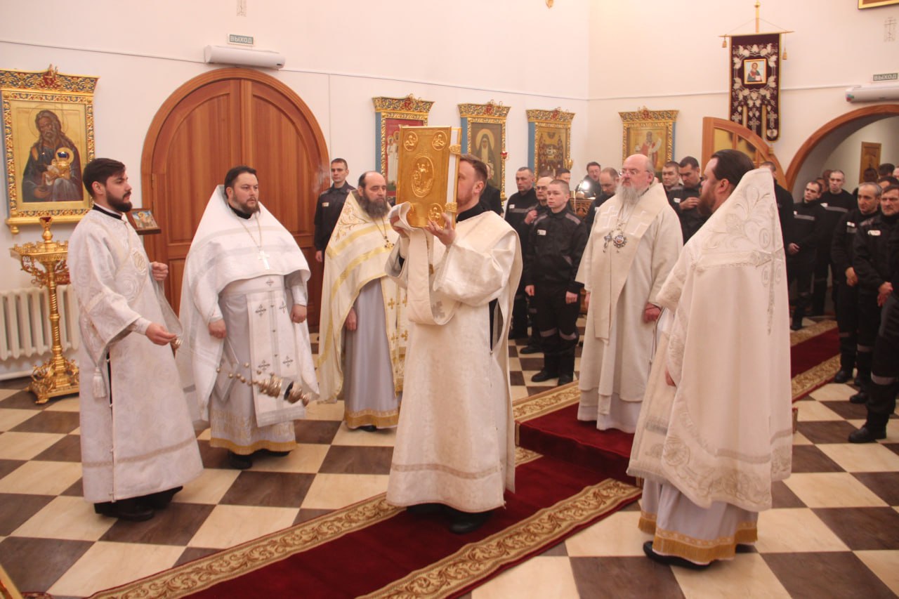 11 января. Святки. Епископ Козельский и Людиновский Никита посетил Исправительную Колонию №5 города Сухиничи. Владыка совершил Божественную литургию с храме Всех святых в земле Российской просиявших на территории исправительного учреждения.