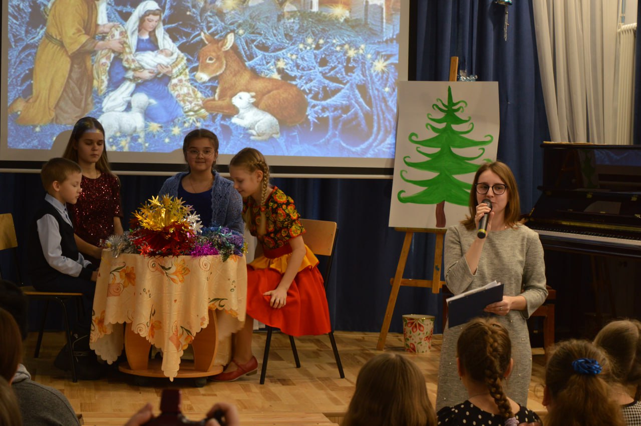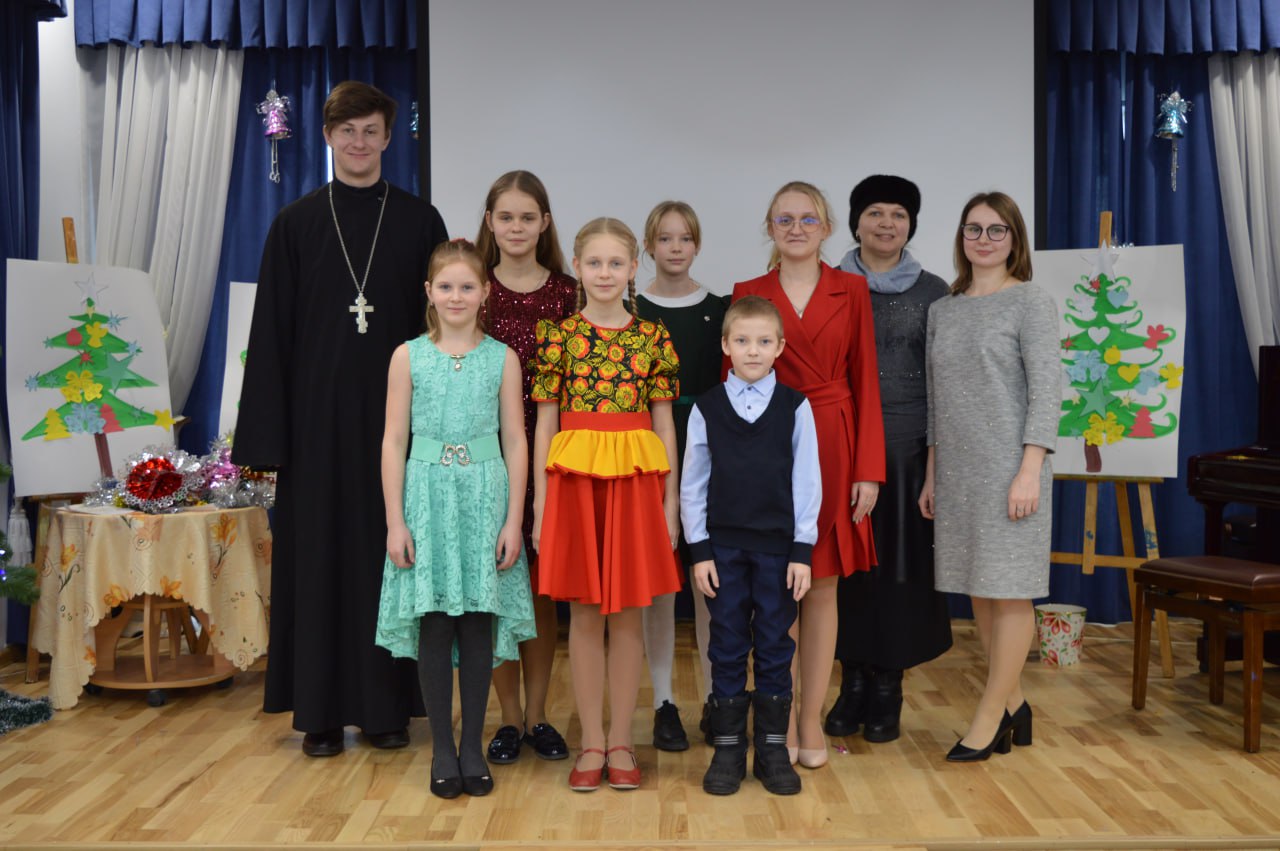 14 января в Школе искусств города Сухиничи состоялся совместный концерт местных учащихся и воспитанников воскресной школы храма Смоленской иконы Божией Матери, посвященный Рождеству Христову. Вначале мероприятия духовник воскресной школы иерей Филипп Лисенков обратился к присутствующим с приветственным словом и поздравил всех с великим праздником. Далее дети показали несколько сценок и исполнили рождественские песни, а преподаватели разбавляли ход мероприятия интересными конкурсами. По окончании концерта воспитанники воскресной школы направились в гости к настоятелю своего храма протоиерею Алексию Казакову и матушке Марии Казаковой на традиционные рождественские колядки. Дети были приняты с теплом, наставлены добрым словом и отпущены с подарками.