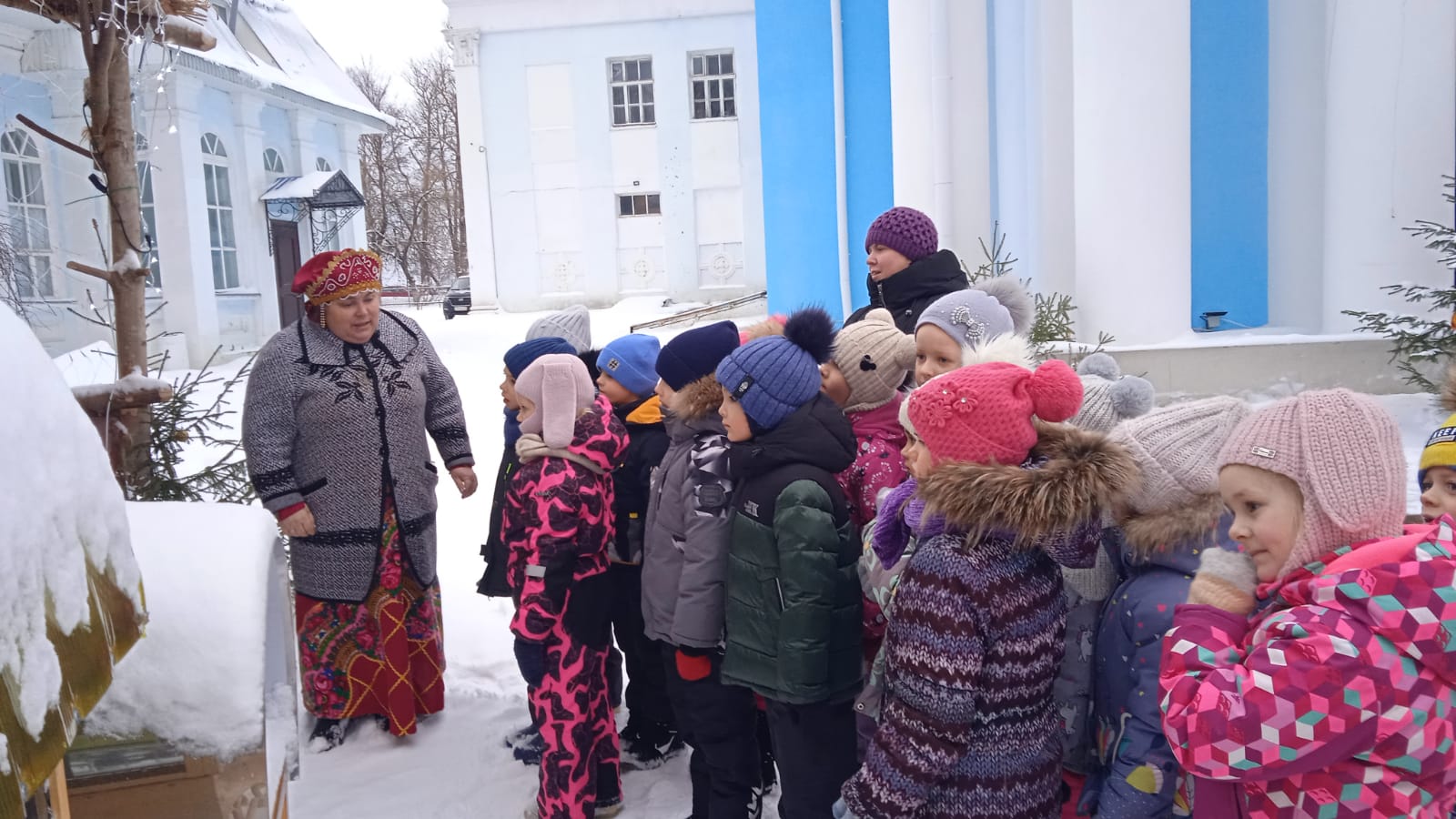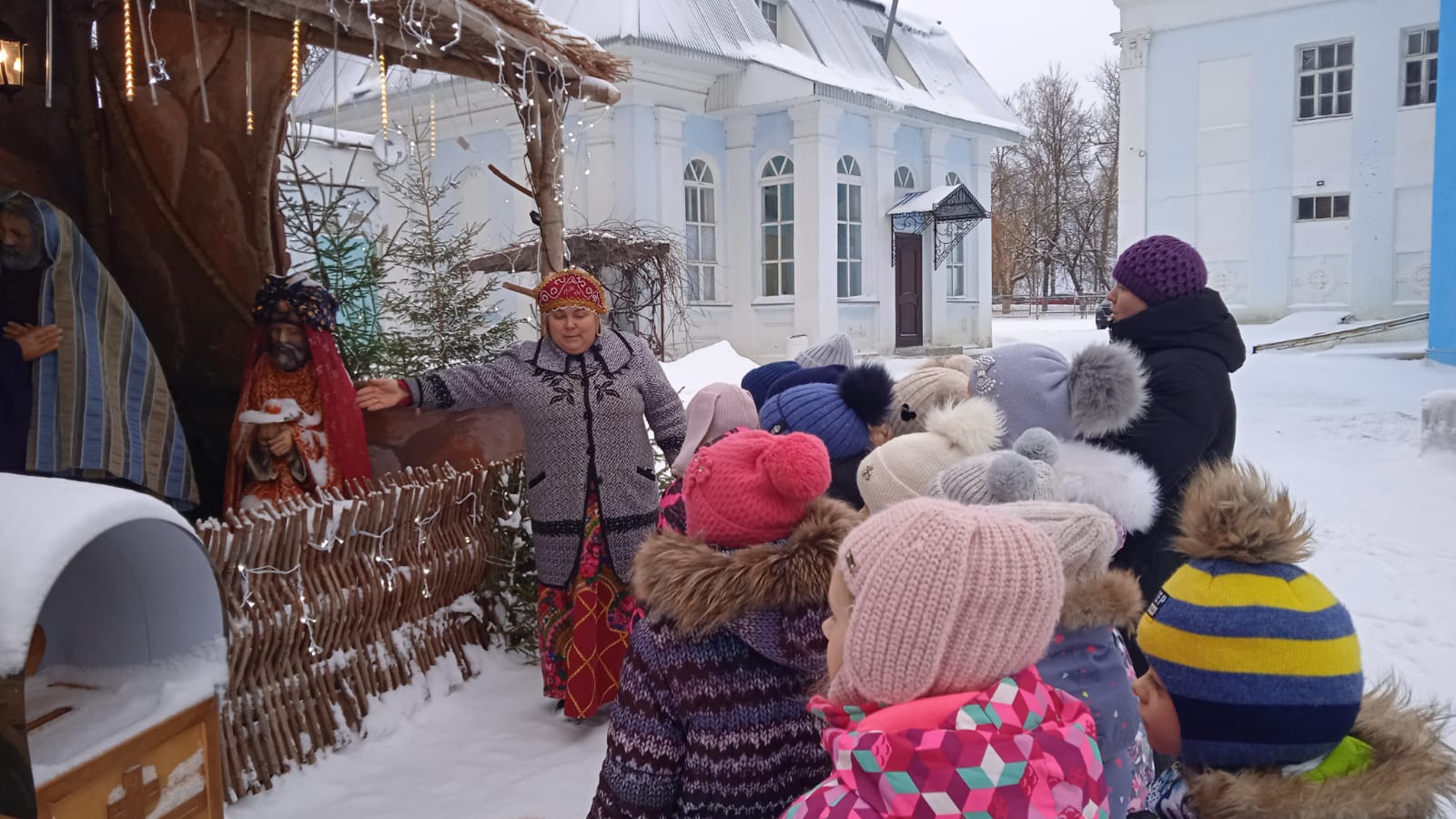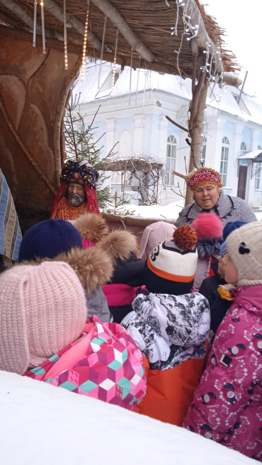 В святочные дни 2024 года людиновские воспитанники детских садов: №2 «Сказка», №14 «Рябинушка», №5 «Солнышко», №6 «Дюймовочка» со своими воспитателями посетили Казанский собор города Людиново. Встречала юных гостей и взрослых руководитель церковно-краеведческого музея храма Елена Ивановна Девина. Для юных посетителей она провела игровую программу «Наступили святки, пришли ребятки», где рассказала детям о празднике Рождества Христова, о православных традициях в святочные дни, провела экскурсию внутри храма. Побывали гости и в церковном музее, и около Рождественского вертепа в ограде Казанского собора. И все вместе, славя Христа, пропели колядки и, конечно, получили сладости.