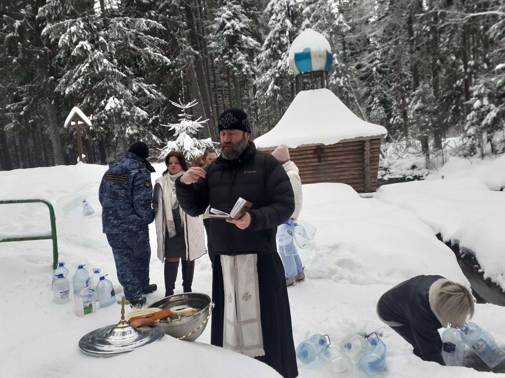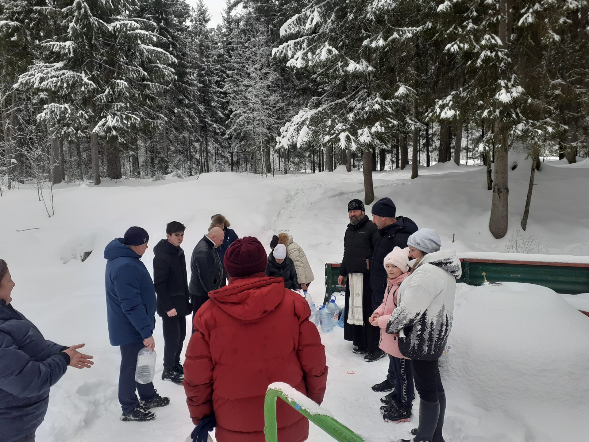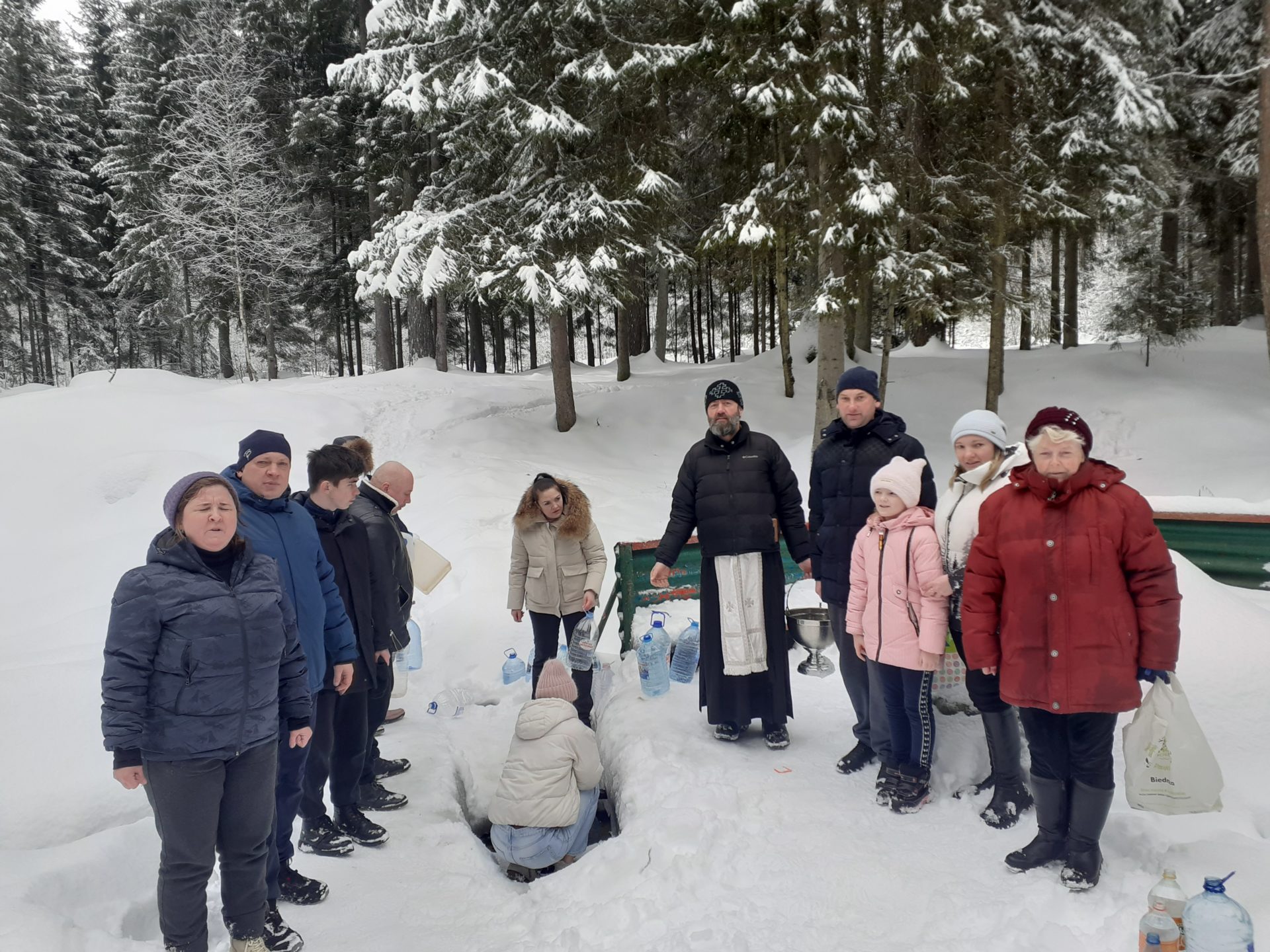 19 января 2024 года, в день Крещения Господня, настоятель храма в честь святого благоверного князя Александра Невского в селе Заречный Людиновского района иерей Георгий Краснов, ответственный за работу с беженцами, совершил освящение воды на источнике и купели в честь Богоявления Господня.