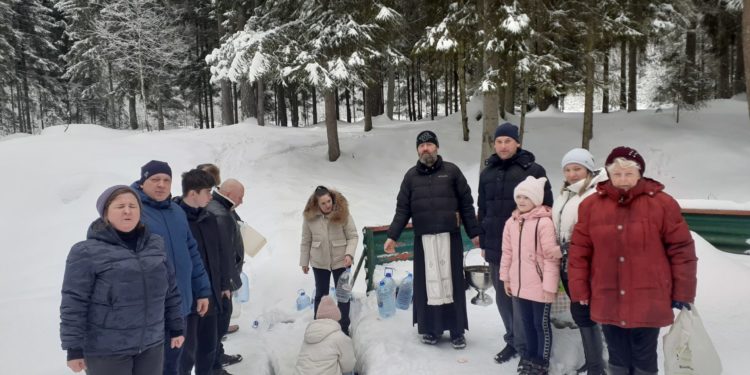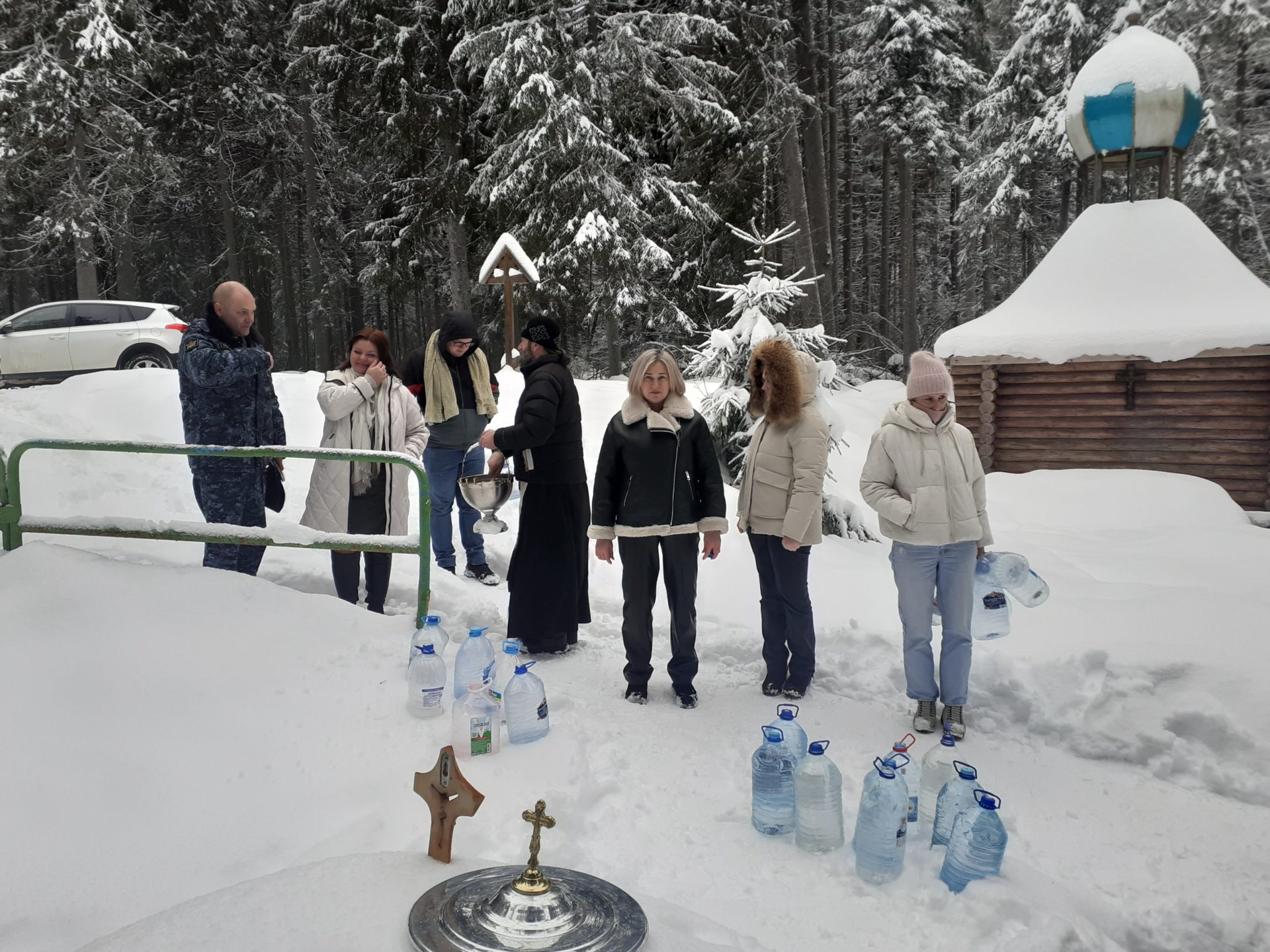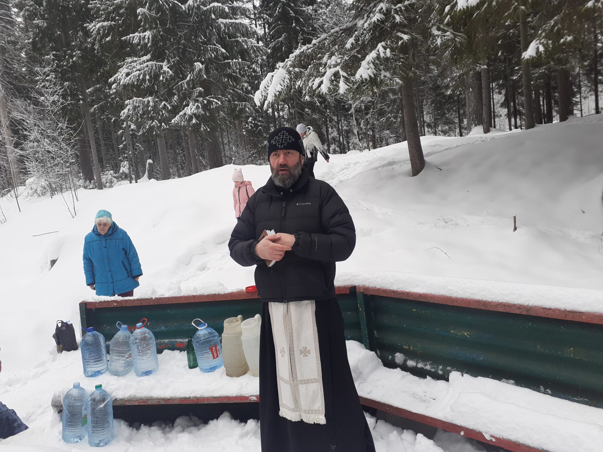 19 января 2024 года, в день Крещения Господня, настоятель храма в честь святого благоверного князя Александра Невского в селе Заречный Людиновского района иерей Георгий Краснов, ответственный за работу с беженцами, совершил освящение воды на источнике и купели в честь Богоявления Господня.