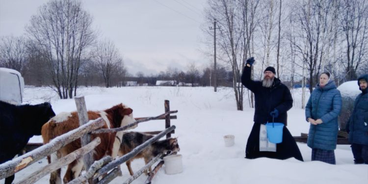 По традиции 18 и 19 января после богослужений священнослужители с сестрами обходят и окропляют святой водой монастырь, а затем всю деревню. Кропят улицу и дома, к желающим заходят внутрь, освящают по приглашению хозяев жилища, хозяйство, животных, транспорт. Люди ждут освящения и многие встречают священника на улице.