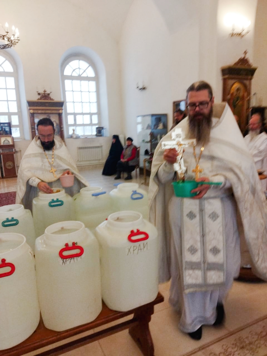Торжественные богослужения и великое освящение воды совершили клирики обители иерей Алексий Боков, иерей Антоний Лунин, иерей Лев Шиповский и иеродиакон Алексий (Гудименко).
