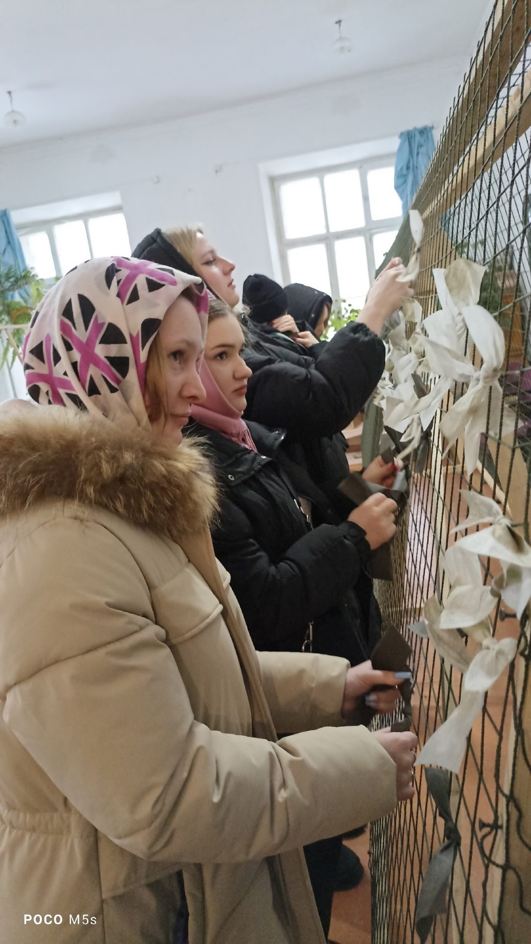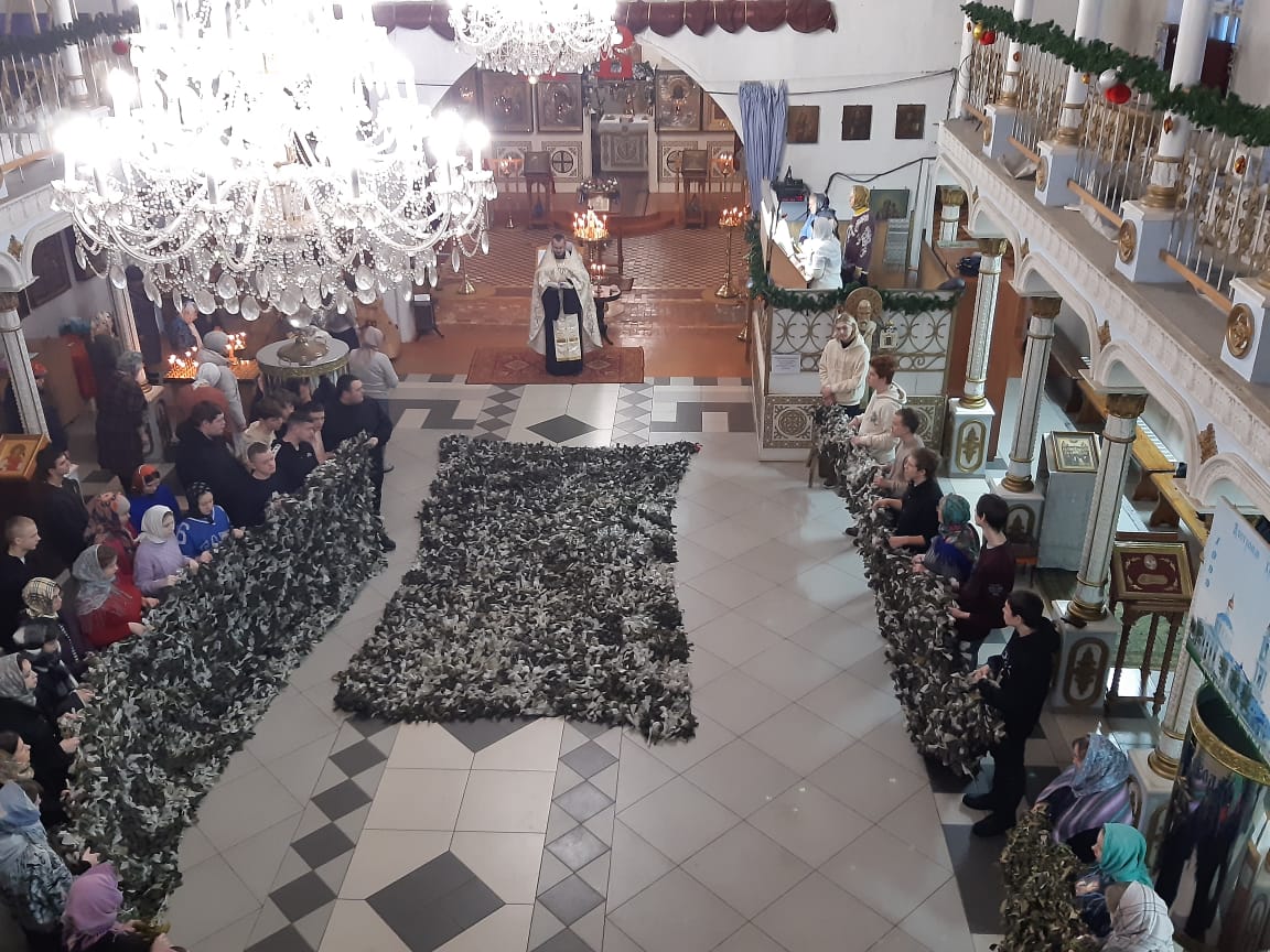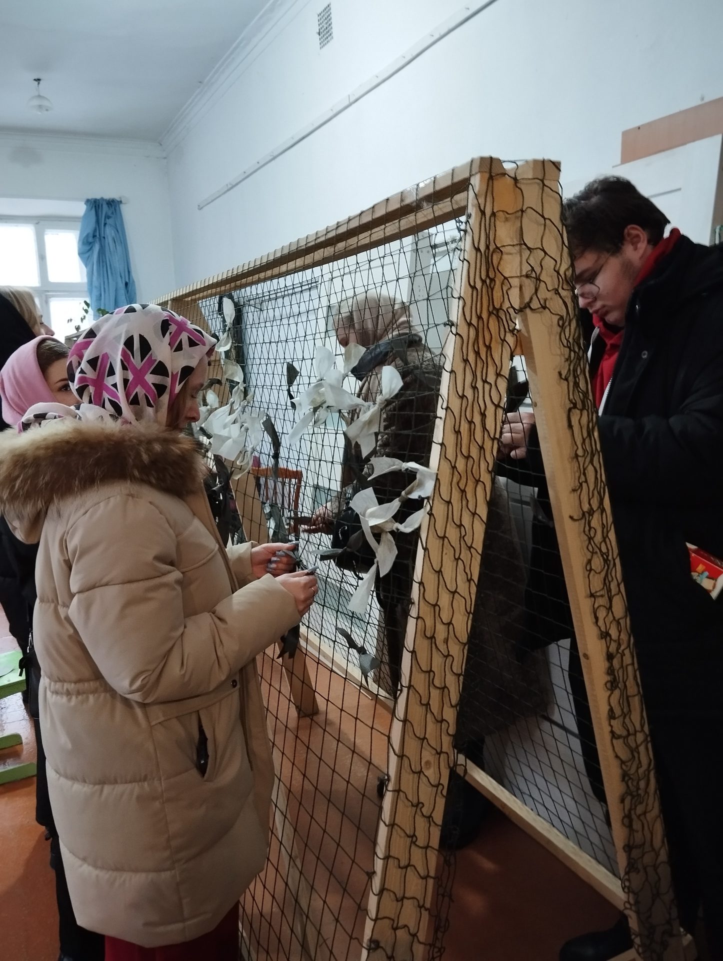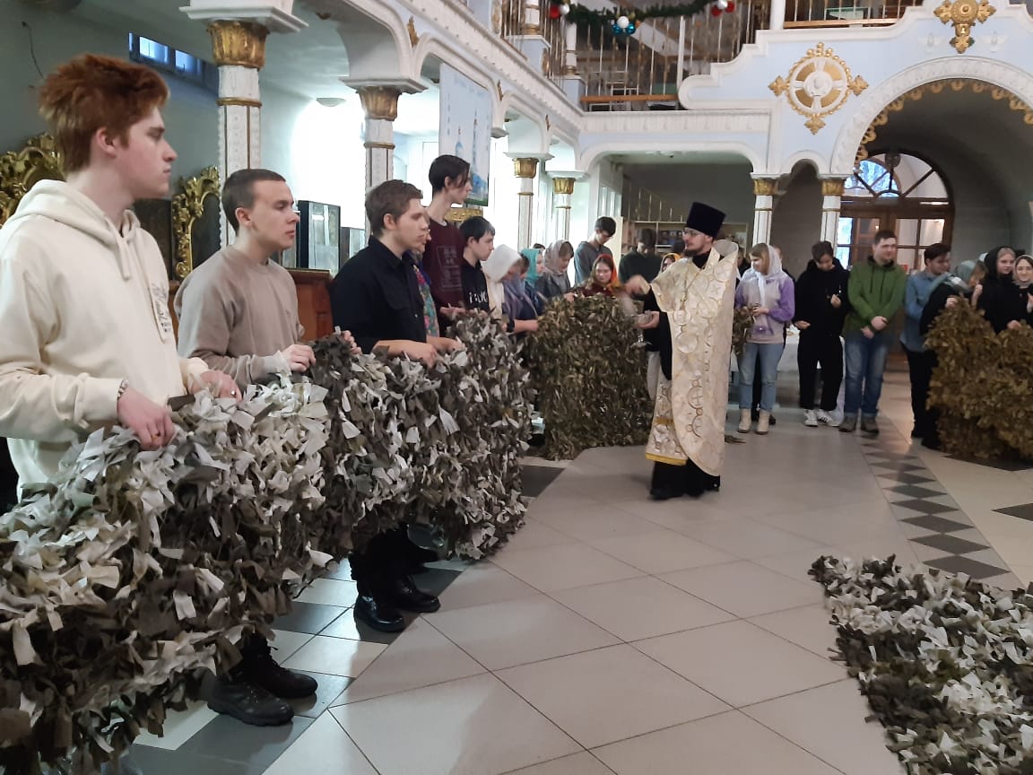 После чего студенты посетили зал на втором этаже храма, где плетут маскировочные сети для воинов, поучаствовали в плетении сетей. Некоторые девушки и юноши решили приходить и помогать плести маскировочные сети, чтобы внести свой вклад в нужное дело.
