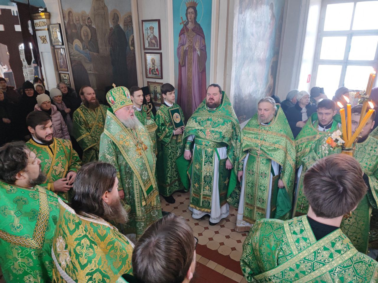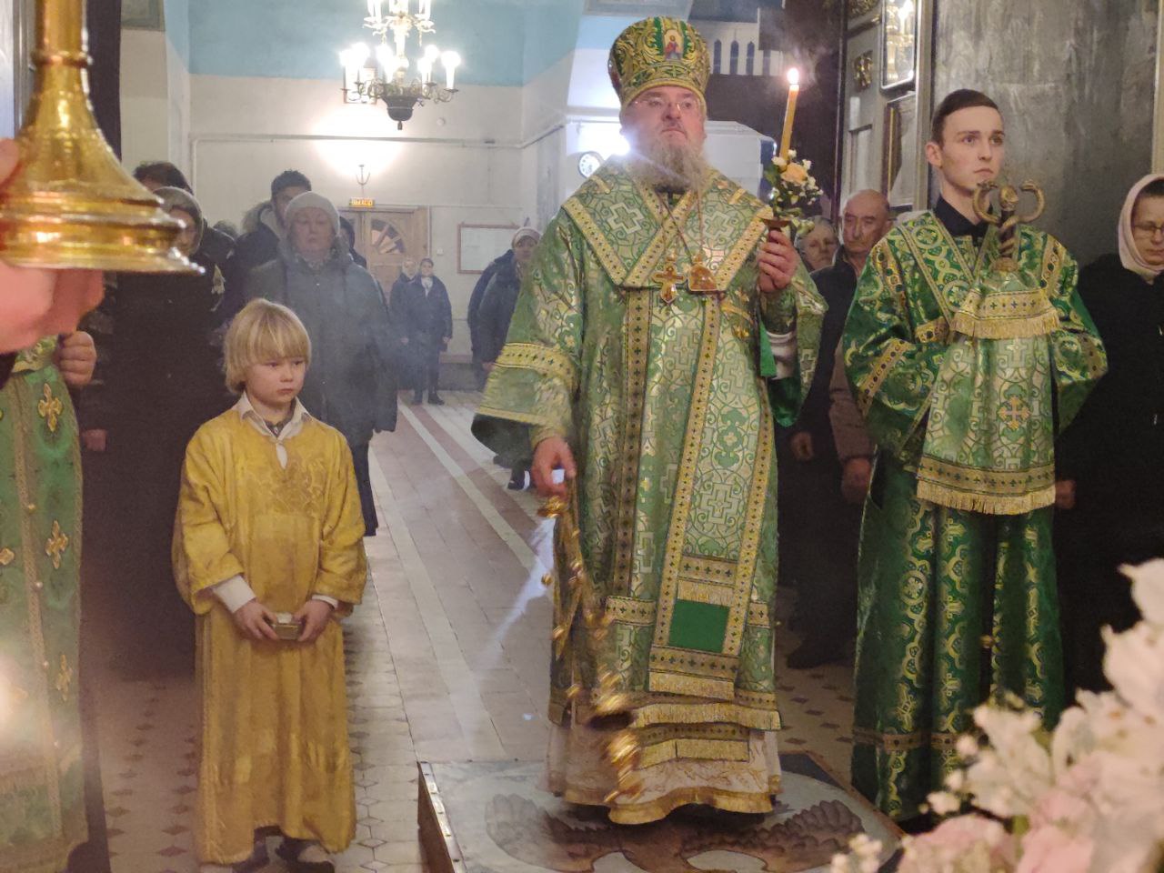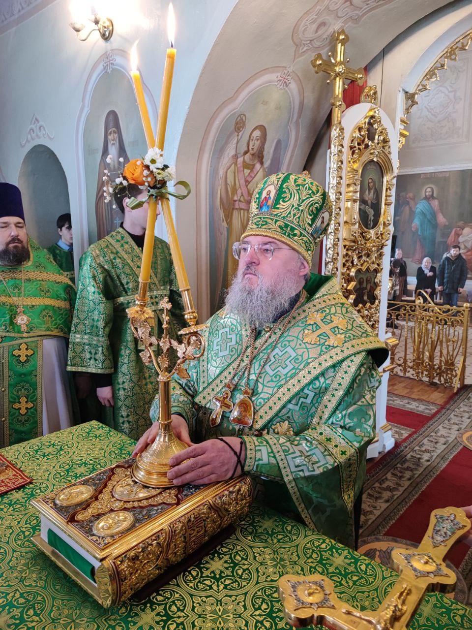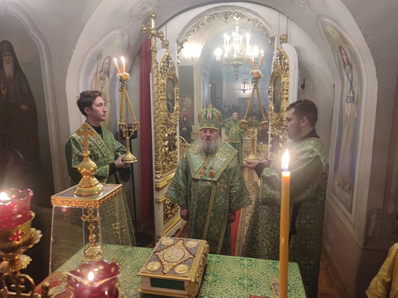Преосвященному владыке сослужили: протоиерей Владимир Бахаев – секретарь епархии, благочинный Козельского округа с клириками благочиния.
