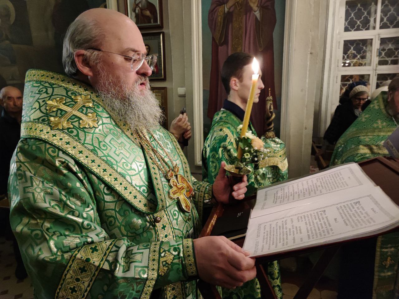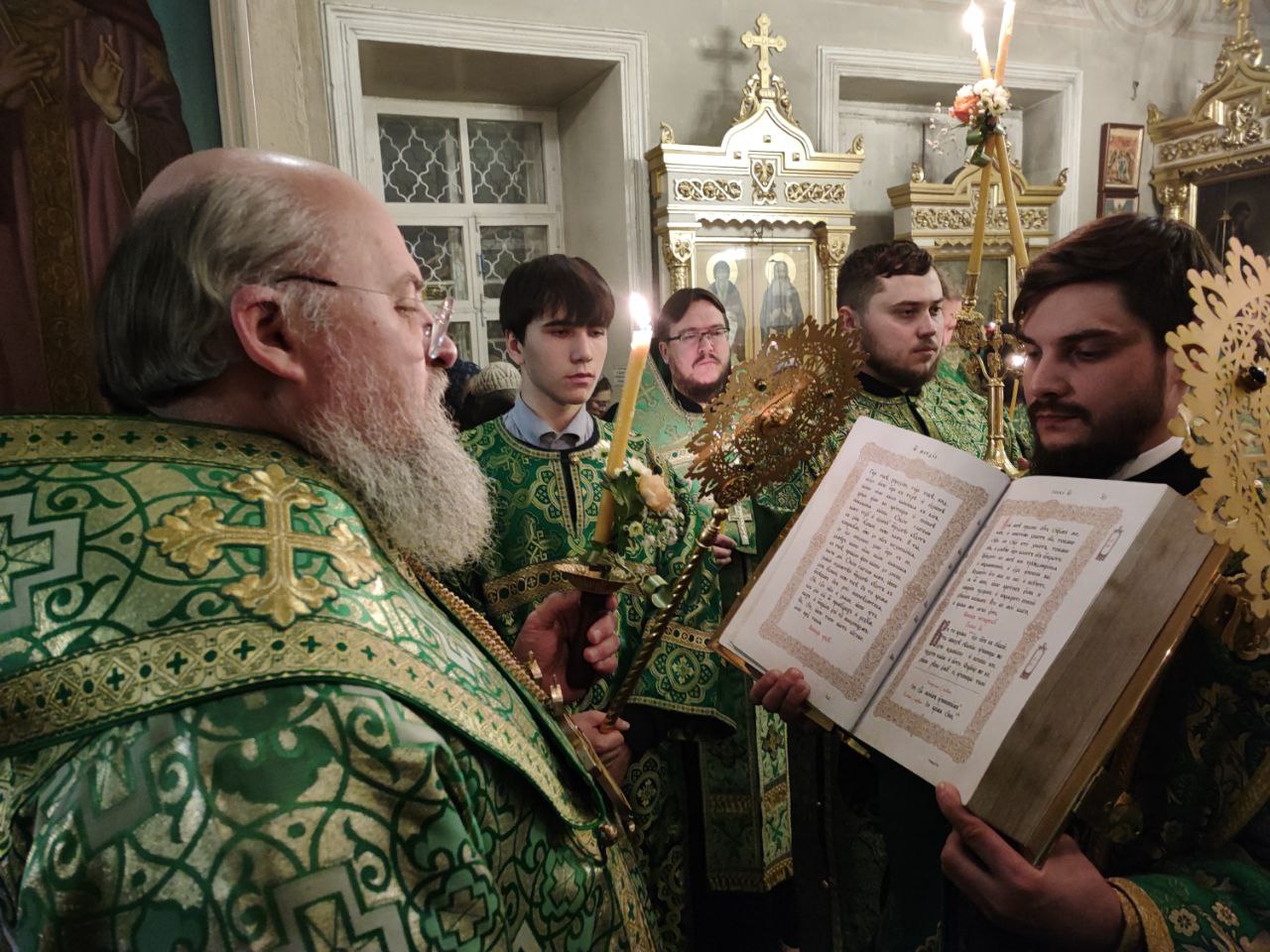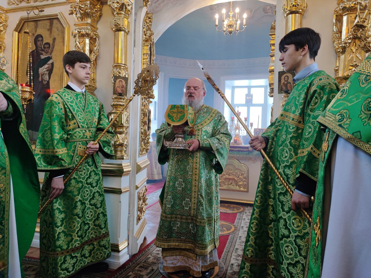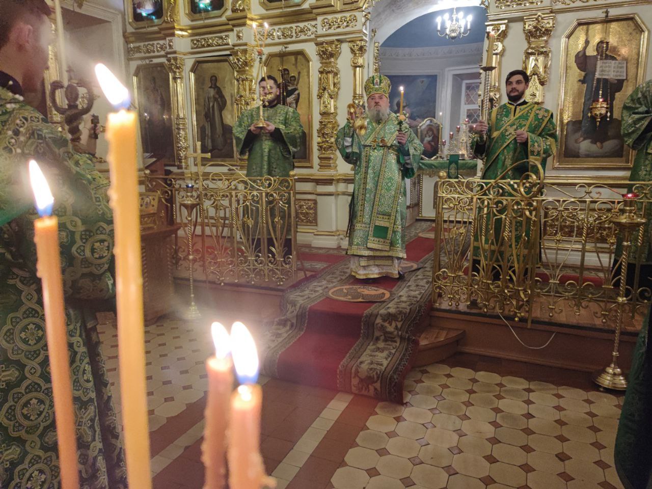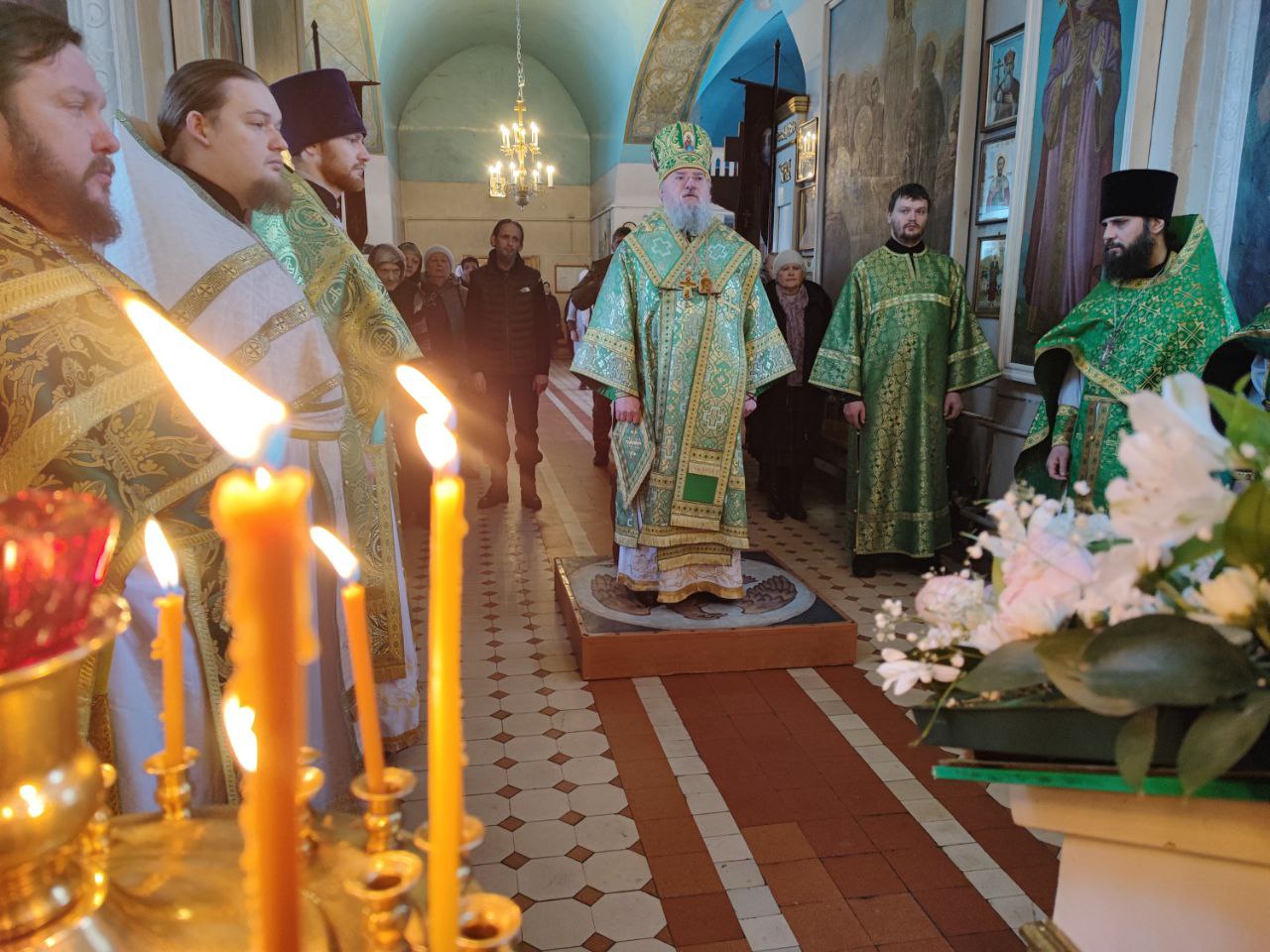 Преосвященному владыке сослужили: протоиерей Владимир Бахаев – секретарь епархии, благочинный Козельского округа с клириками благочиния.