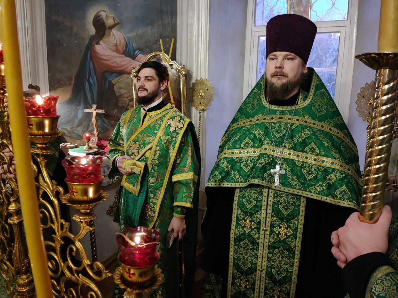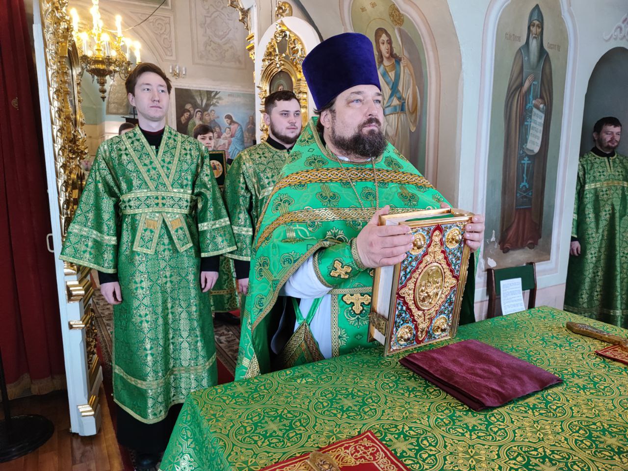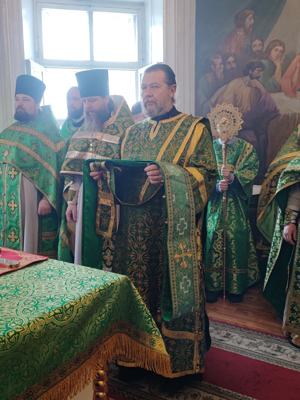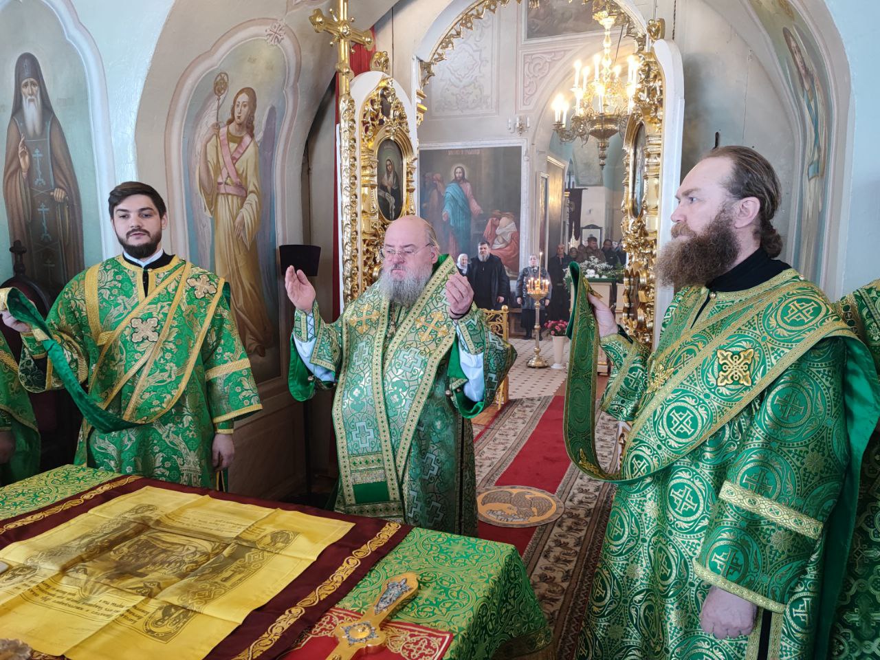Преосвященному владыке сослужили: протоиерей Владимир Бахаев – секретарь епархии, благочинный Козельского округа с клириками благочиния.