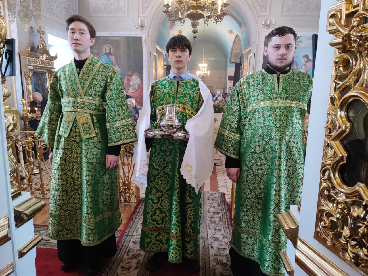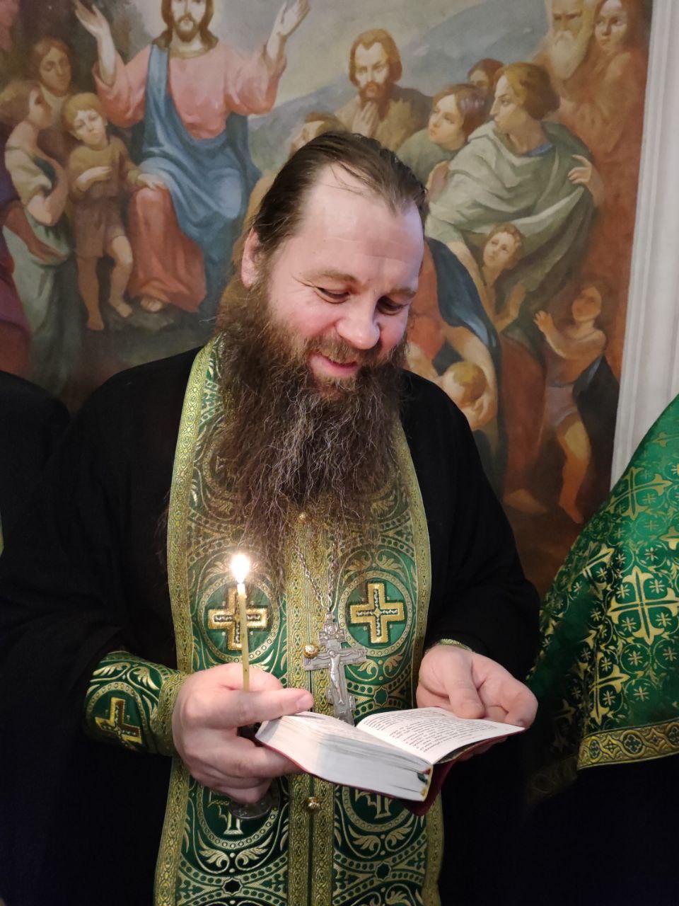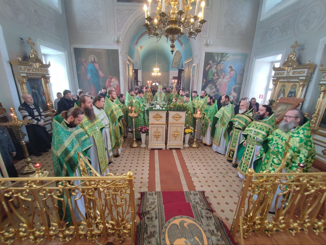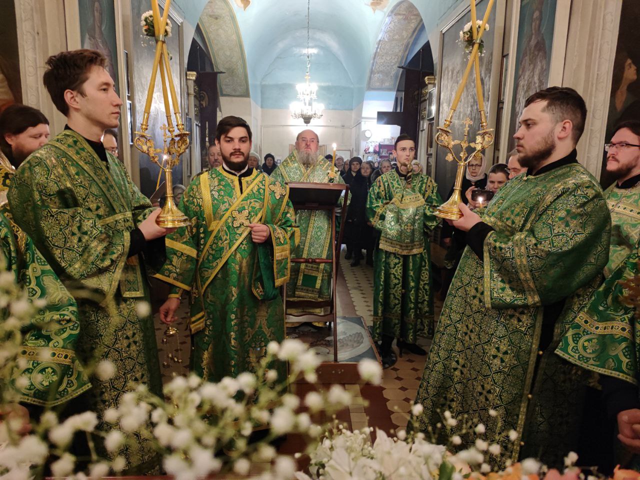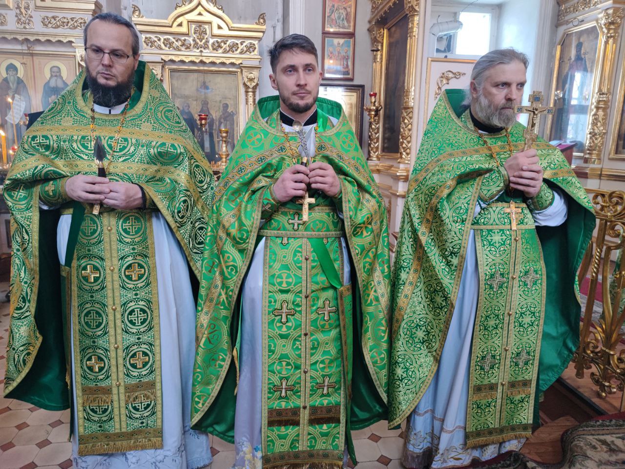 Преосвященному владыке сослужили: протоиерей Владимир Бахаев – секретарь епархии, благочинный Козельского округа с клириками благочиния.